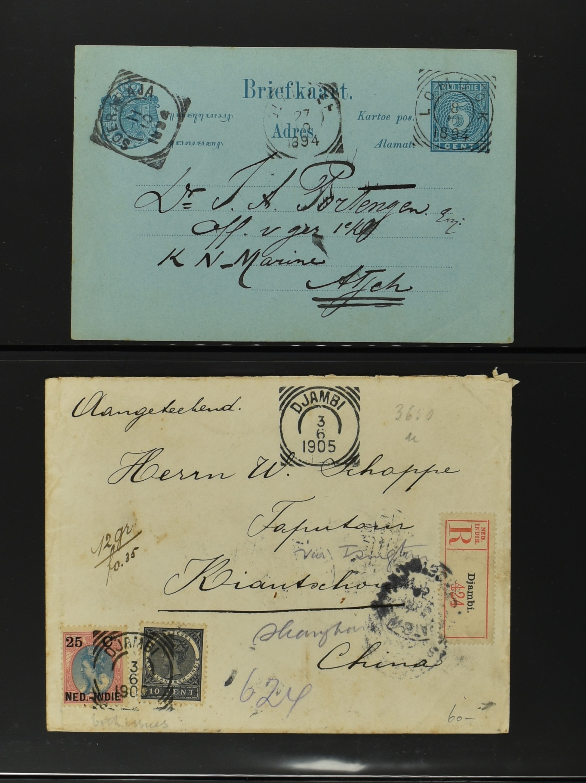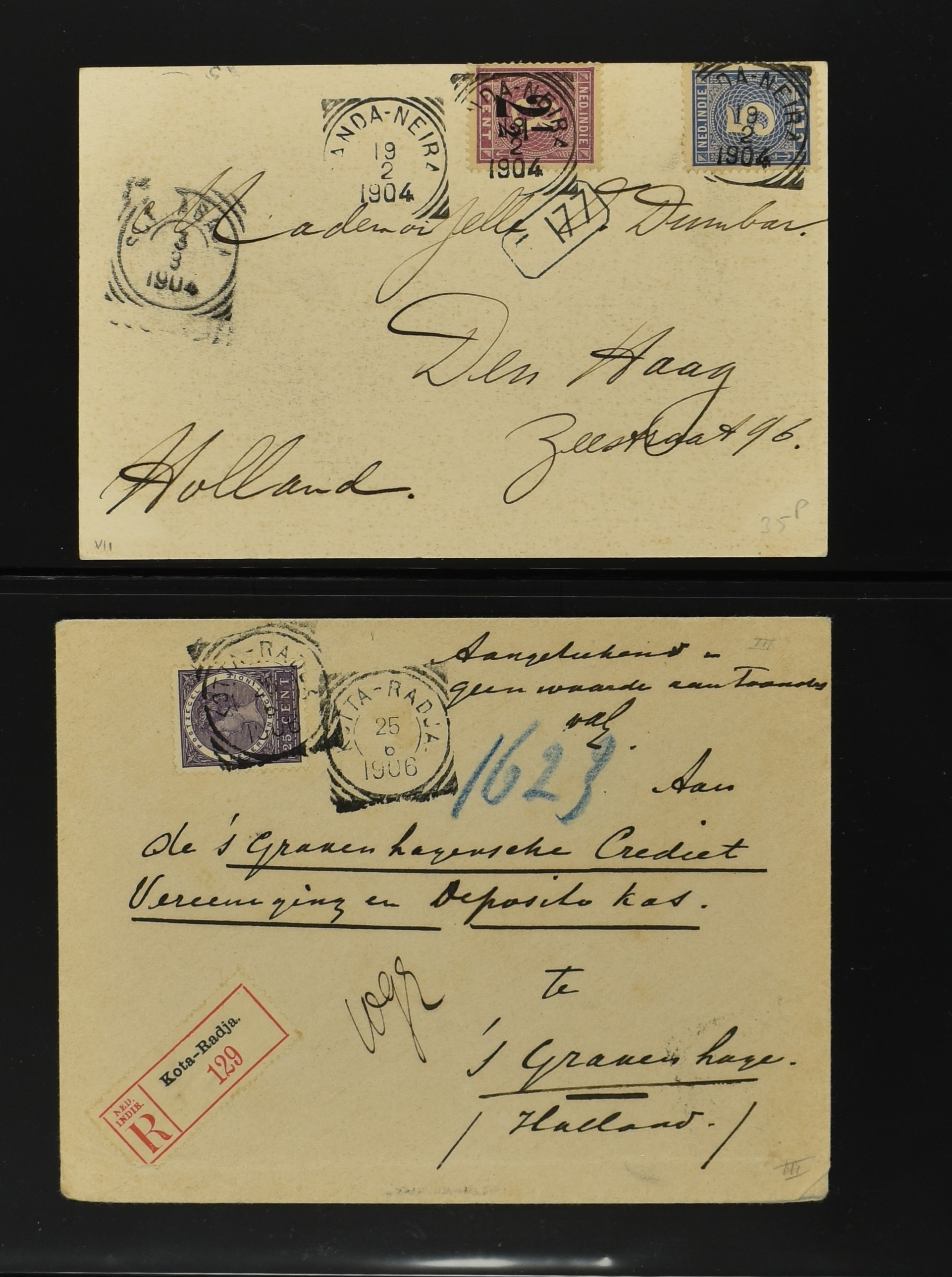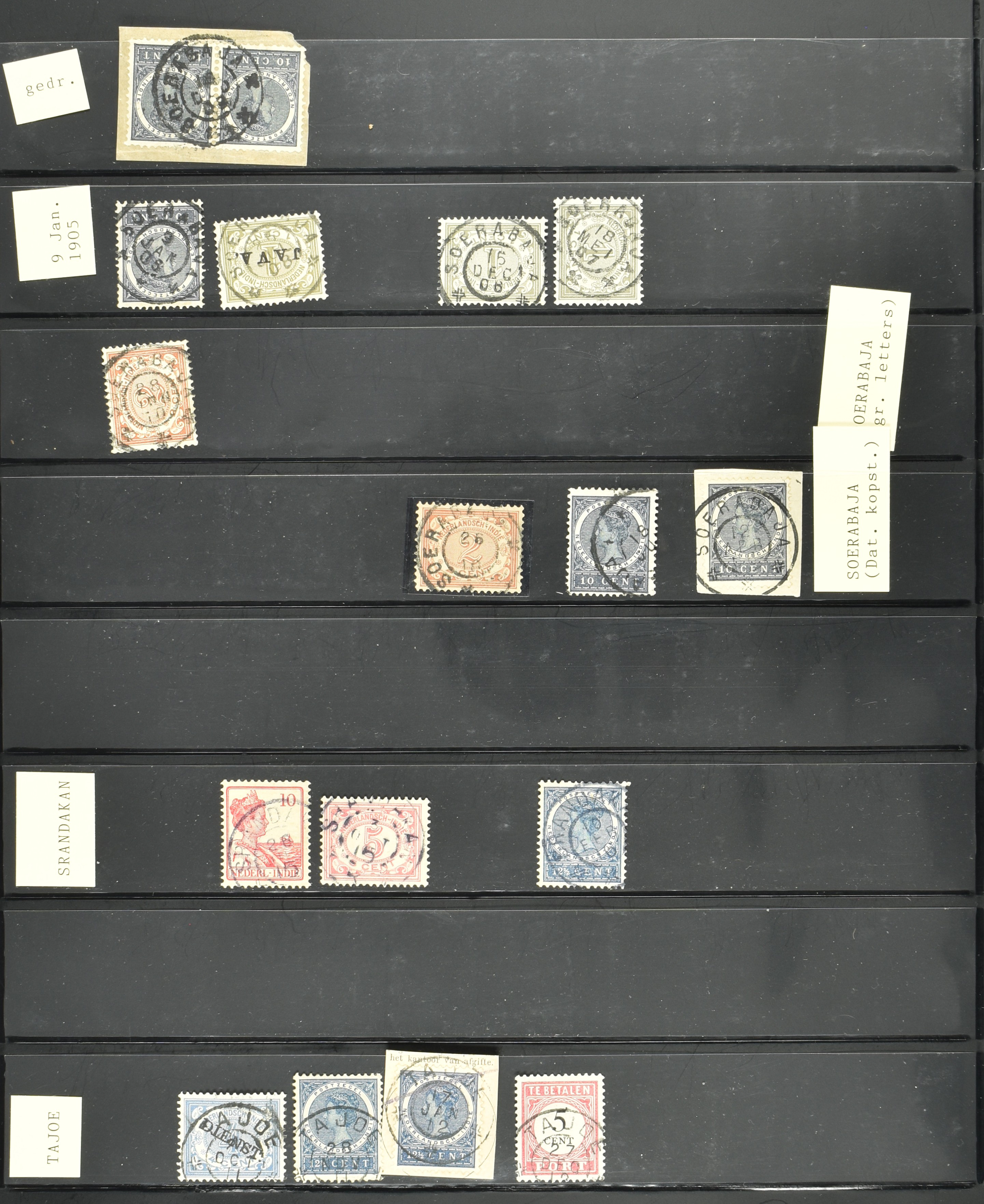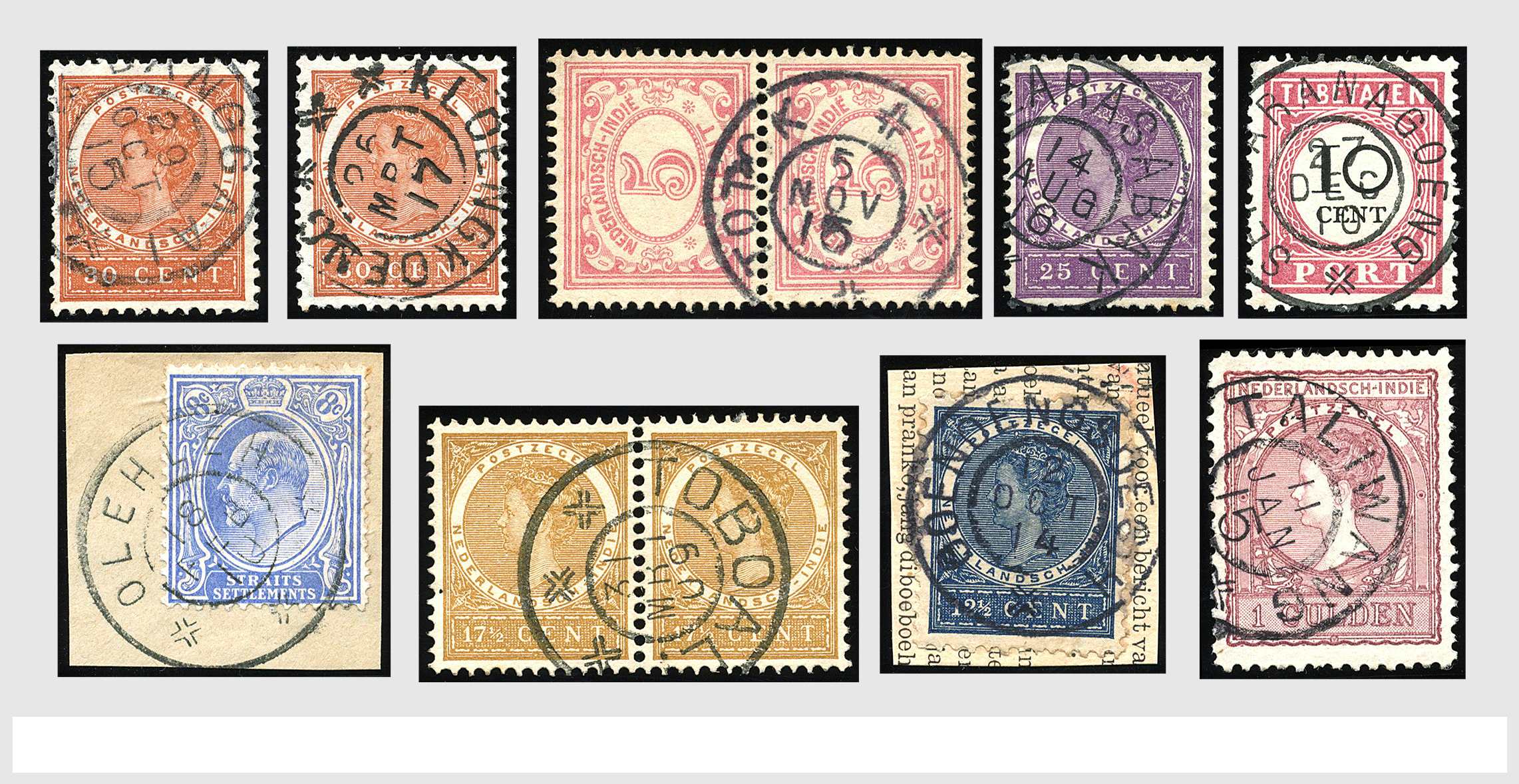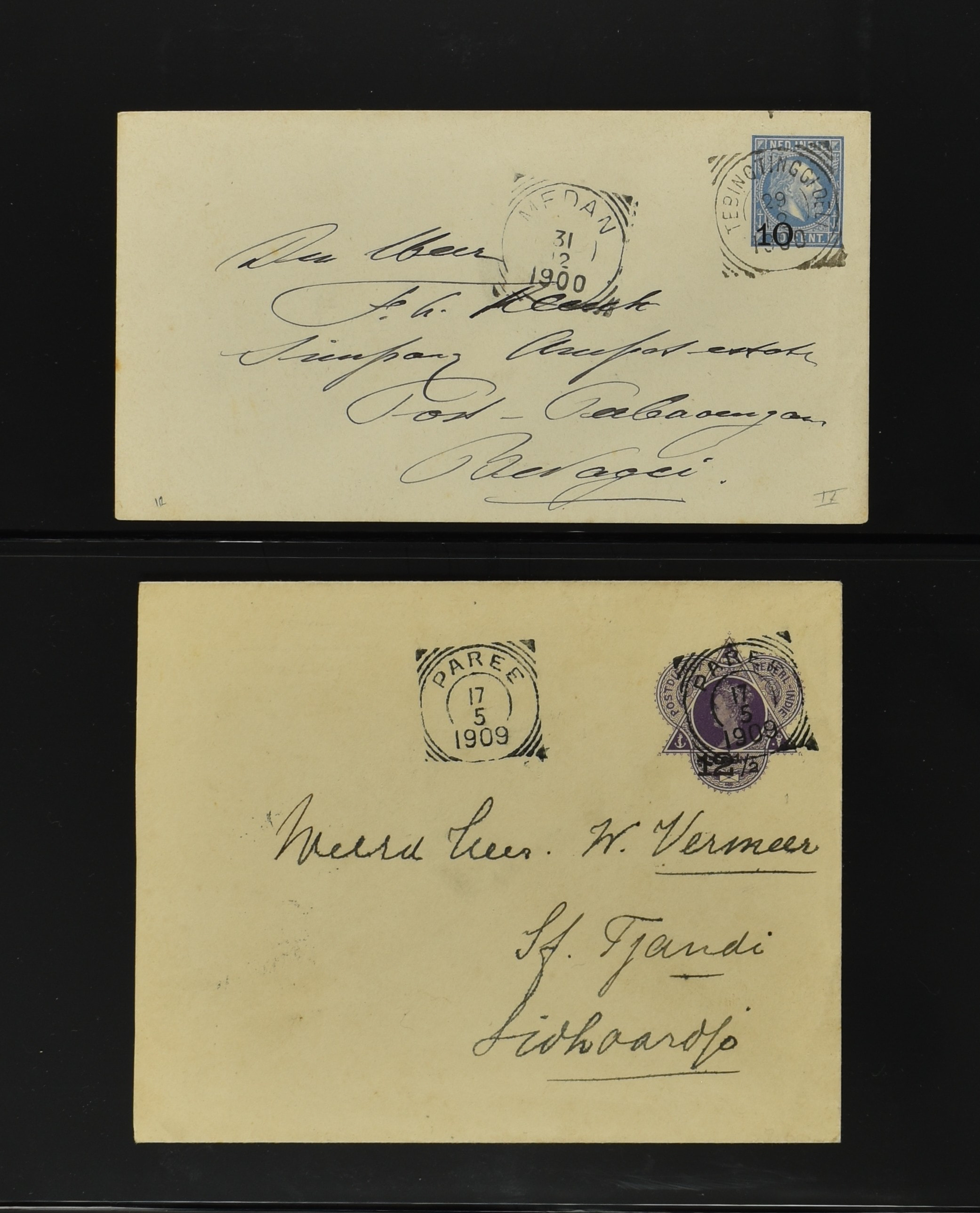 2256 imageNED.- INDIË POSTHISTORIE VIERKANTSTEMPELS, 89 poststukken waarvan 17 aangetekend, van diverse kantoren w.o. schaarse en zeldzame zoals Bajoenglentjir, Indragiri, Mokomoko. Laboeanbilik, Lhoseumawe, Loeboepakam, Lombok (op bk. met interessante tekst), Pampenoea (R-brief), Paree, Poeloeraija (blauw), Sanoer (vz.), Selatpandjang, Semarang-Karangtoeri (op R-brief), Soerabaja-Oedjoeng (o.a. op R-brief), Stagen, Tapan (6-7-1903 als veldpost), Weltevreden-Kramat etc. in Davo-ringband (Image) (Image2) (Image3) (Image4) (Image5) (Image6) (Image7) (Image8) (Image9) (Image10) (Image11) (Image12) (Image13) (Image14) (Image15) (Image16) (Image17) (Image18) (Image19) (Image20) (Image21) (Image22) (Image23) (Image24) (Image25) (Image26) (Image27) (Image28) (Image29) (Image30) (Image31) (Image32) (Image33) (Image34) (Image35) (Image36) (Image37) (Image38) (Image39) (Image40) (Image41) (Image42) (Image43) (Image44) (Image45) (Image46) (All Images)