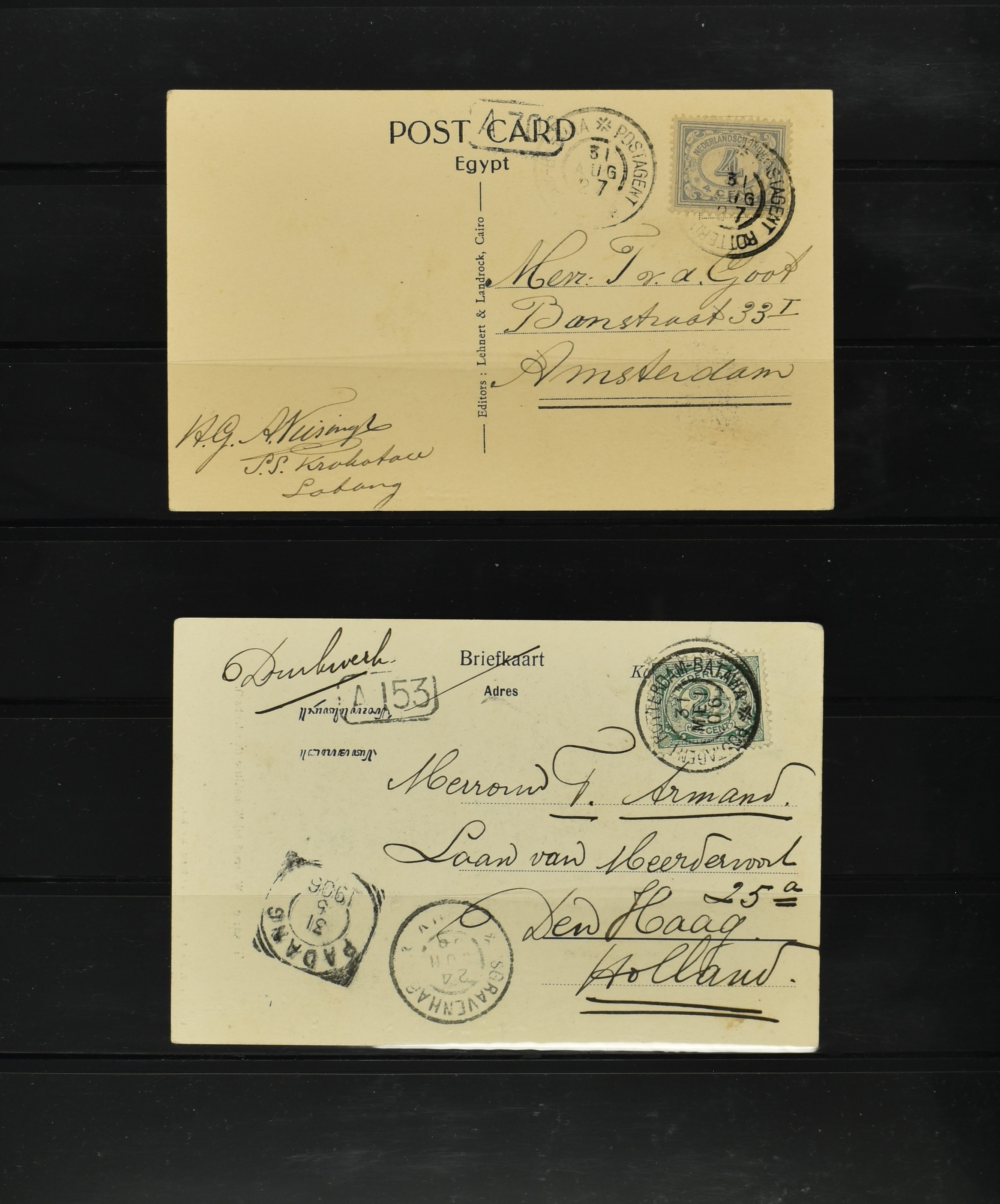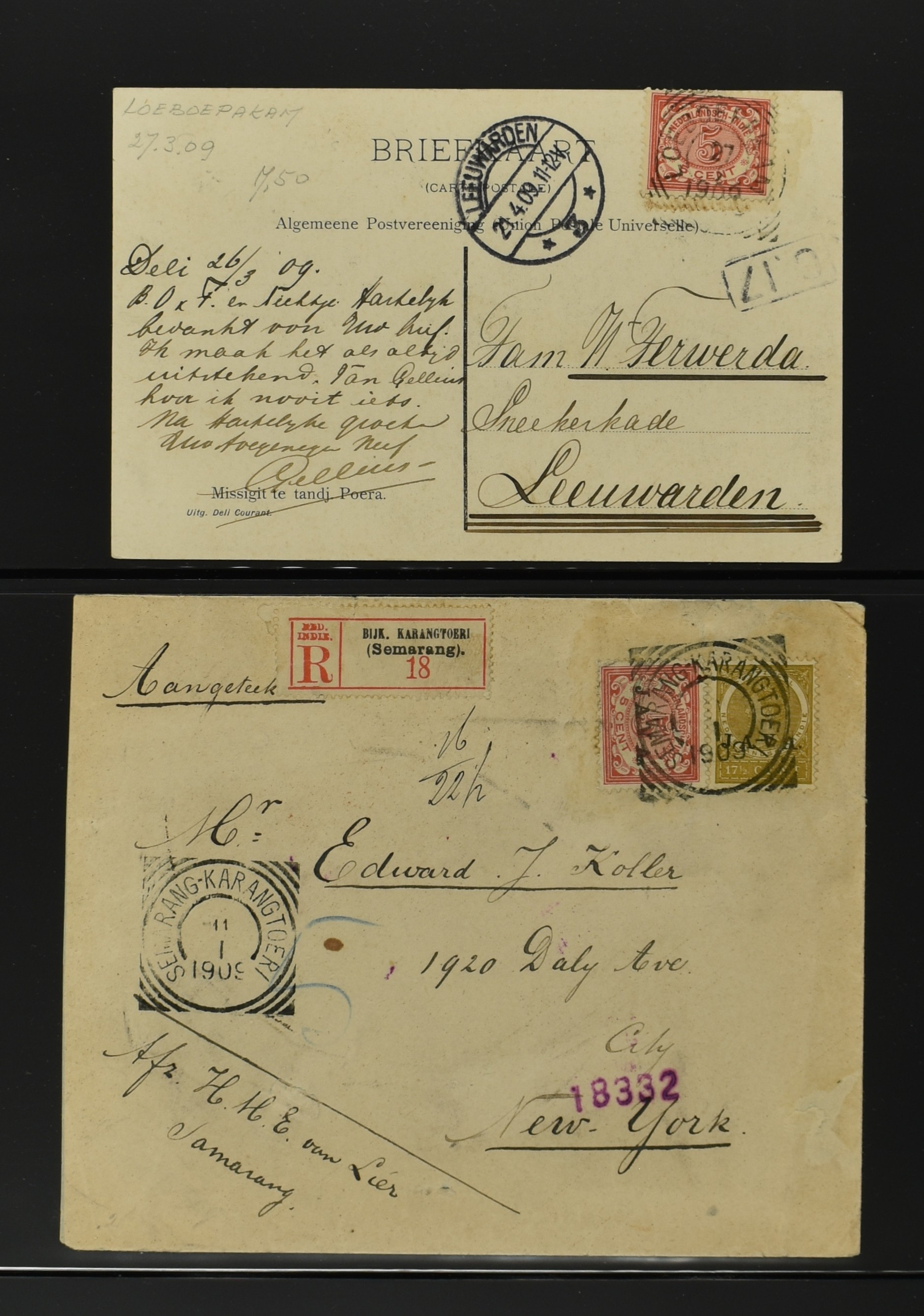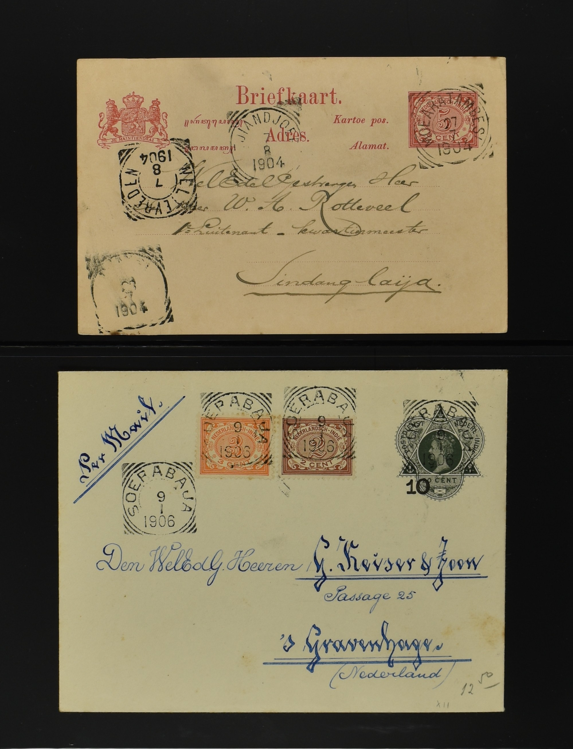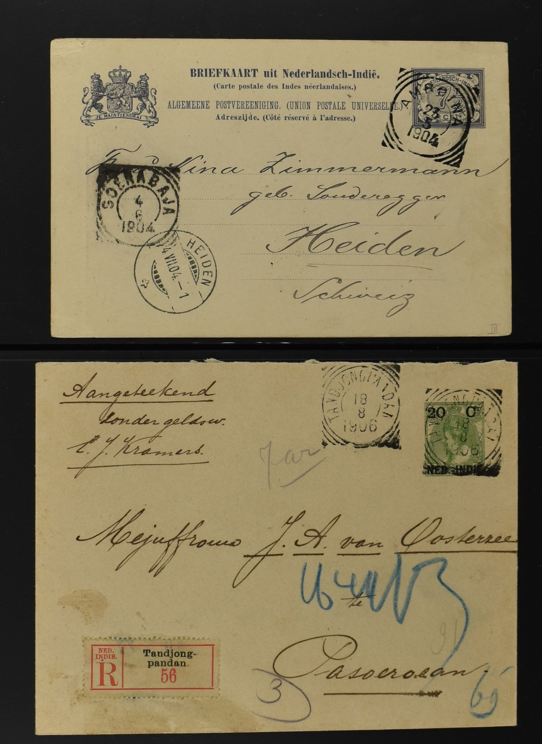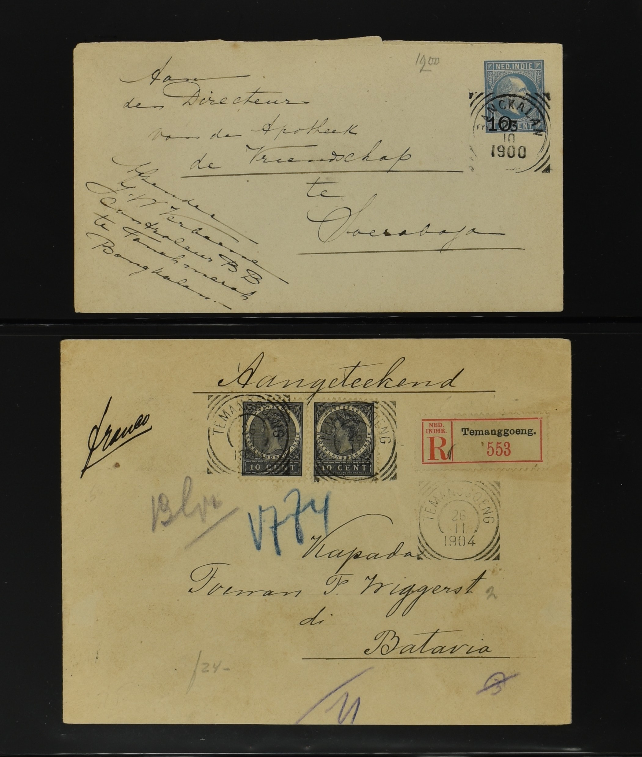 2256 imageNED.- INDIË POSTHISTORIE VIERKANTSTEMPELS, 89 poststukken waarvan 17 aangetekend, van diverse kantoren w.o. schaarse en zeldzame zoals Bajoenglentjir, Indragiri, Mokomoko. Laboeanbilik, Lhoseumawe, Loeboepakam, Lombok (op bk. met interessante tekst), Pampenoea (R-brief), Paree, Poeloeraija (blauw), Sanoer (vz.), Selatpandjang, Semarang-Karangtoeri (op R-brief), Soerabaja-Oedjoeng (o.a. op R-brief), Stagen, Tapan (6-7-1903 als veldpost), Weltevreden-Kramat etc. in Davo-ringband (Image) (Image2) (Image3) (Image4) (Image5) (Image6) (Image7) (Image8) (Image9) (Image10) (Image11) (Image12) (Image13) (Image14) (Image15) (Image16) (Image17) (Image18) (Image19) (Image20) (Image21) (Image22) (Image23) (Image24) (Image25) (Image26) (Image27) (Image28) (Image29) (Image30) (Image31) (Image32) (Image33) (Image34) (Image35) (Image36) (Image37) (Image38) (Image39) (Image40) (Image41) (Image42) (Image43) (Image44) (Image45) (Image46) (All Images)
