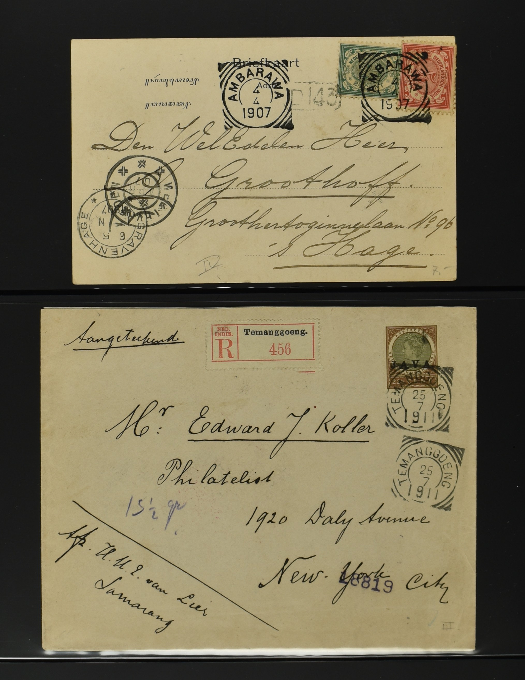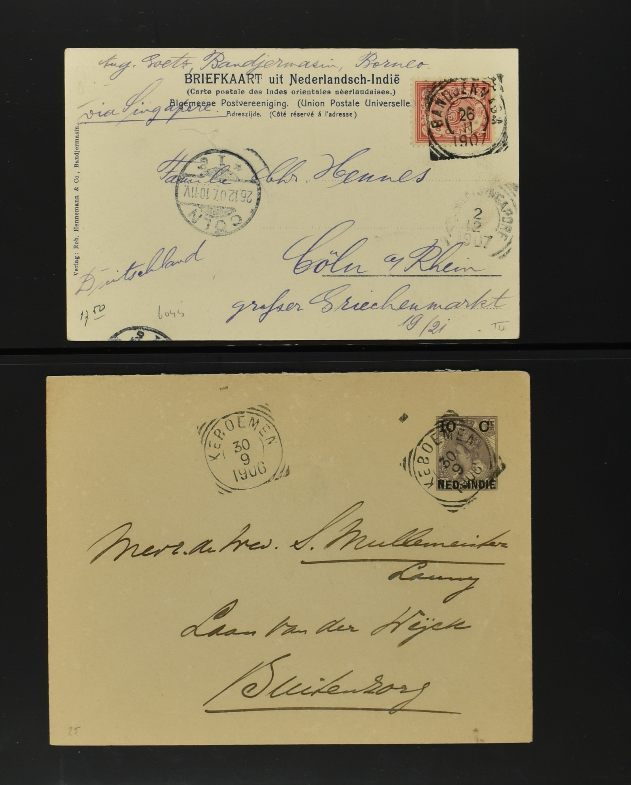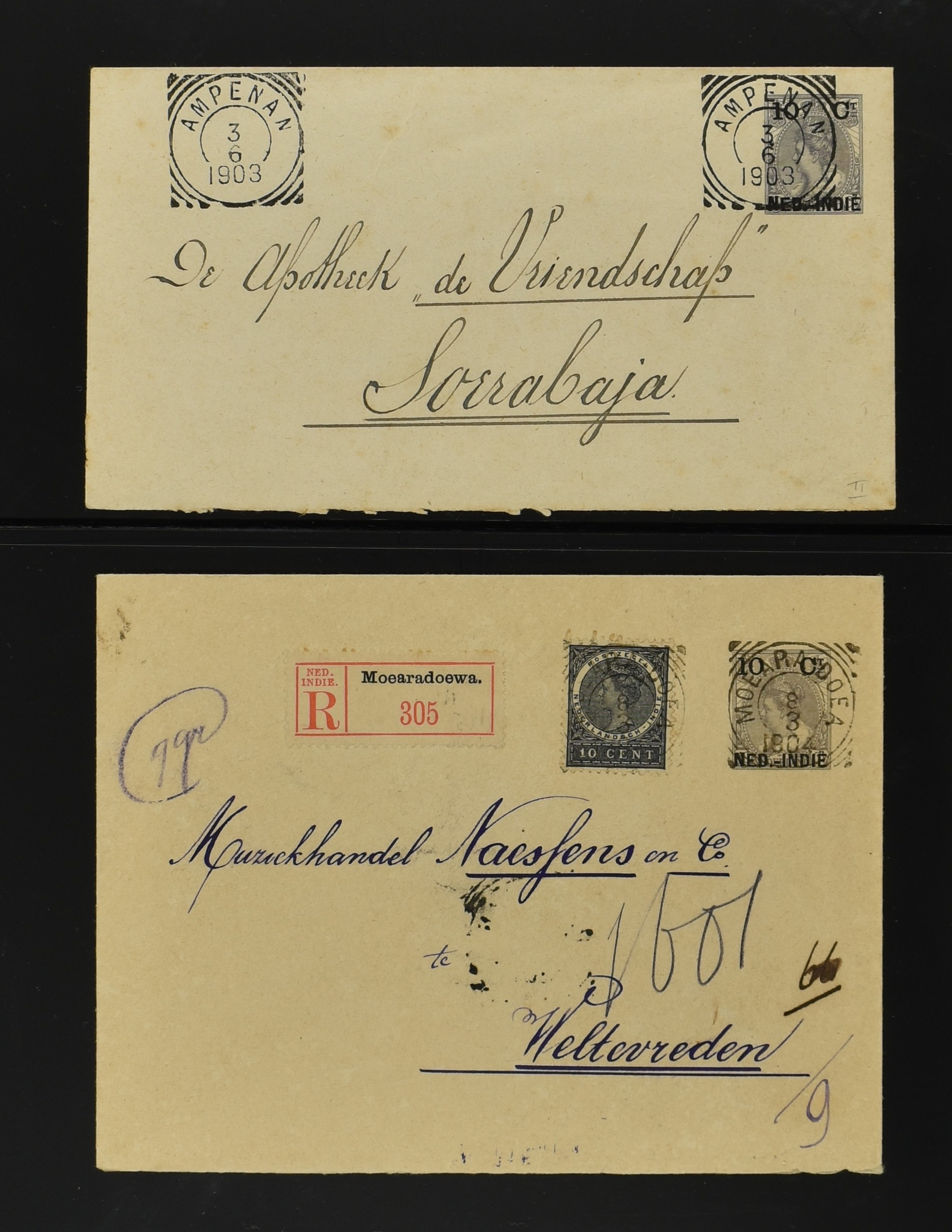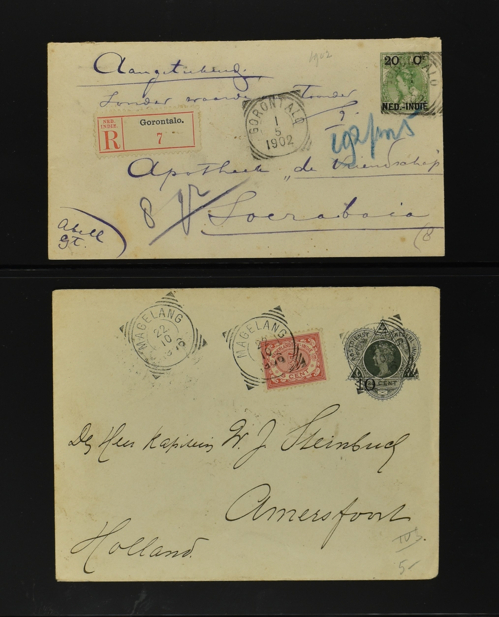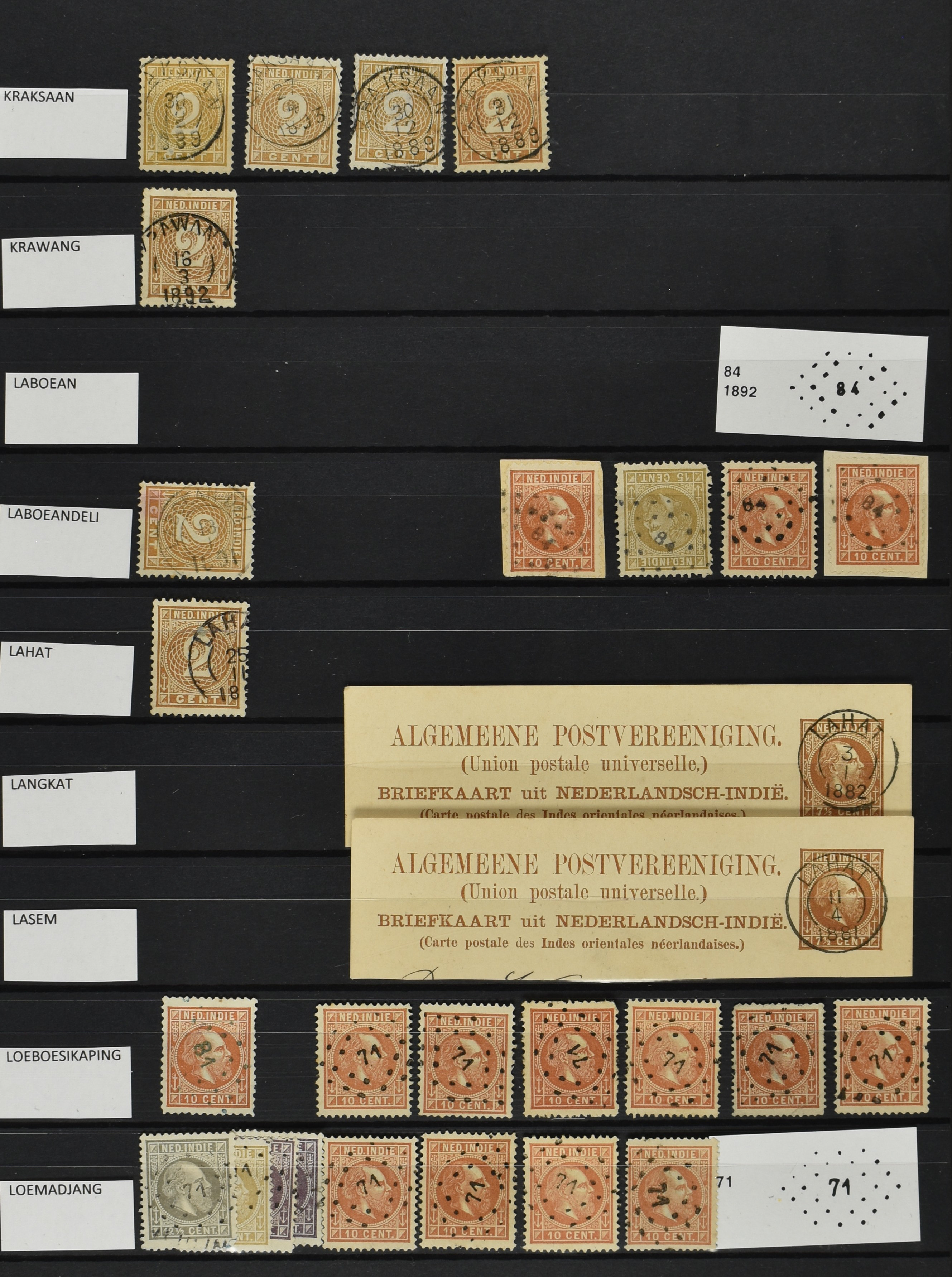 2256 imageNED.- INDIË POSTHISTORIE VIERKANTSTEMPELS, 89 poststukken waarvan 17 aangetekend, van diverse kantoren w.o. schaarse en zeldzame zoals Bajoenglentjir, Indragiri, Mokomoko. Laboeanbilik, Lhoseumawe, Loeboepakam, Lombok (op bk. met interessante tekst), Pampenoea (R-brief), Paree, Poeloeraija (blauw), Sanoer (vz.), Selatpandjang, Semarang-Karangtoeri (op R-brief), Soerabaja-Oedjoeng (o.a. op R-brief), Stagen, Tapan (6-7-1903 als veldpost), Weltevreden-Kramat etc. in Davo-ringband (Image) (Image2) (Image3) (Image4) (Image5) (Image6) (Image7) (Image8) (Image9) (Image10) (Image11) (Image12) (Image13) (Image14) (Image15) (Image16) (Image17) (Image18) (Image19) (Image20) (Image21) (Image22) (Image23) (Image24) (Image25) (Image26) (Image27) (Image28) (Image29) (Image30) (Image31) (Image32) (Image33) (Image34) (Image35) (Image36) (Image37) (Image38) (Image39) (Image40) (Image41) (Image42) (Image43) (Image44) (Image45) (Image46) (All Images)