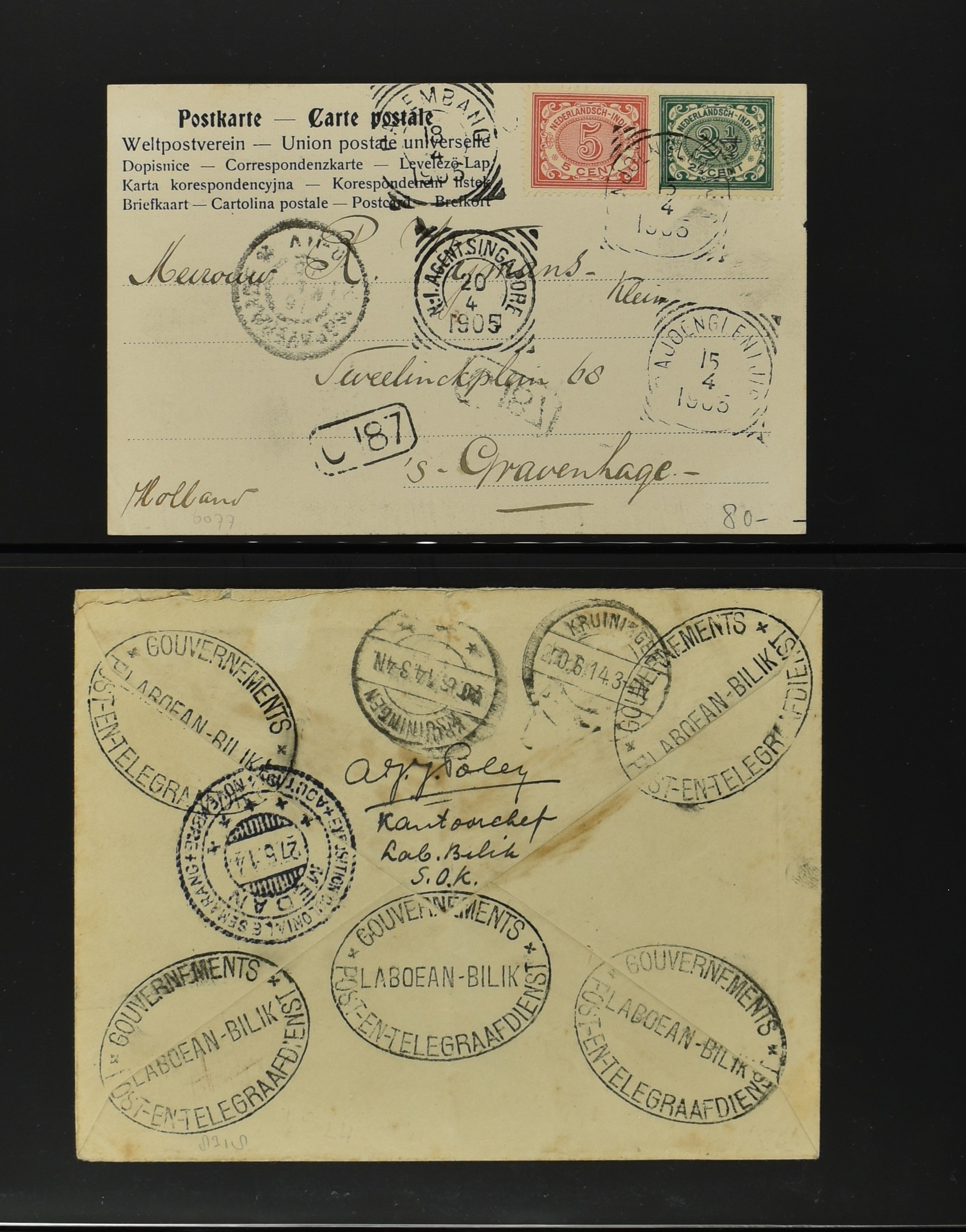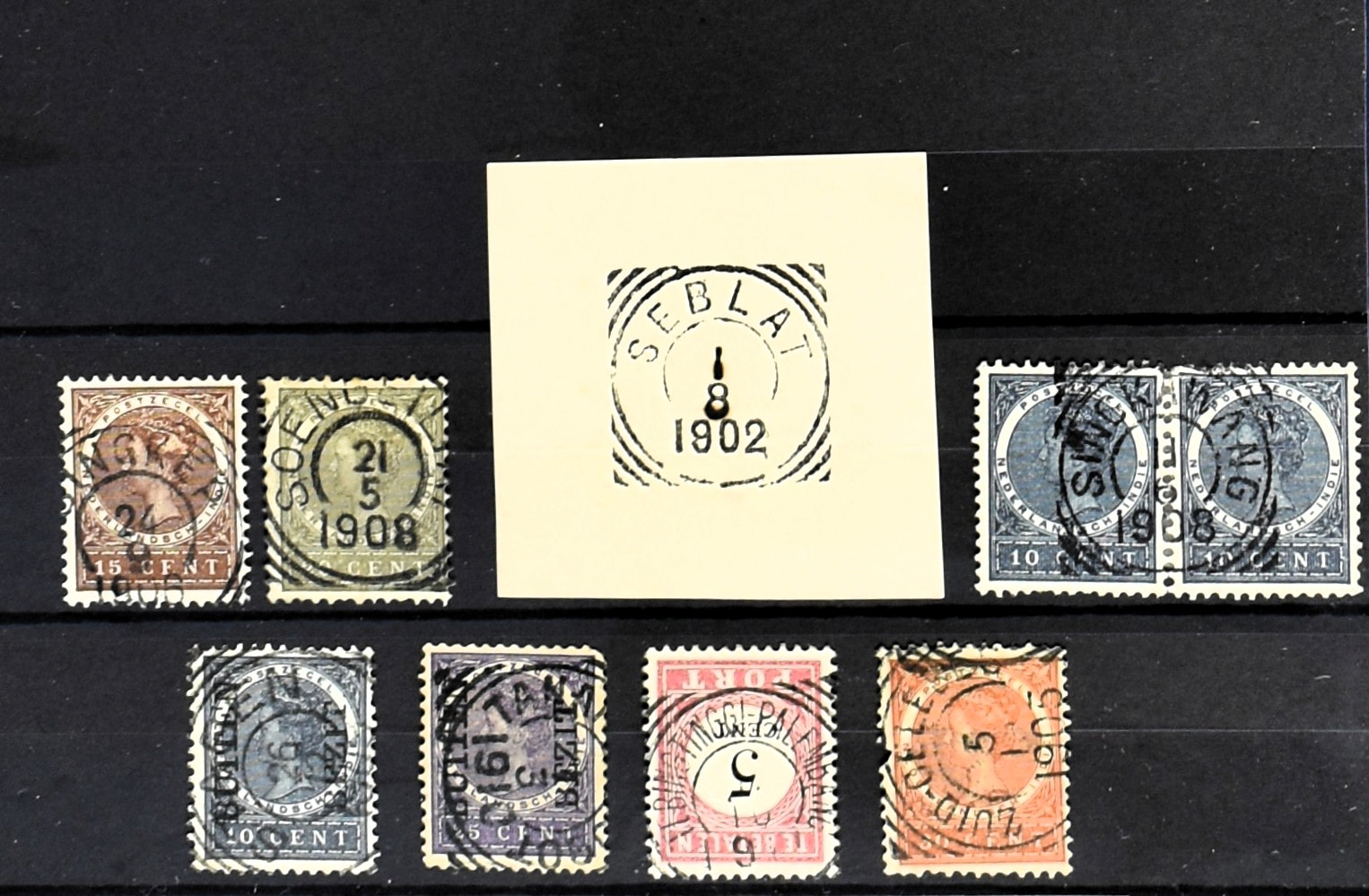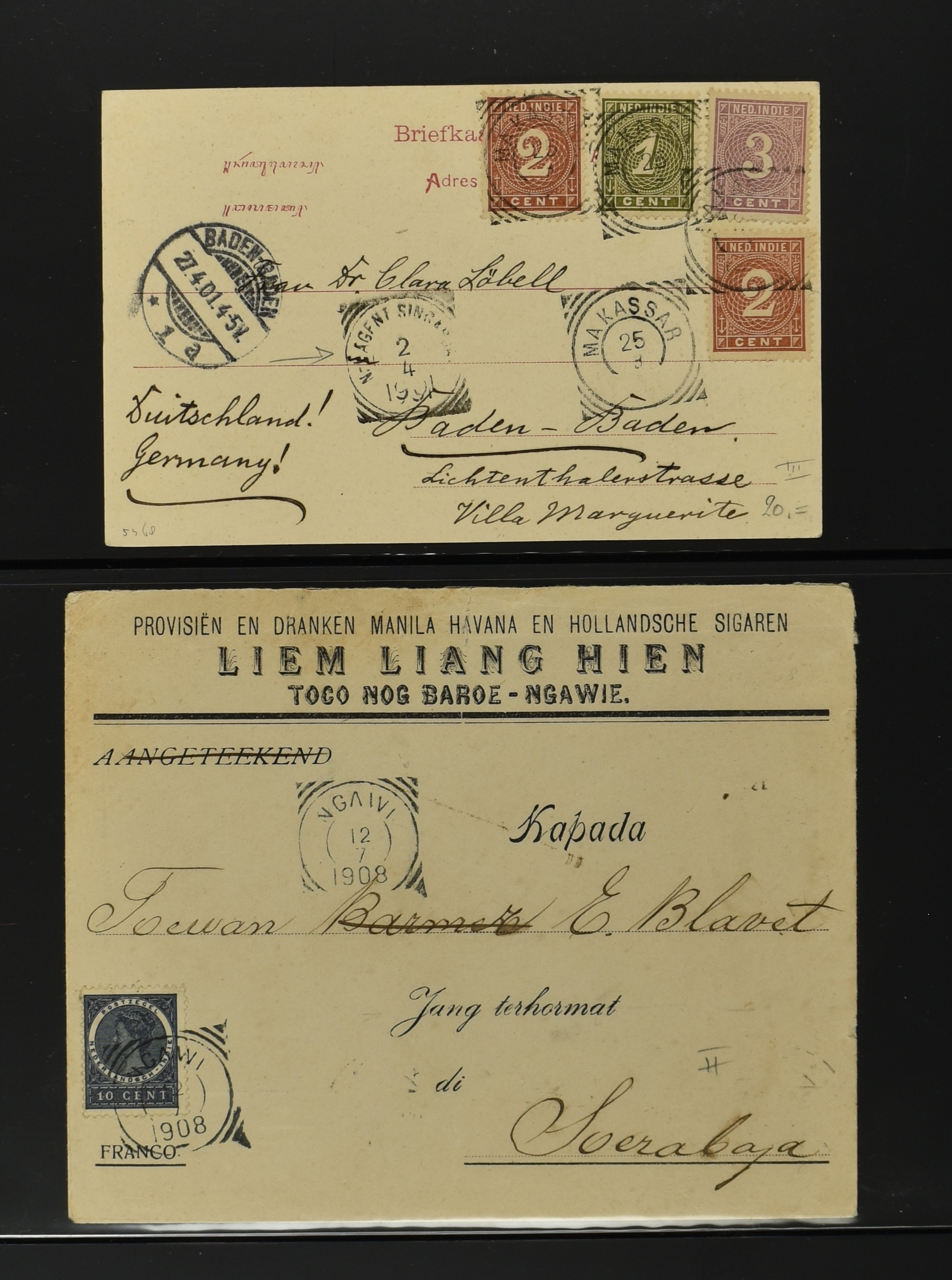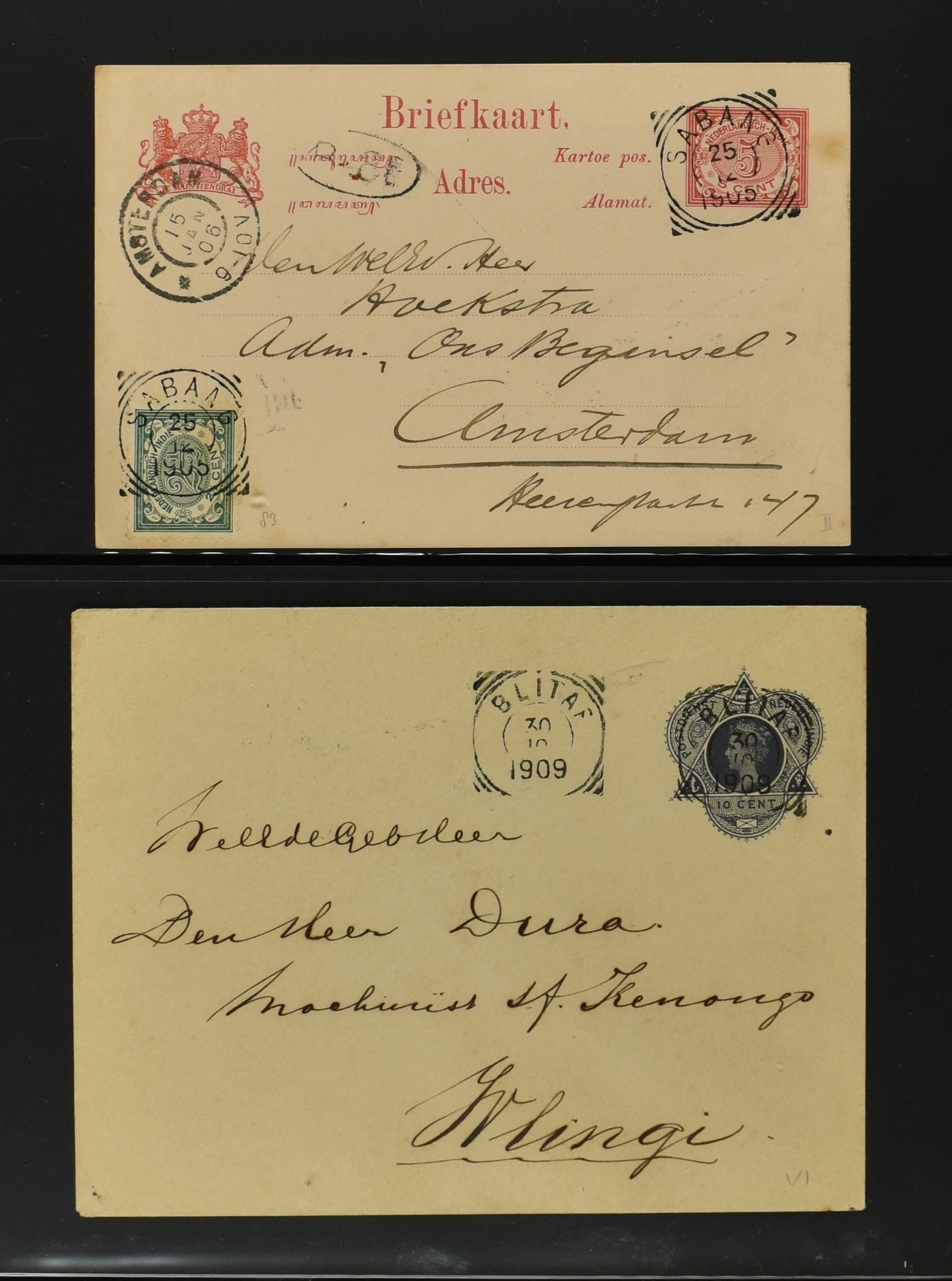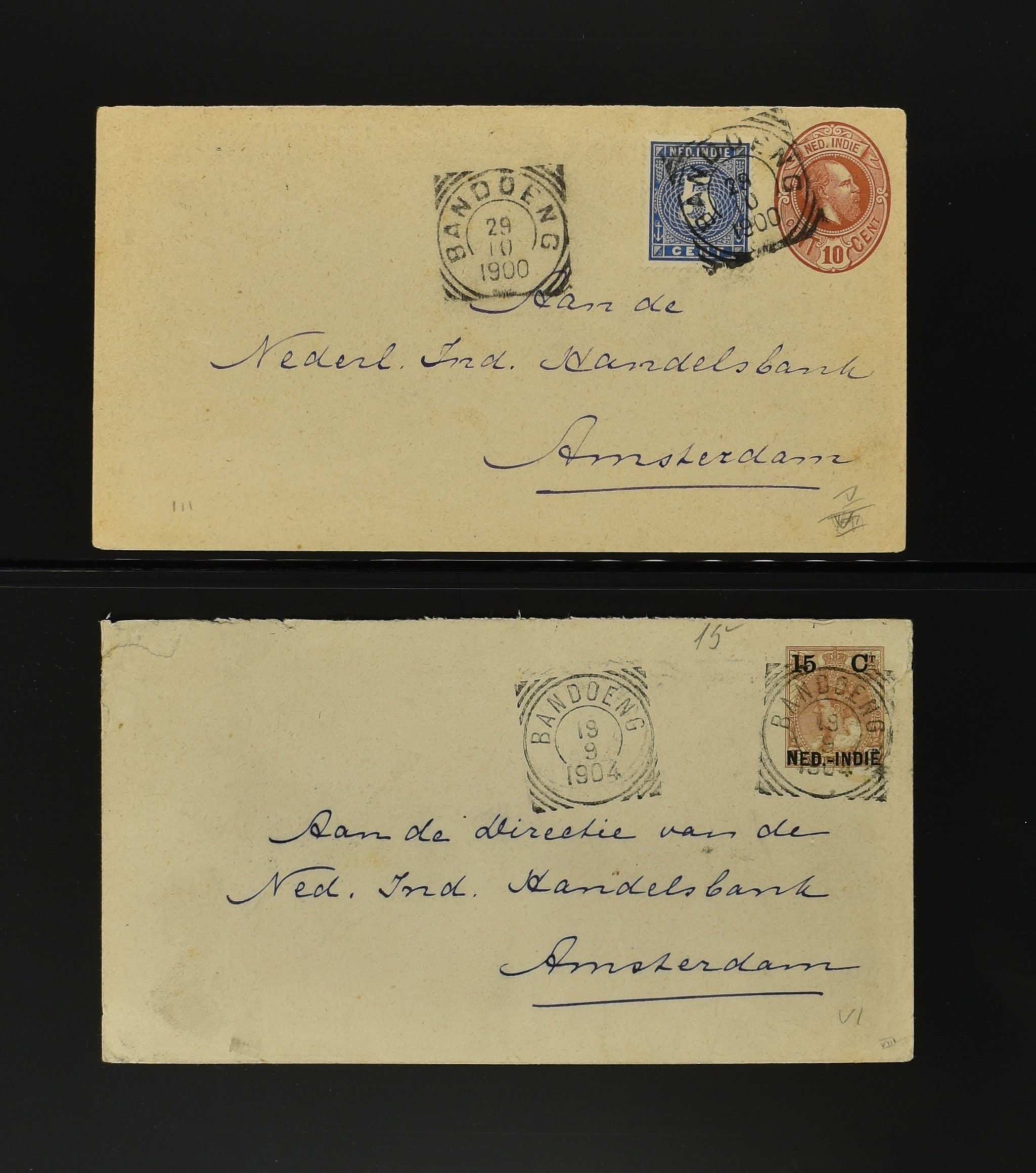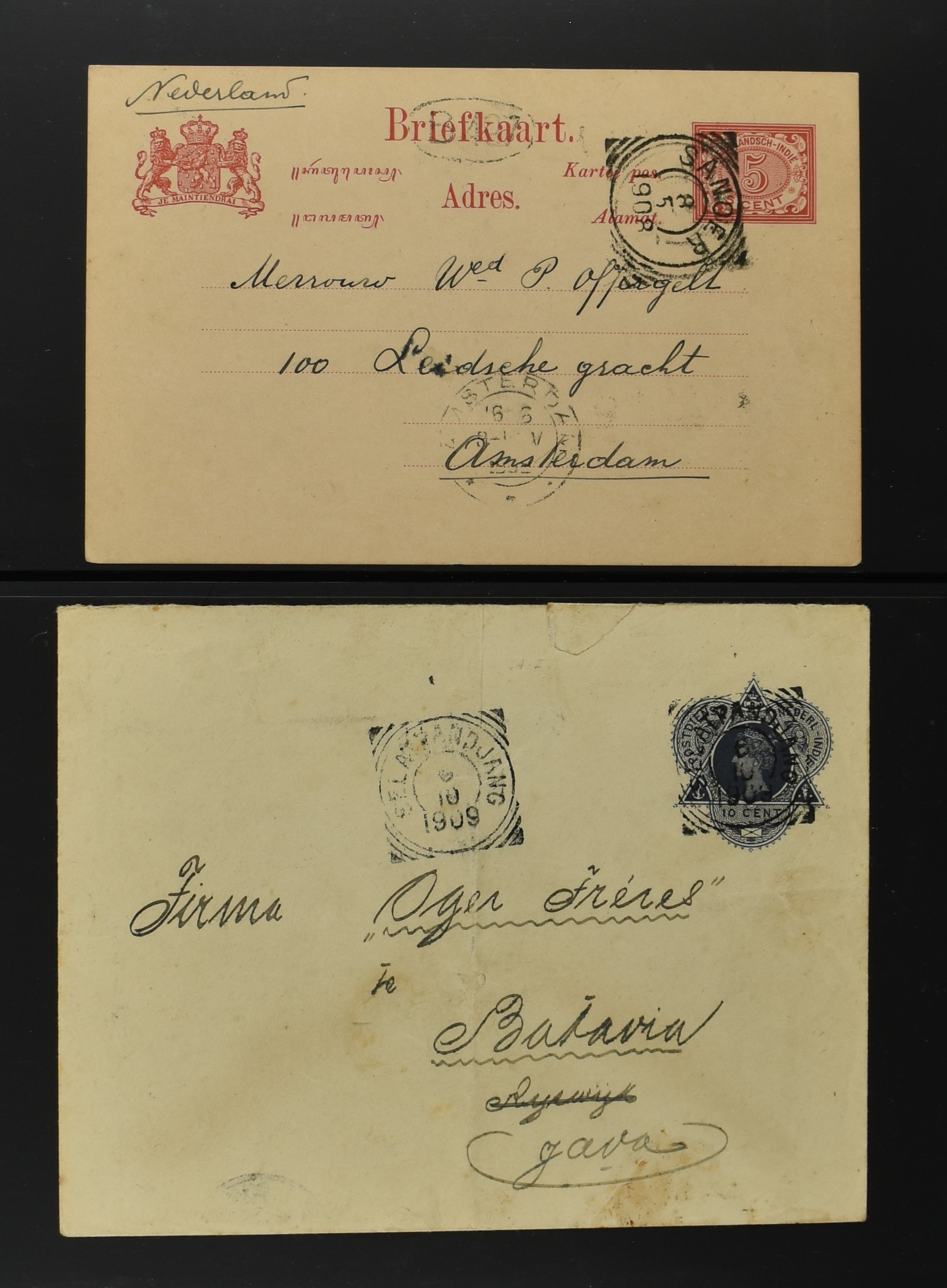 2256 imageNED.- INDIË POSTHISTORIE VIERKANTSTEMPELS, 89 poststukken waarvan 17 aangetekend, van diverse kantoren w.o. schaarse en zeldzame zoals Bajoenglentjir, Indragiri, Mokomoko. Laboeanbilik, Lhoseumawe, Loeboepakam, Lombok (op bk. met interessante tekst), Pampenoea (R-brief), Paree, Poeloeraija (blauw), Sanoer (vz.), Selatpandjang, Semarang-Karangtoeri (op R-brief), Soerabaja-Oedjoeng (o.a. op R-brief), Stagen, Tapan (6-7-1903 als veldpost), Weltevreden-Kramat etc. in Davo-ringband (Image) (Image2) (Image3) (Image4) (Image5) (Image6) (Image7) (Image8) (Image9) (Image10) (Image11) (Image12) (Image13) (Image14) (Image15) (Image16) (Image17) (Image18) (Image19) (Image20) (Image21) (Image22) (Image23) (Image24) (Image25) (Image26) (Image27) (Image28) (Image29) (Image30) (Image31) (Image32) (Image33) (Image34) (Image35) (Image36) (Image37) (Image38) (Image39) (Image40) (Image41) (Image42) (Image43) (Image44) (Image45) (Image46) (All Images)