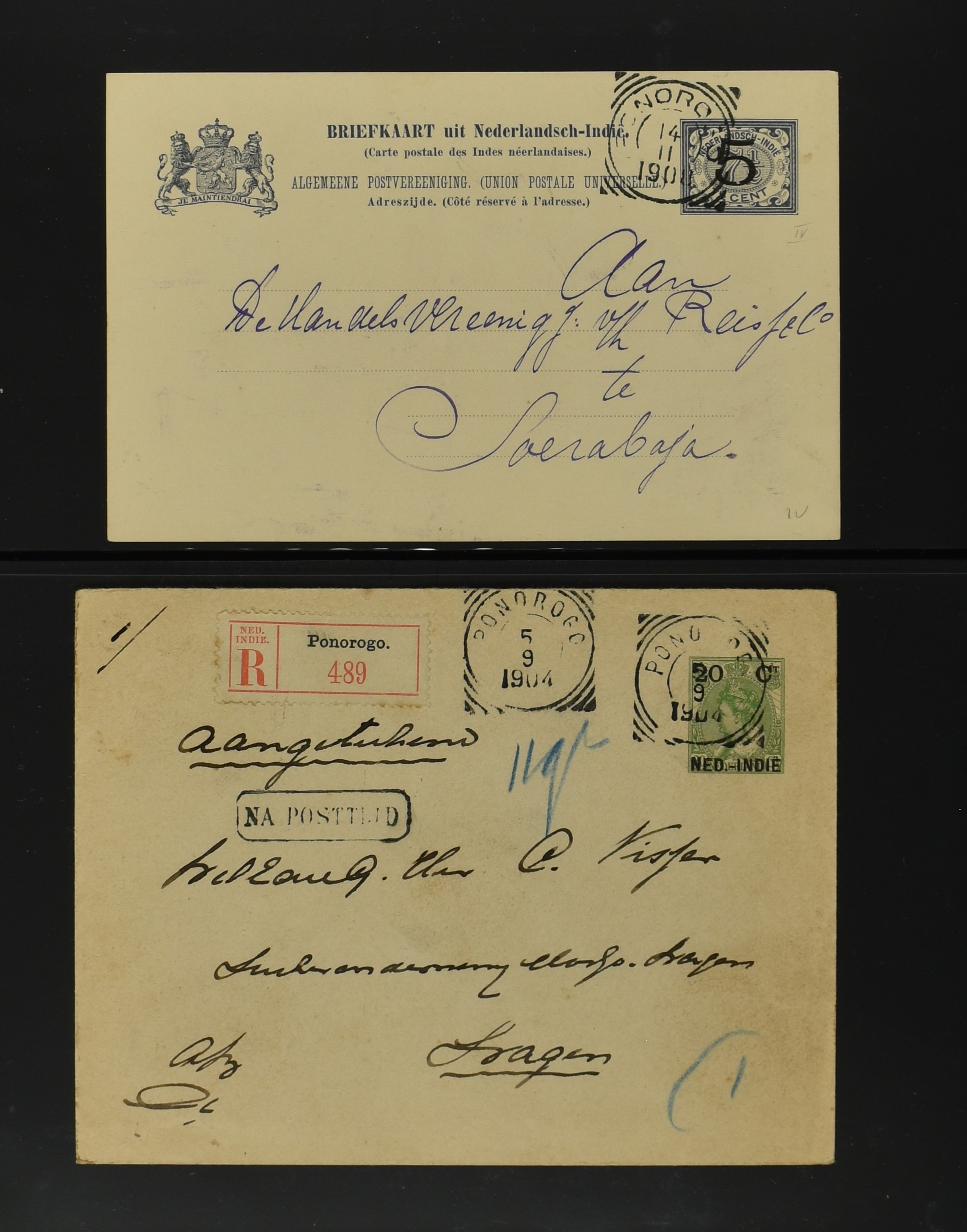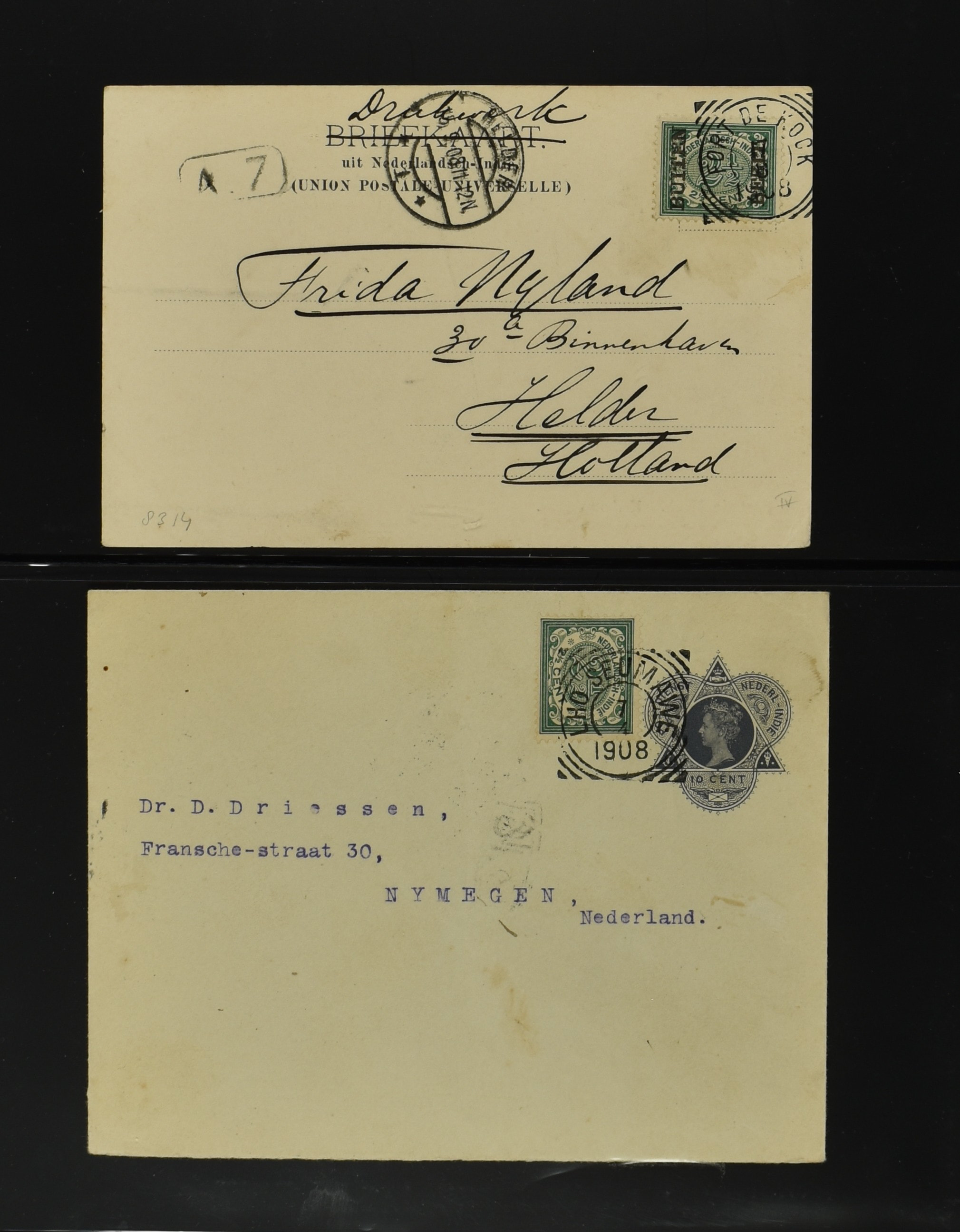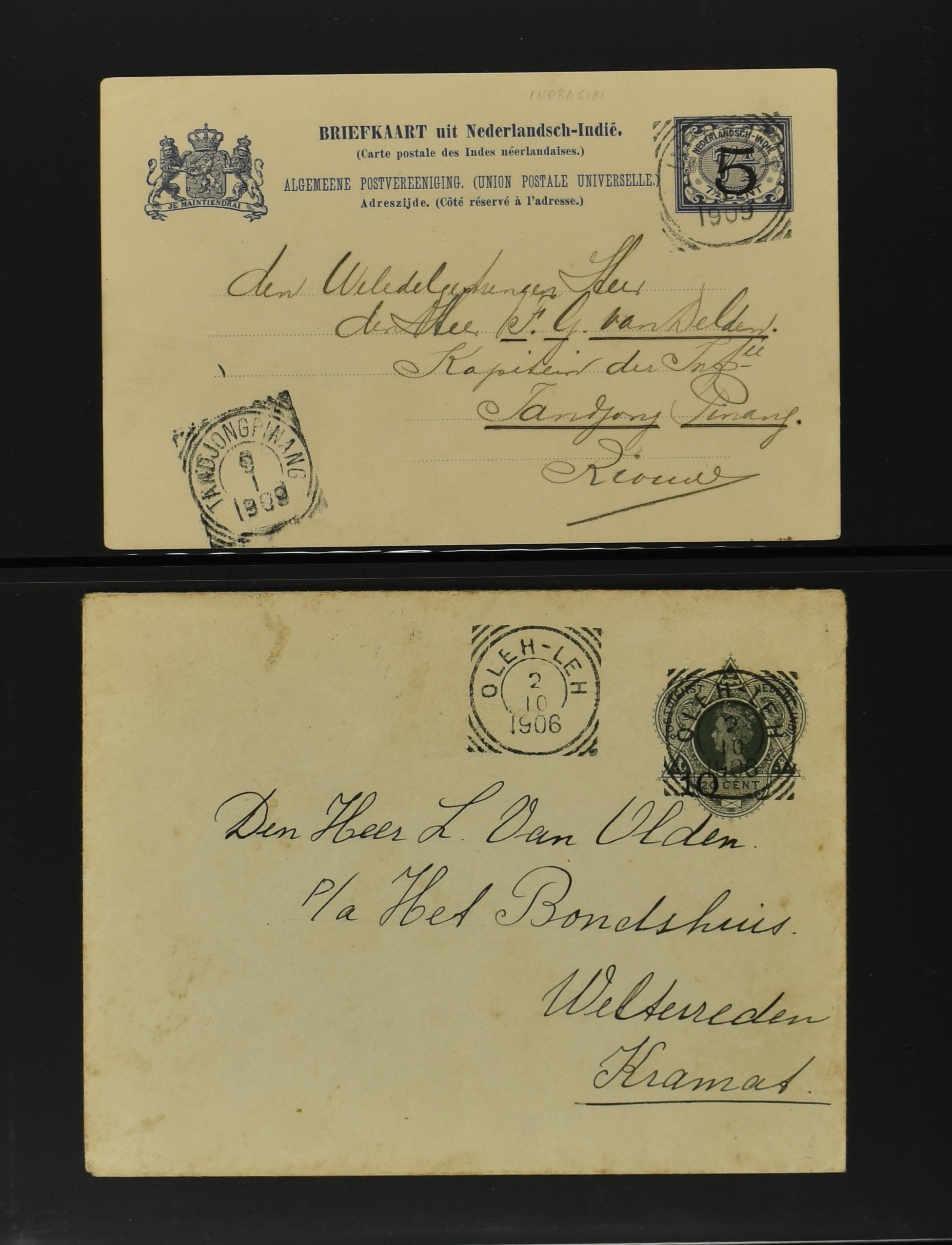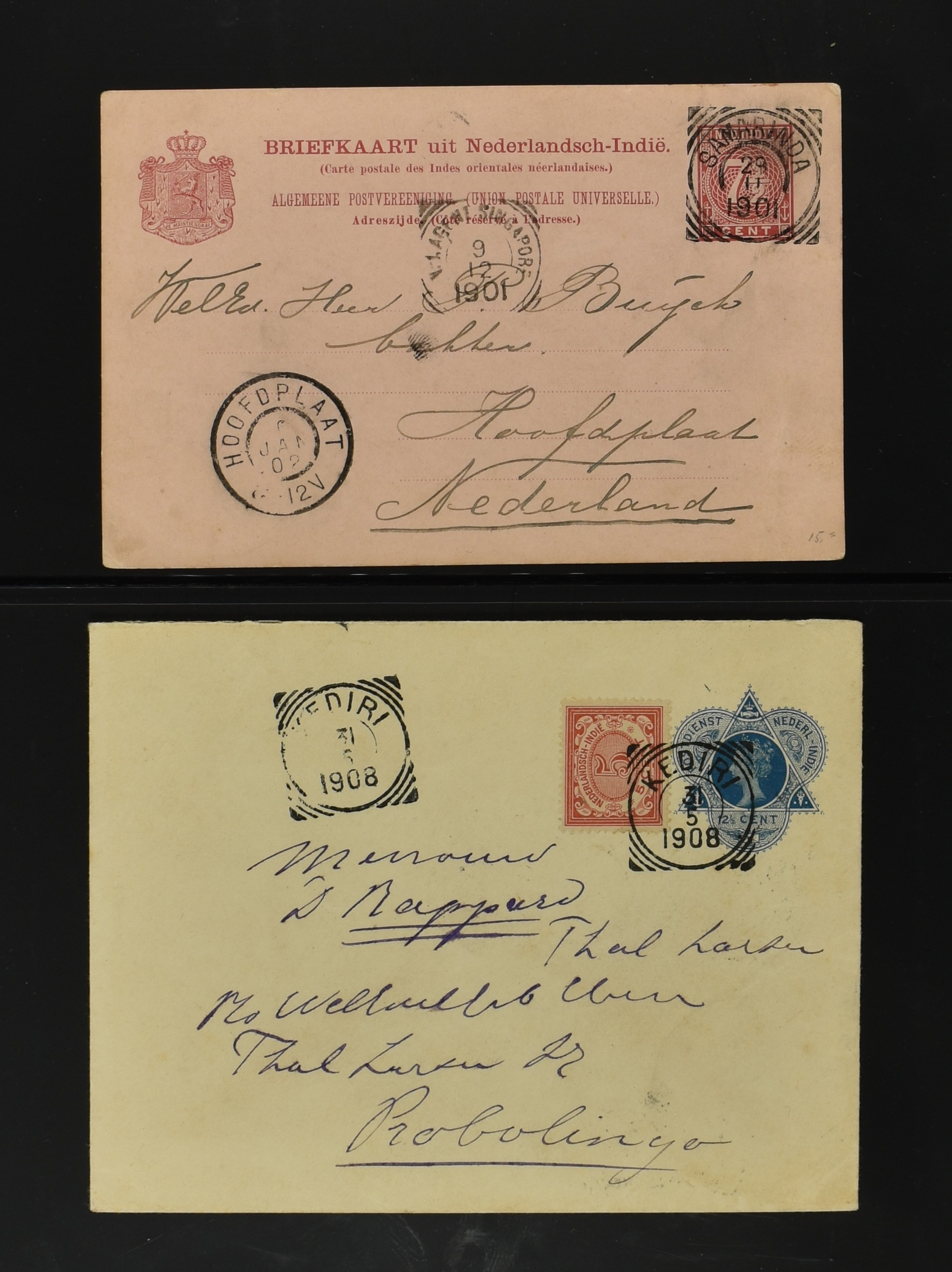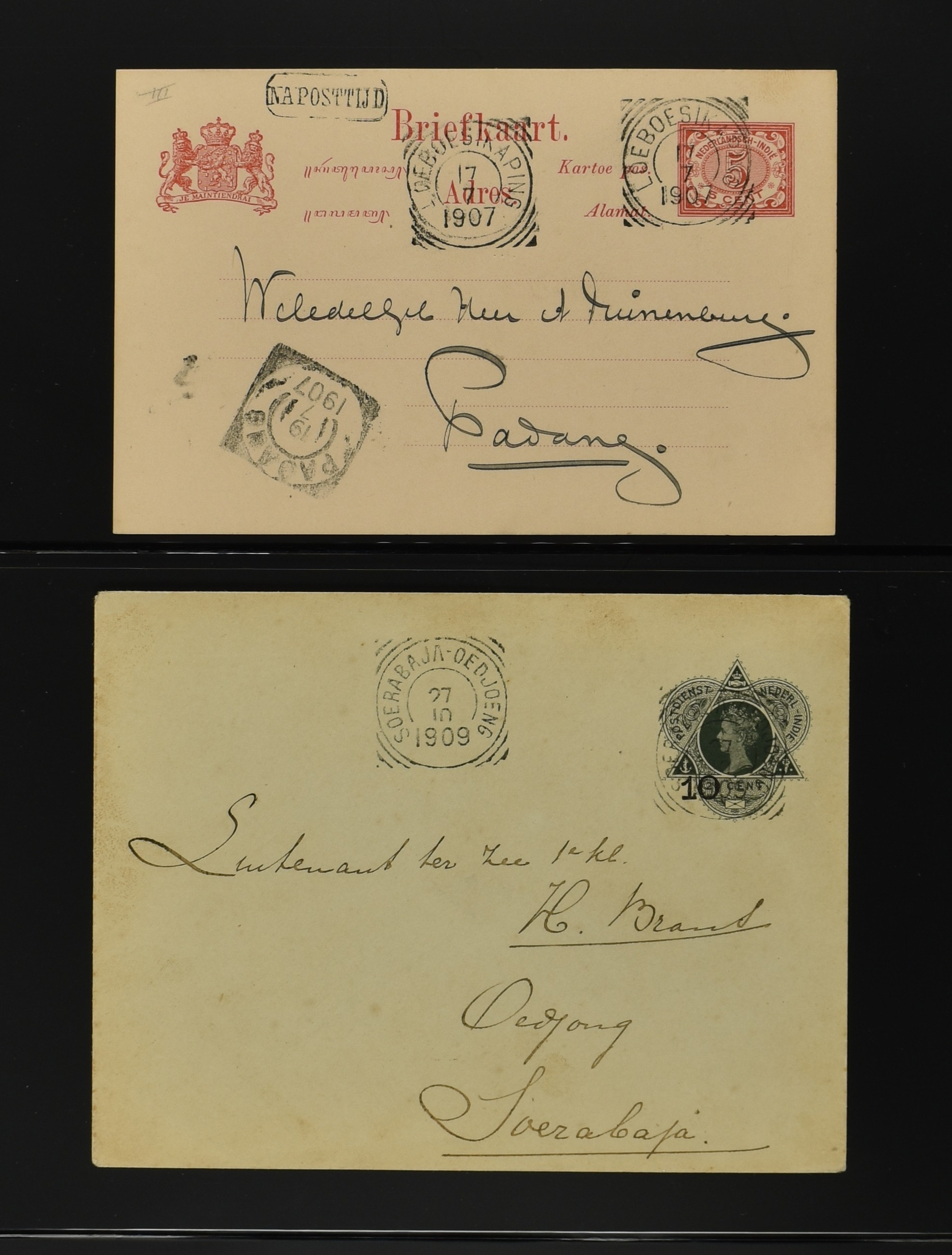 2256 imageNED.- INDIË POSTHISTORIE VIERKANTSTEMPELS, 89 poststukken waarvan 17 aangetekend, van diverse kantoren w.o. schaarse en zeldzame zoals Bajoenglentjir, Indragiri, Mokomoko. Laboeanbilik, Lhoseumawe, Loeboepakam, Lombok (op bk. met interessante tekst), Pampenoea (R-brief), Paree, Poeloeraija (blauw), Sanoer (vz.), Selatpandjang, Semarang-Karangtoeri (op R-brief), Soerabaja-Oedjoeng (o.a. op R-brief), Stagen, Tapan (6-7-1903 als veldpost), Weltevreden-Kramat etc. in Davo-ringband (Image) (Image2) (Image3) (Image4) (Image5) (Image6) (Image7) (Image8) (Image9) (Image10) (Image11) (Image12) (Image13) (Image14) (Image15) (Image16) (Image17) (Image18) (Image19) (Image20) (Image21) (Image22) (Image23) (Image24) (Image25) (Image26) (Image27) (Image28) (Image29) (Image30) (Image31) (Image32) (Image33) (Image34) (Image35) (Image36) (Image37) (Image38) (Image39) (Image40) (Image41) (Image42) (Image43) (Image44) (Image45) (Image46) (All Images)