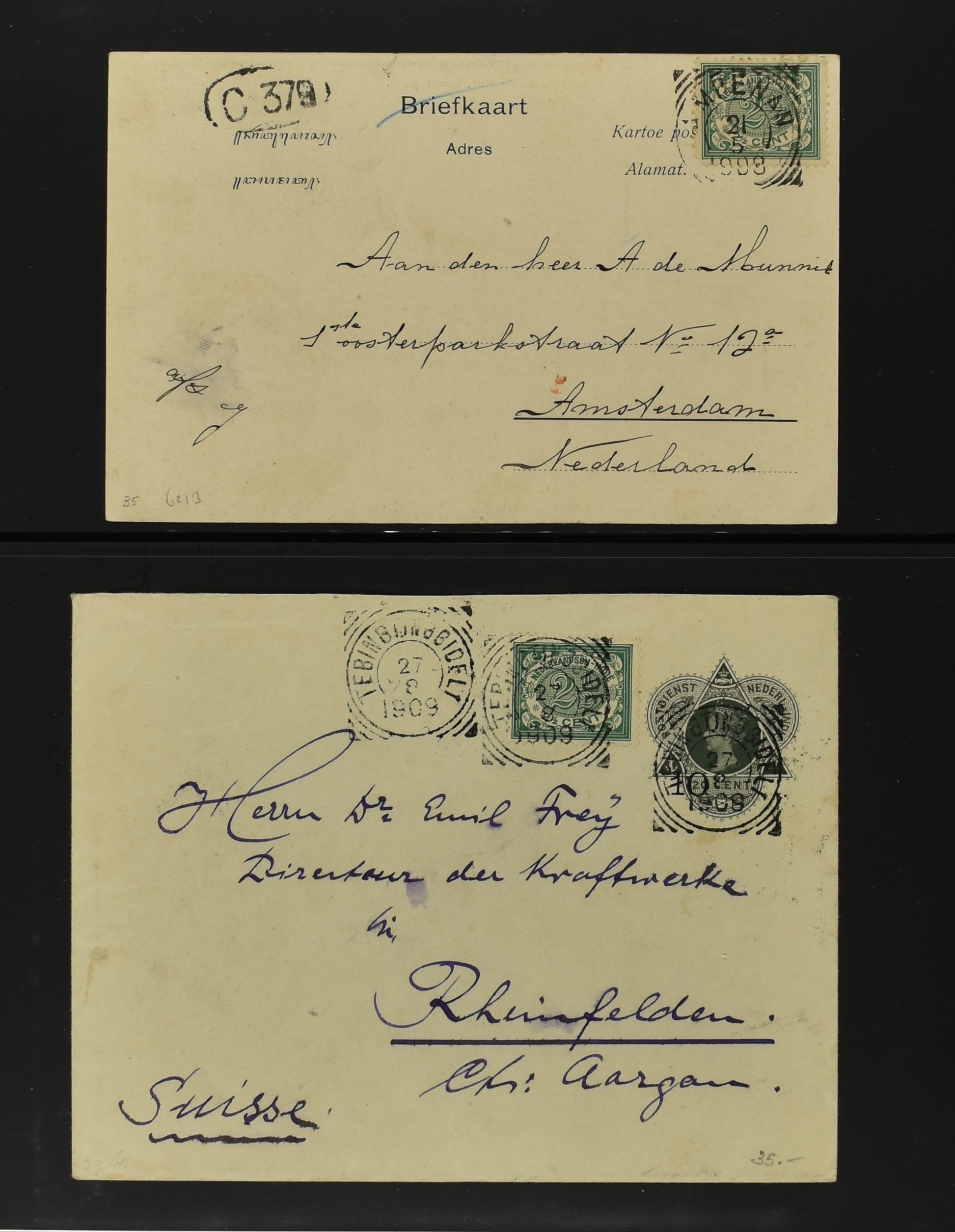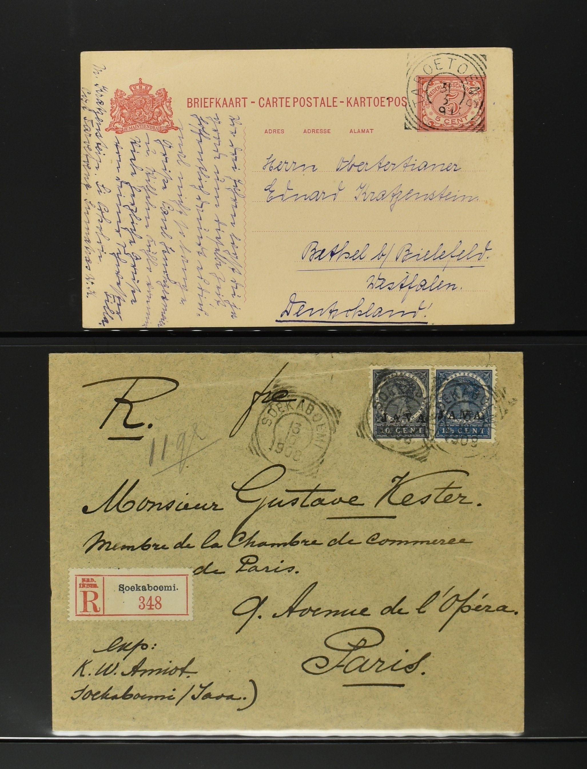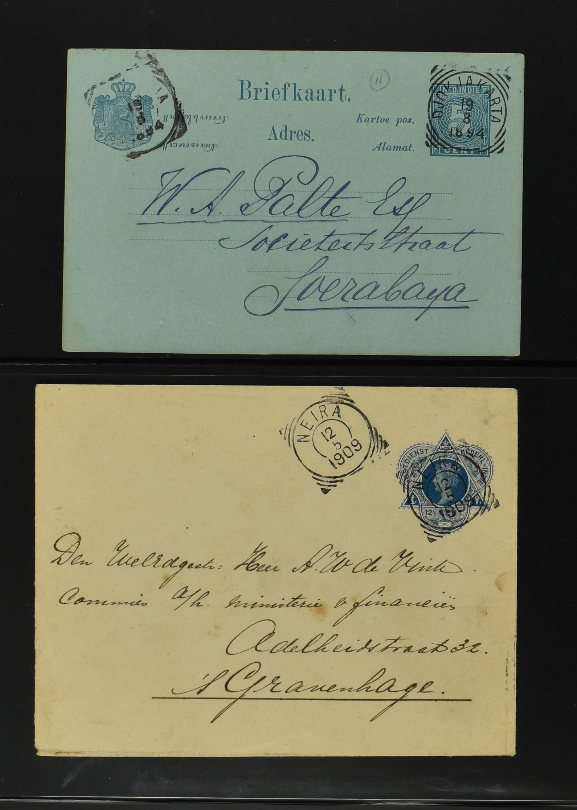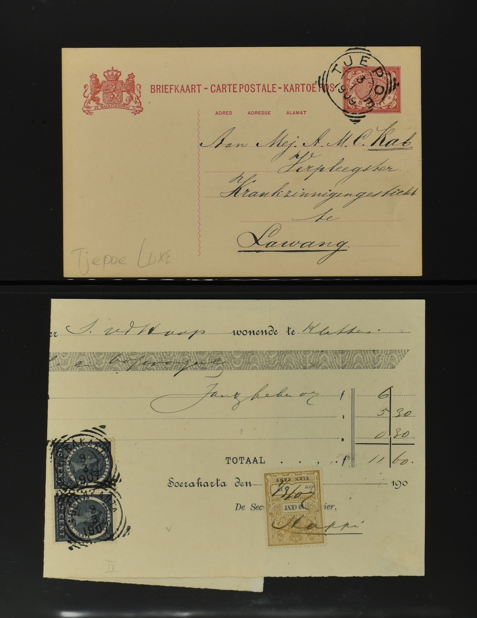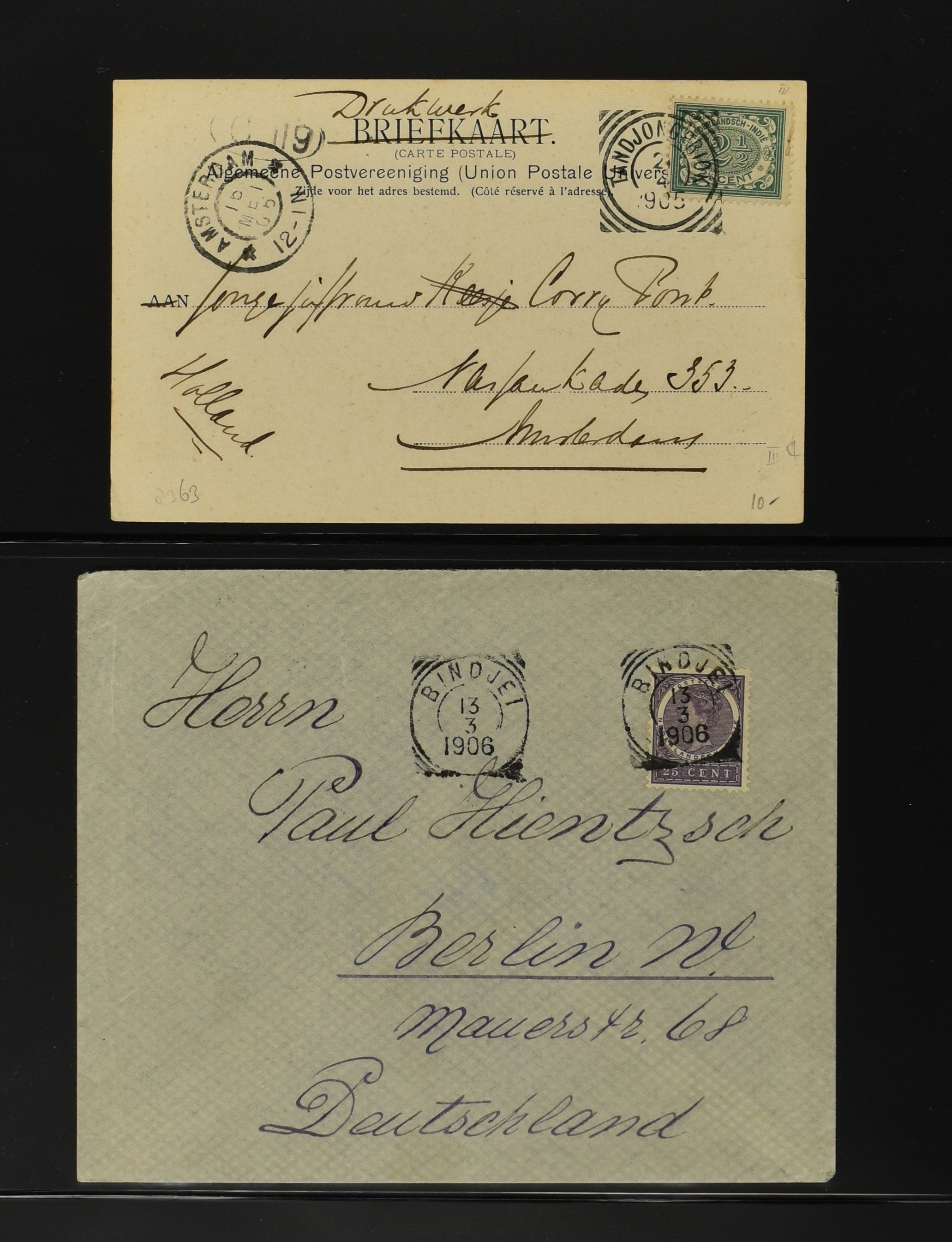 2256 imageNED.- INDIË POSTHISTORIE VIERKANTSTEMPELS, 89 poststukken waarvan 17 aangetekend, van diverse kantoren w.o. schaarse en zeldzame zoals Bajoenglentjir, Indragiri, Mokomoko. Laboeanbilik, Lhoseumawe, Loeboepakam, Lombok (op bk. met interessante tekst), Pampenoea (R-brief), Paree, Poeloeraija (blauw), Sanoer (vz.), Selatpandjang, Semarang-Karangtoeri (op R-brief), Soerabaja-Oedjoeng (o.a. op R-brief), Stagen, Tapan (6-7-1903 als veldpost), Weltevreden-Kramat etc. in Davo-ringband (Image) (Image2) (Image3) (Image4) (Image5) (Image6) (Image7) (Image8) (Image9) (Image10) (Image11) (Image12) (Image13) (Image14) (Image15) (Image16) (Image17) (Image18) (Image19) (Image20) (Image21) (Image22) (Image23) (Image24) (Image25) (Image26) (Image27) (Image28) (Image29) (Image30) (Image31) (Image32) (Image33) (Image34) (Image35) (Image36) (Image37) (Image38) (Image39) (Image40) (Image41) (Image42) (Image43) (Image44) (Image45) (Image46) (All Images)