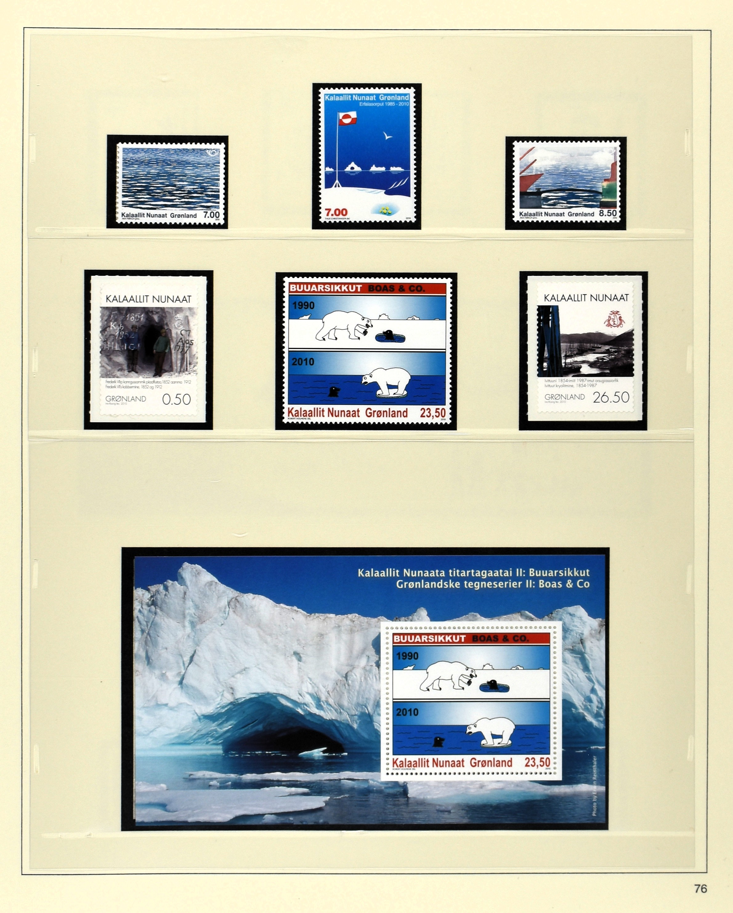 GREENLAND 1905-2010, */** collection in 2 Safe albums with better numbers and sets f.i.: 8/16**, 17/25**, 20I/25I**, Parcelpost etc.etc. in nice quality! with a high catalogue value! (Image) (Image2)