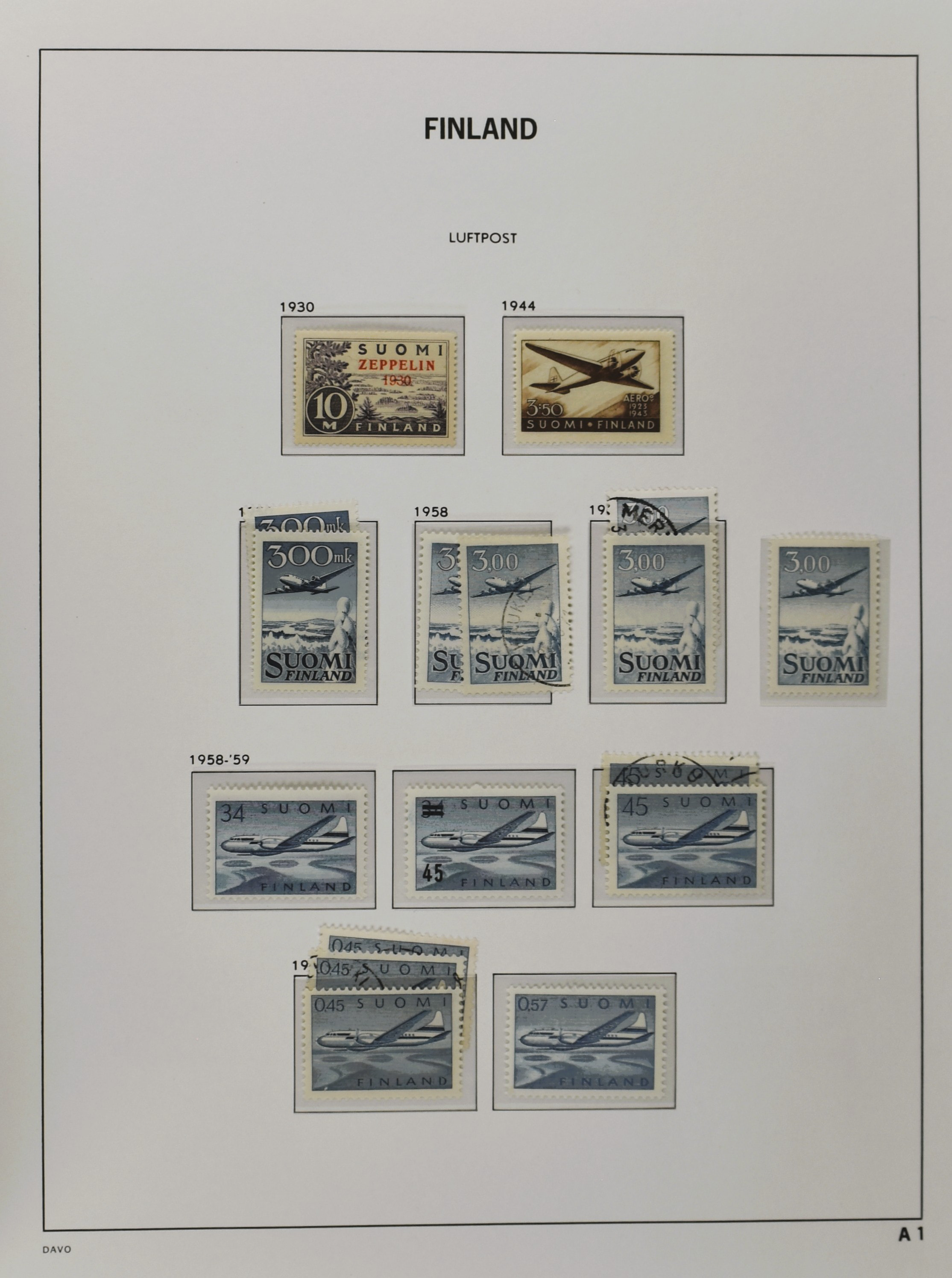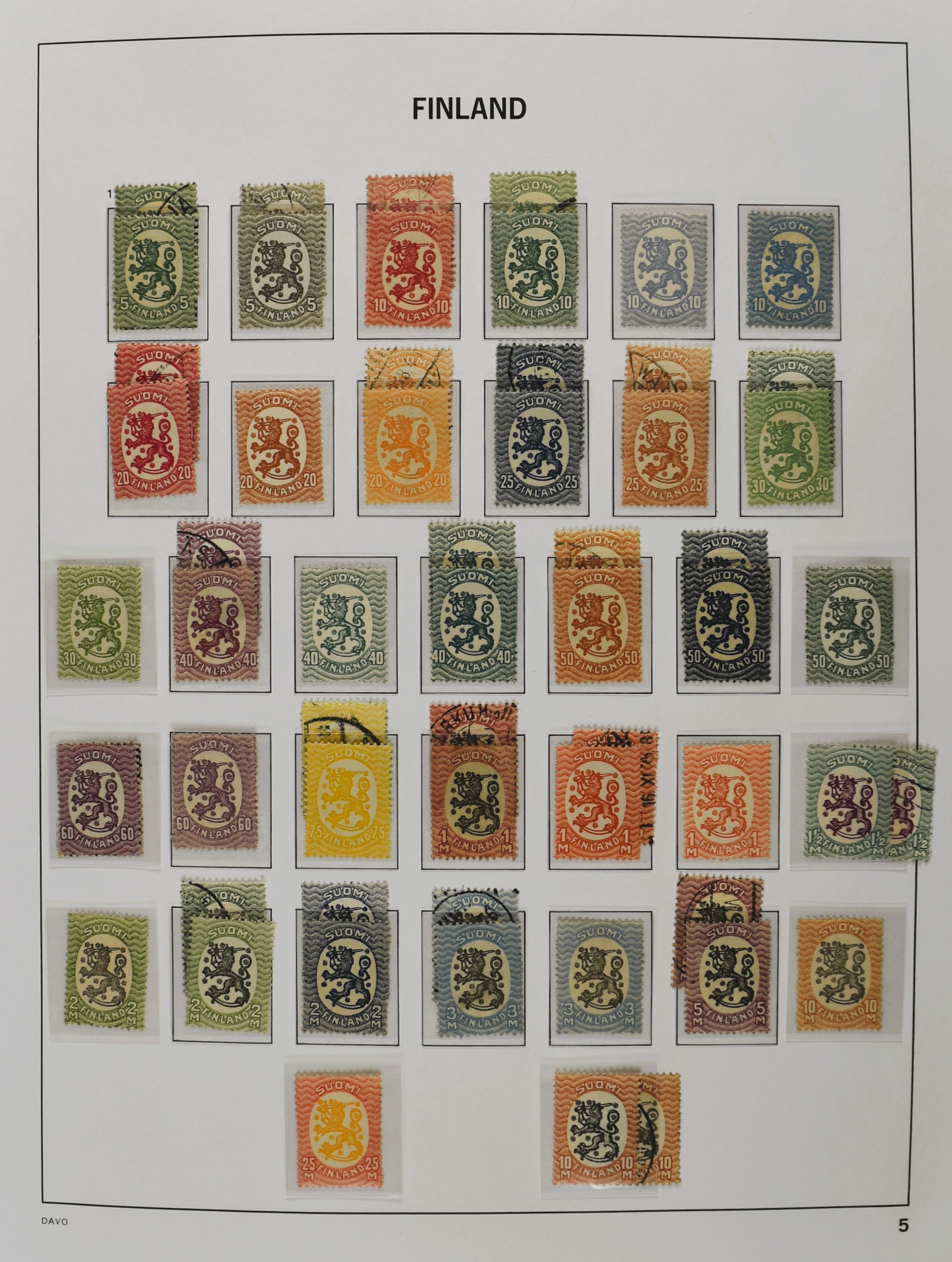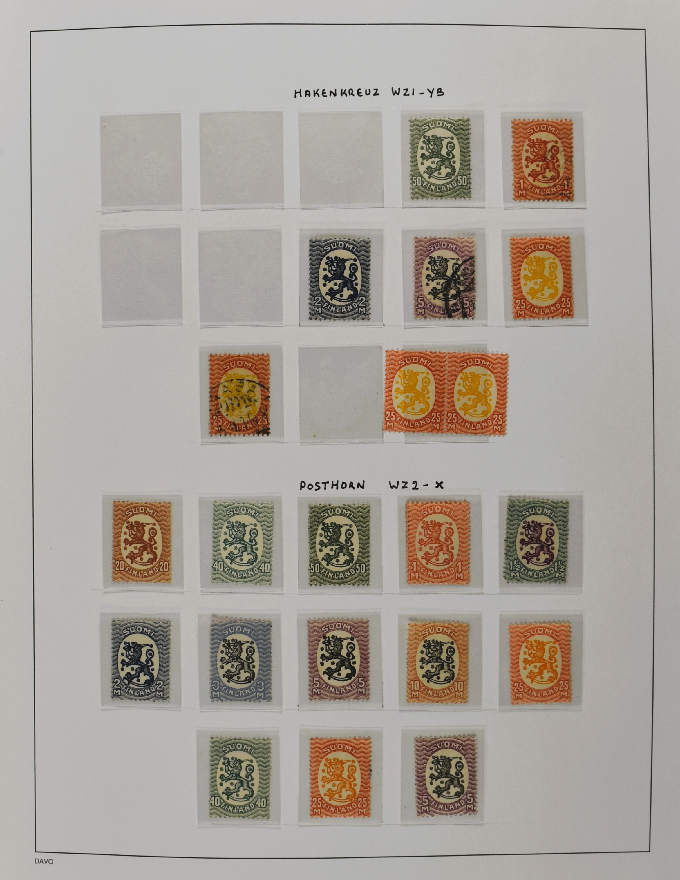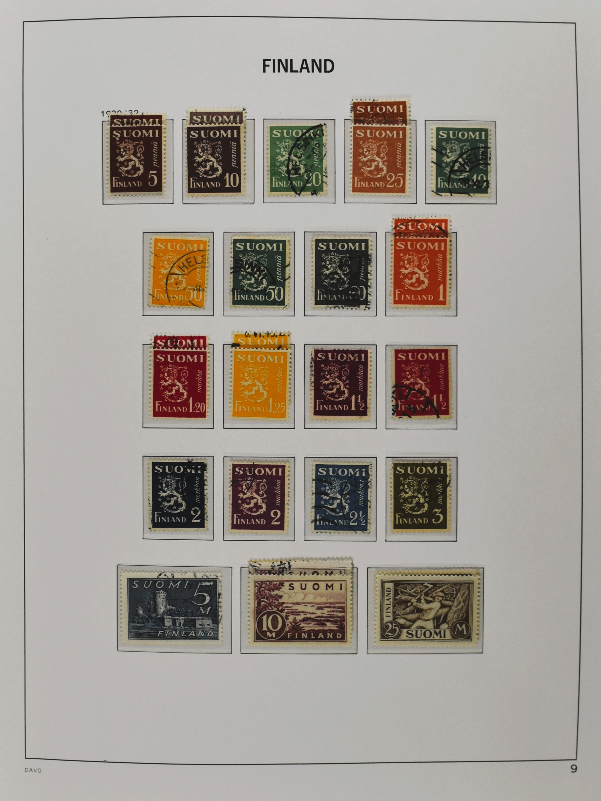 FINLAND 1856-1970, o/*/** collection in 1 Davo album with a nice part serpentines and several other better numbers and sets often used and mint/unmounted mint incl. East Karelia and Militairy stamps 1941-1944 (Image) (Image2)