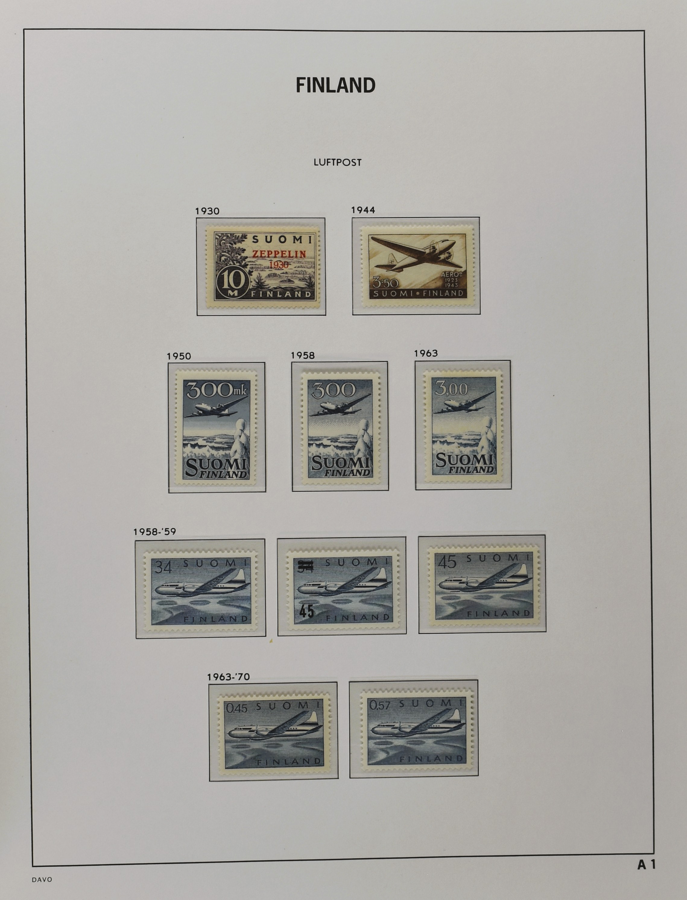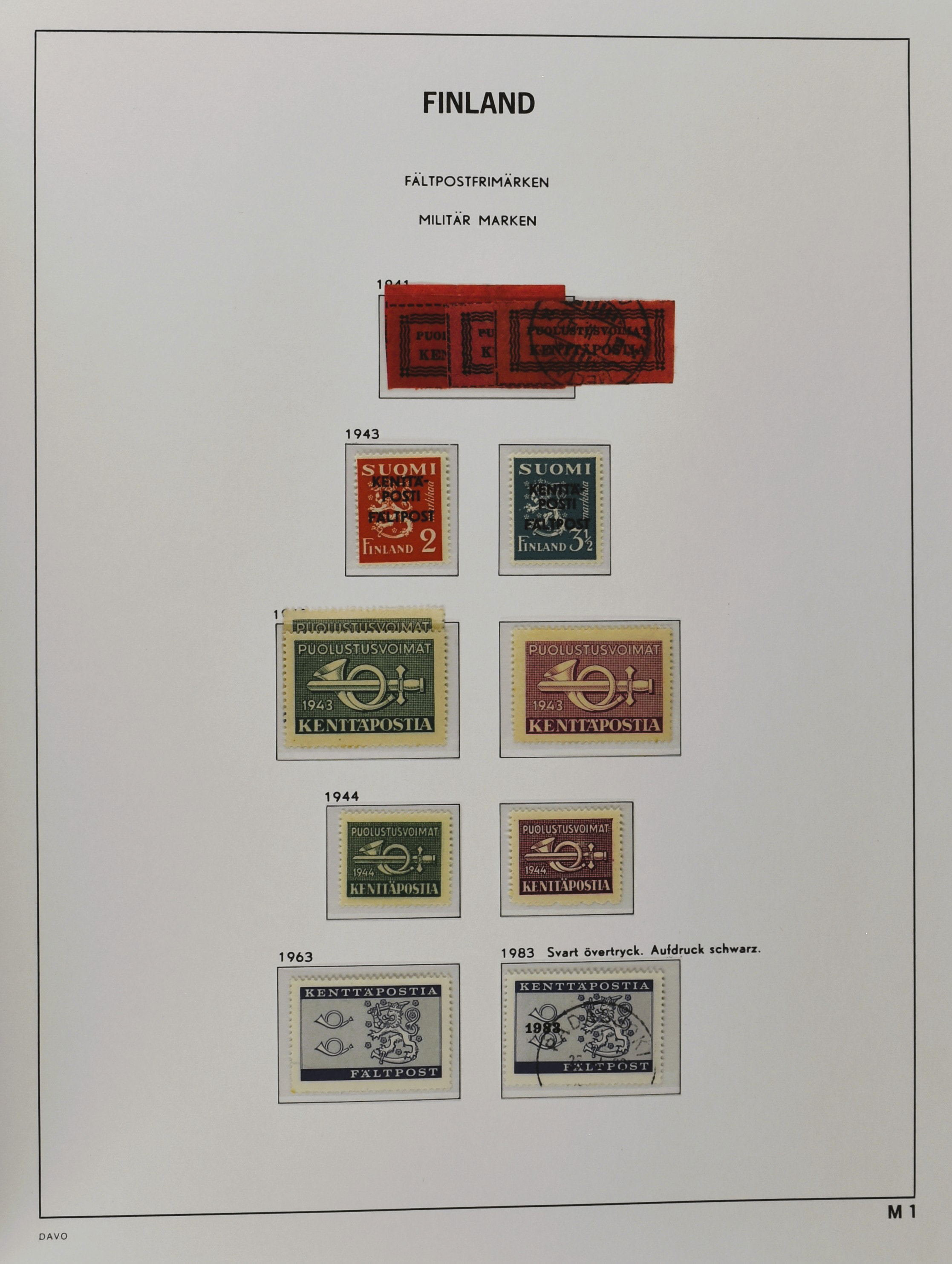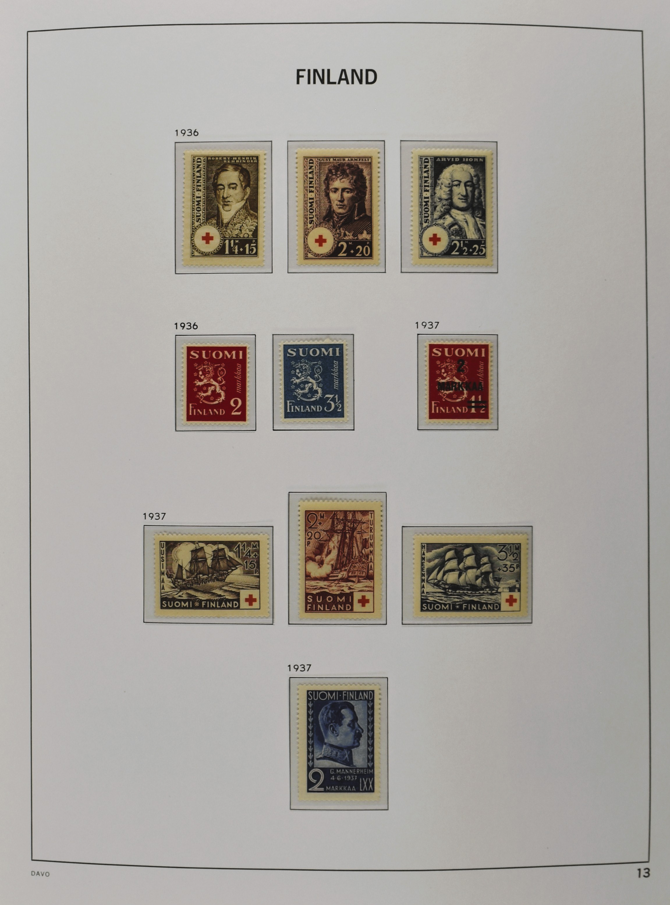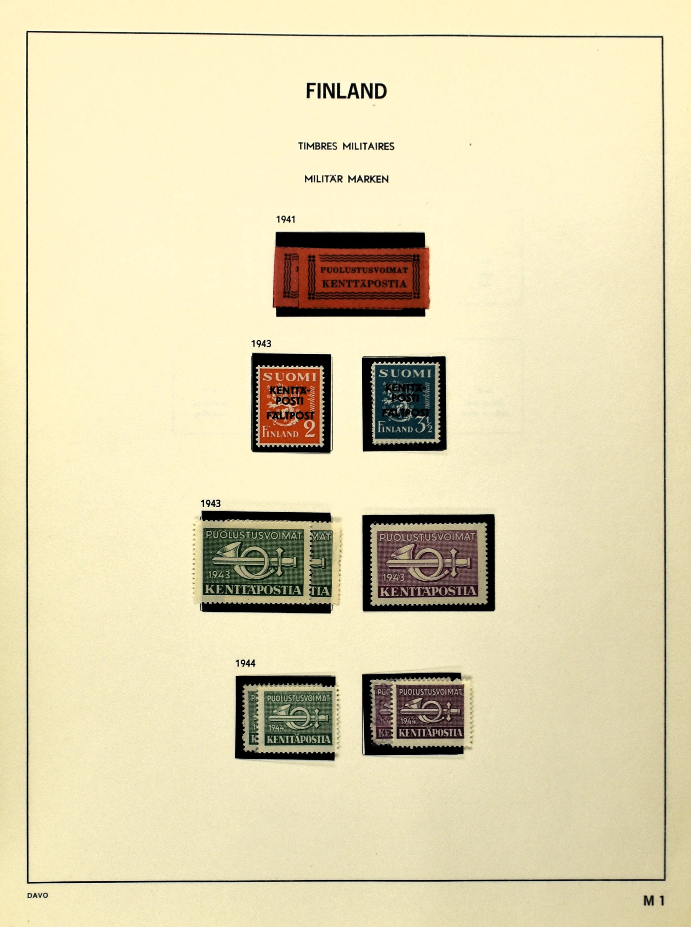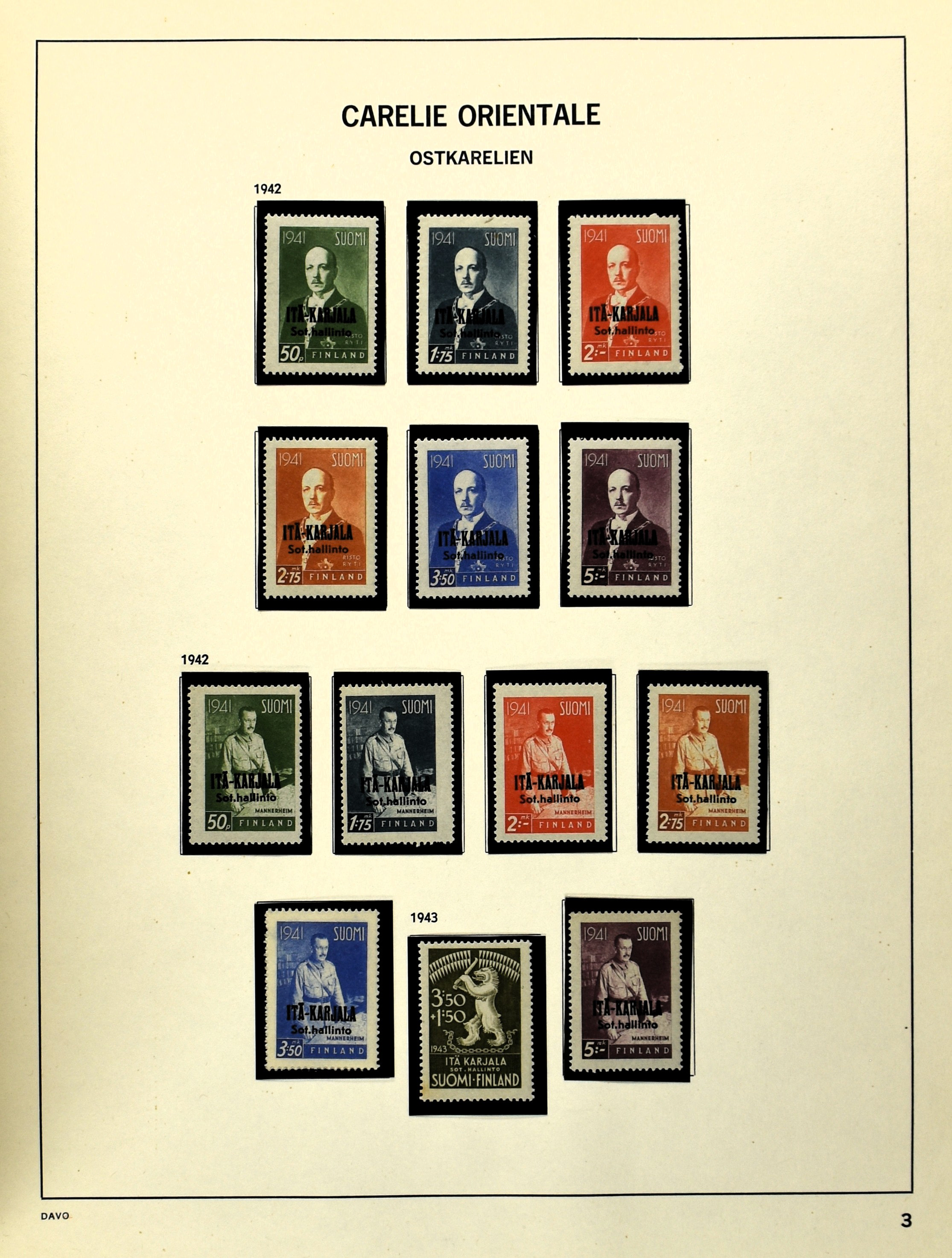 FINLAND 1856-1970, o/*/** collection in 1 Davo album with a nice part serpentines and several other better numbers and sets often used and mint/unmounted mint incl. East Karelia and Militairy stamps 1941-1944 (Image) (Image2)