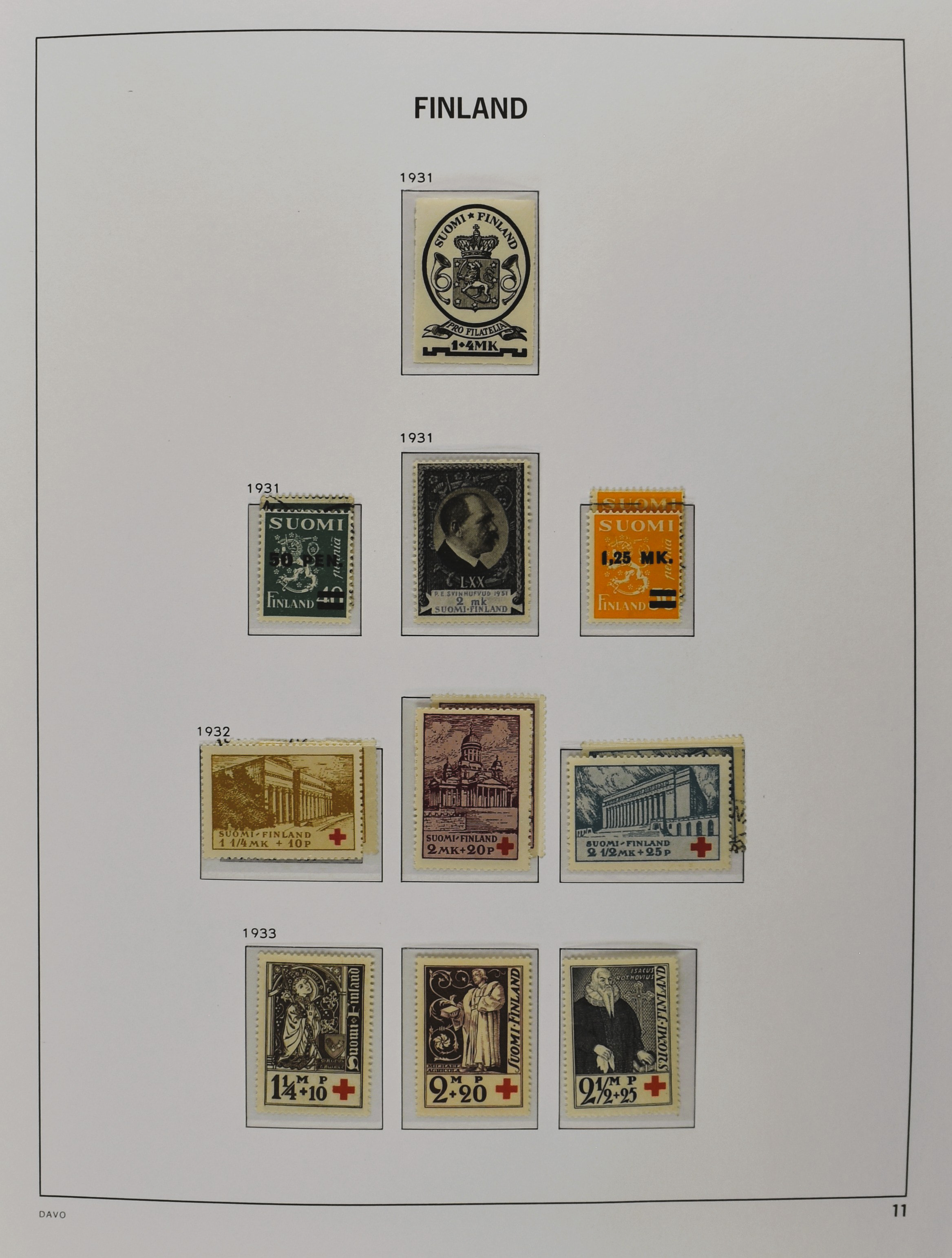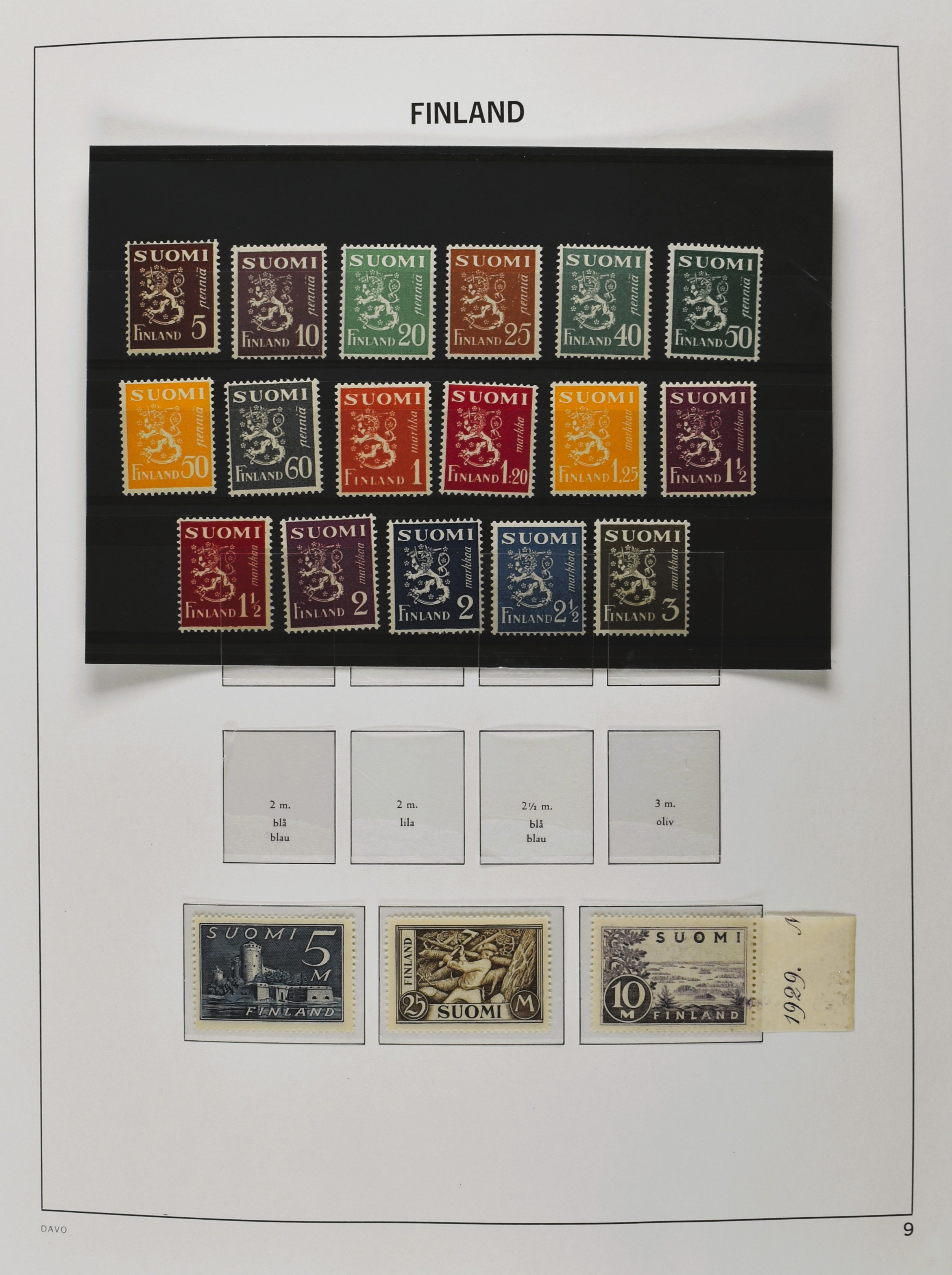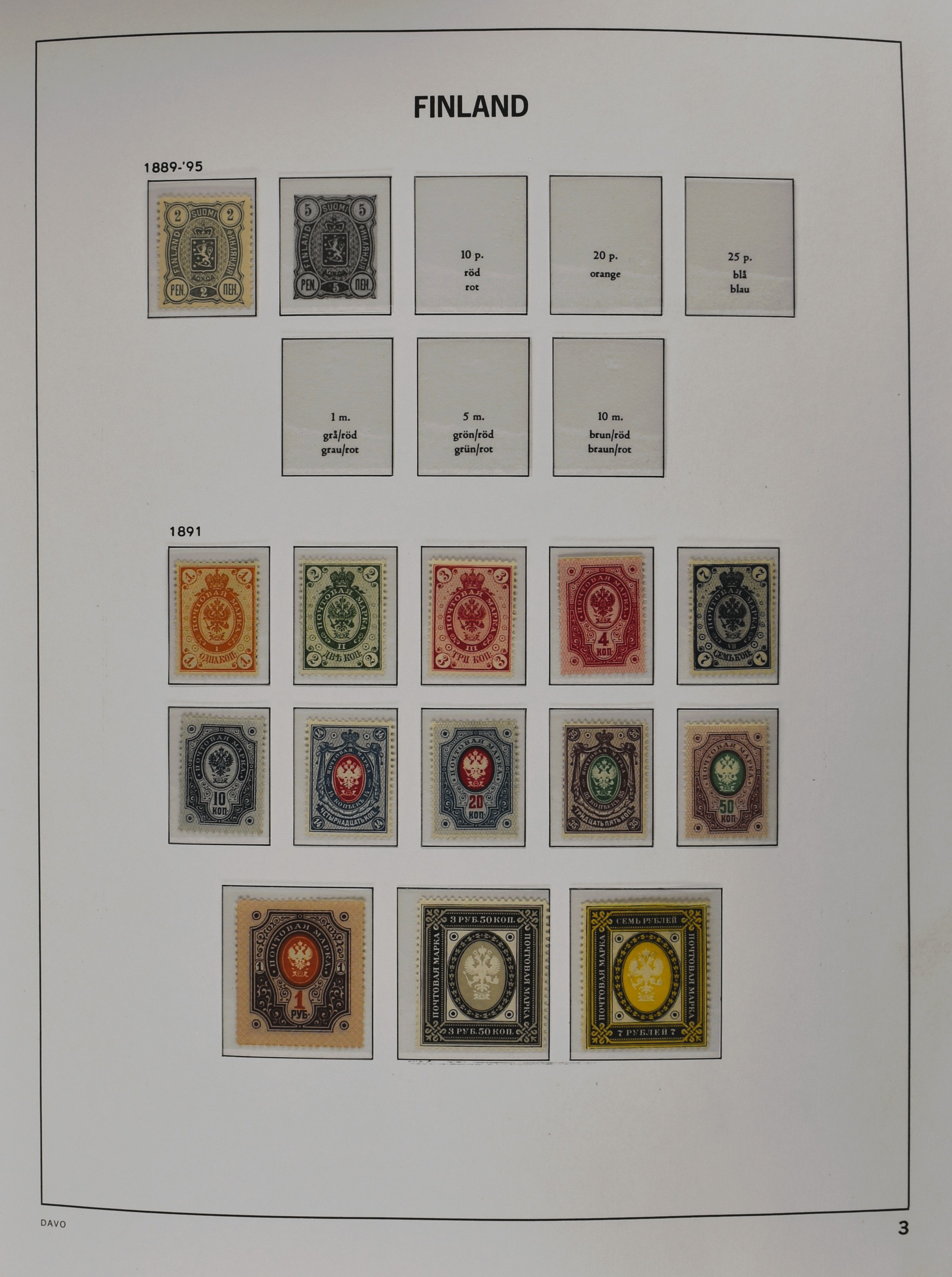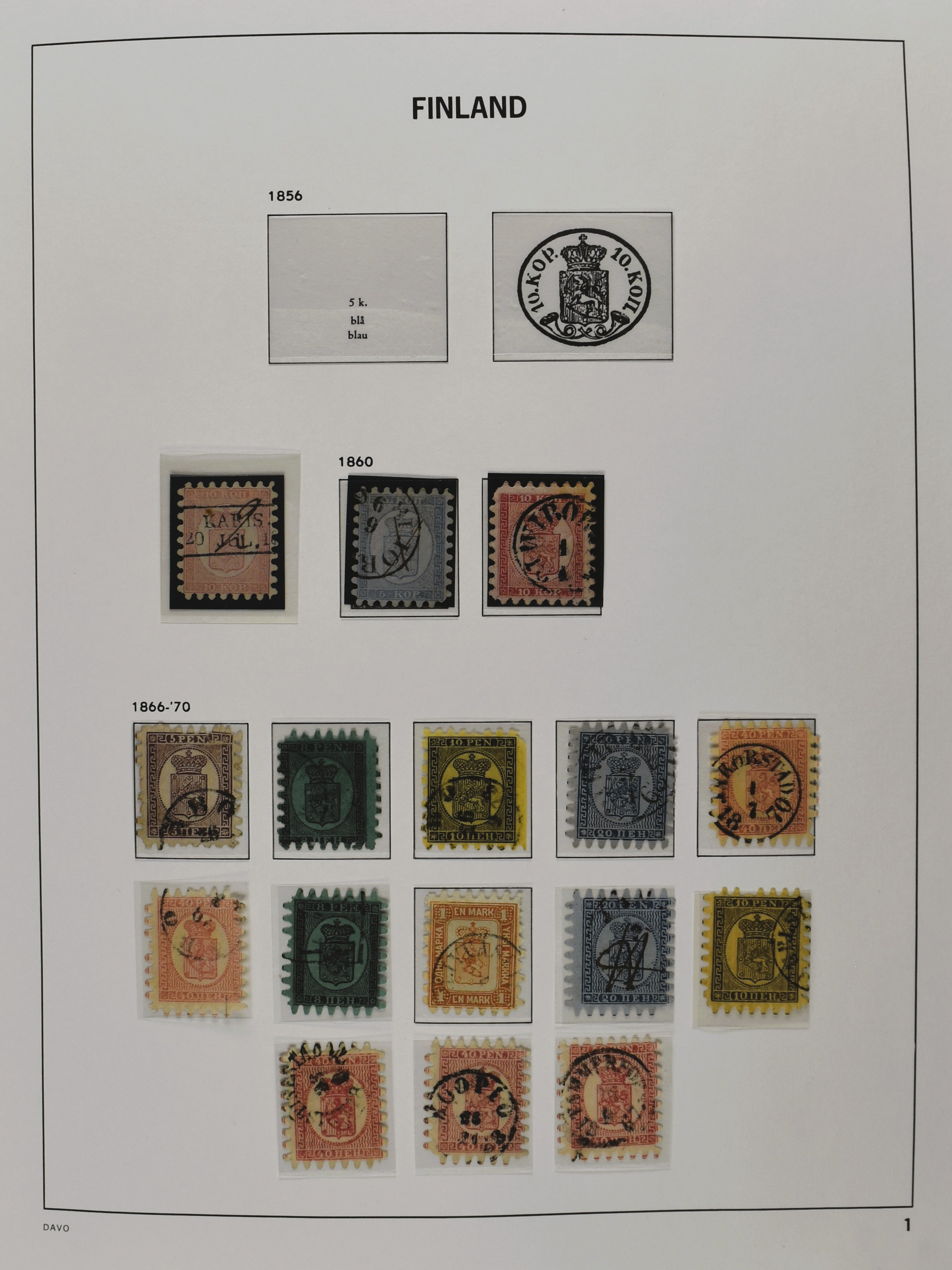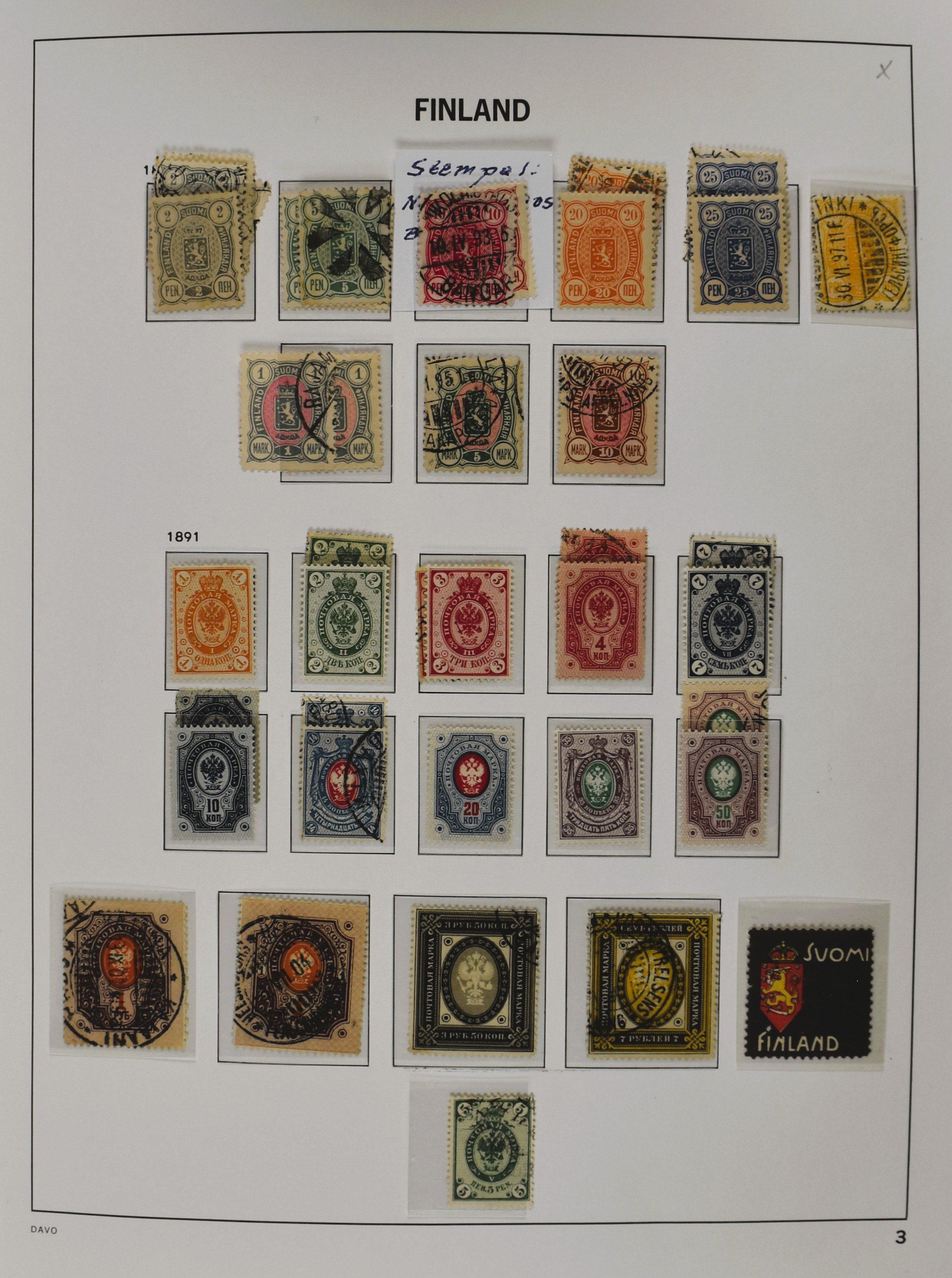 FINLAND 1860-2010, o/*/** collection in 3 Davo albums often collected used and mint/unmounted mint with several good numbers and sets a.o.: starting with a nice part serpentines as well as Mi. 33/34 (2), 35/47, 161, Mil. 8/9 etc. in