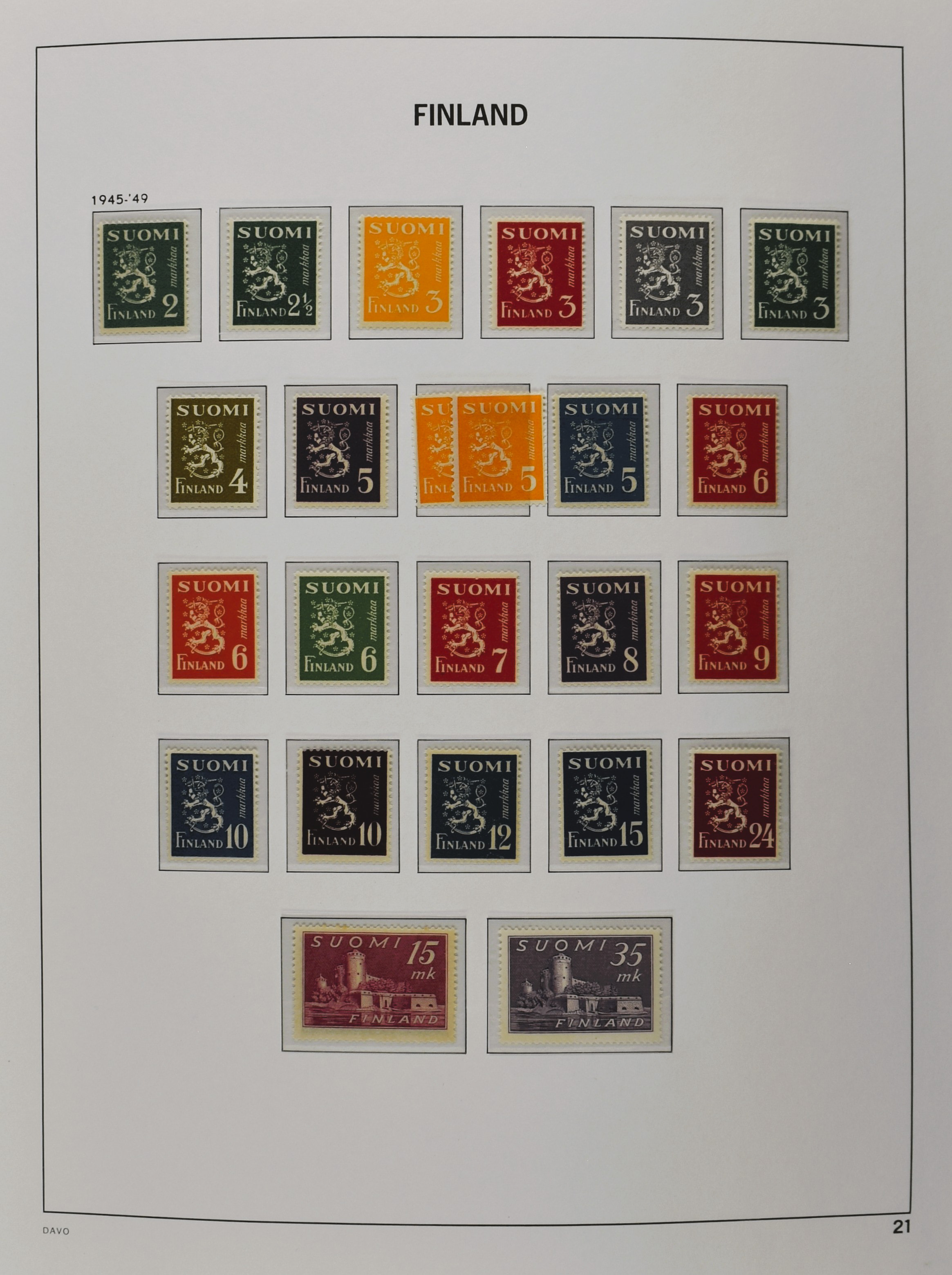 FINLAND 1891-2012, */** in 3 Davo albums with some better material f.e.: Mi. 35/47 and 161**, in the modern part including the booklets, blocks, miniature sheets and self-adhesives (Image) (Image2)