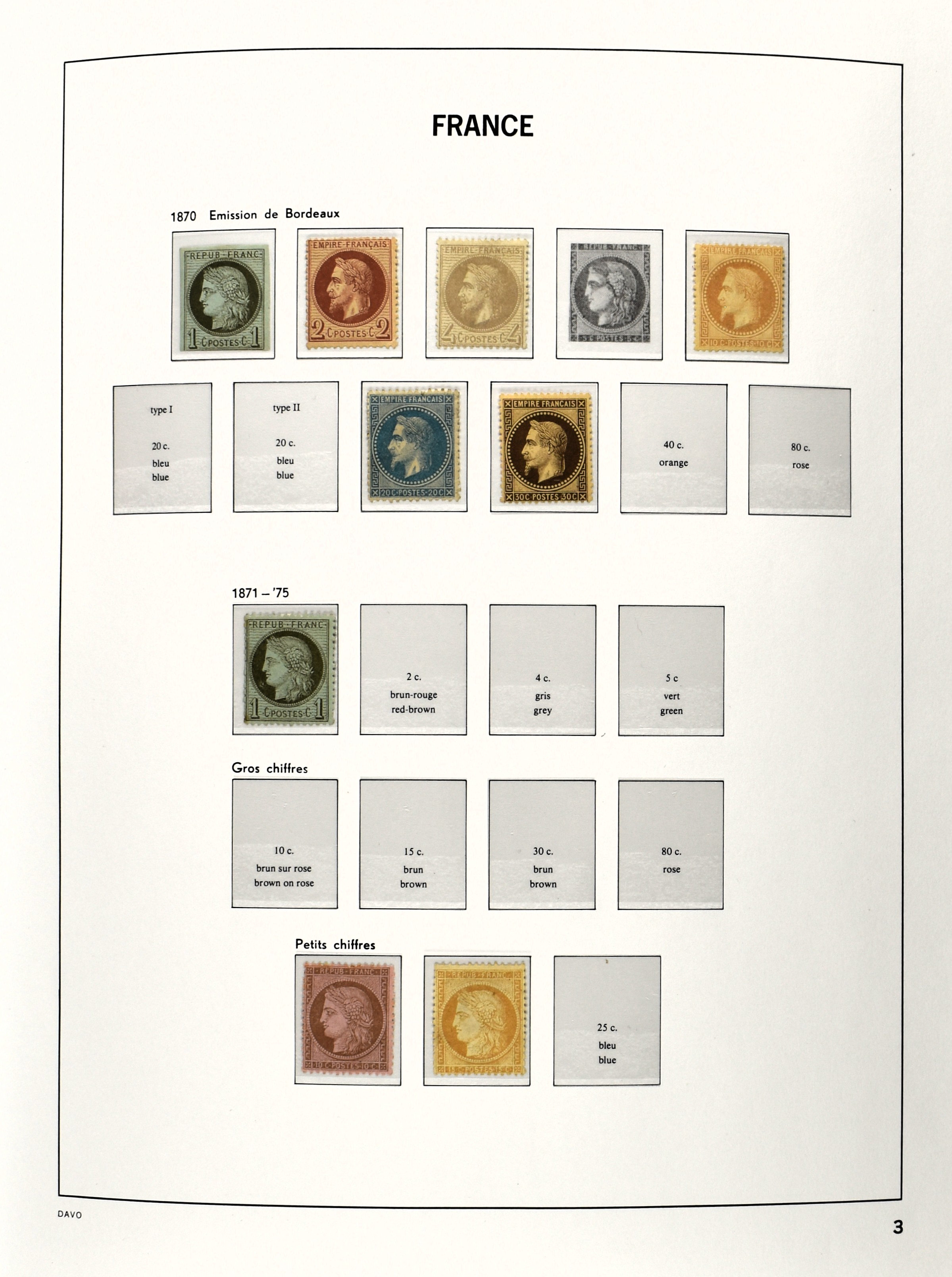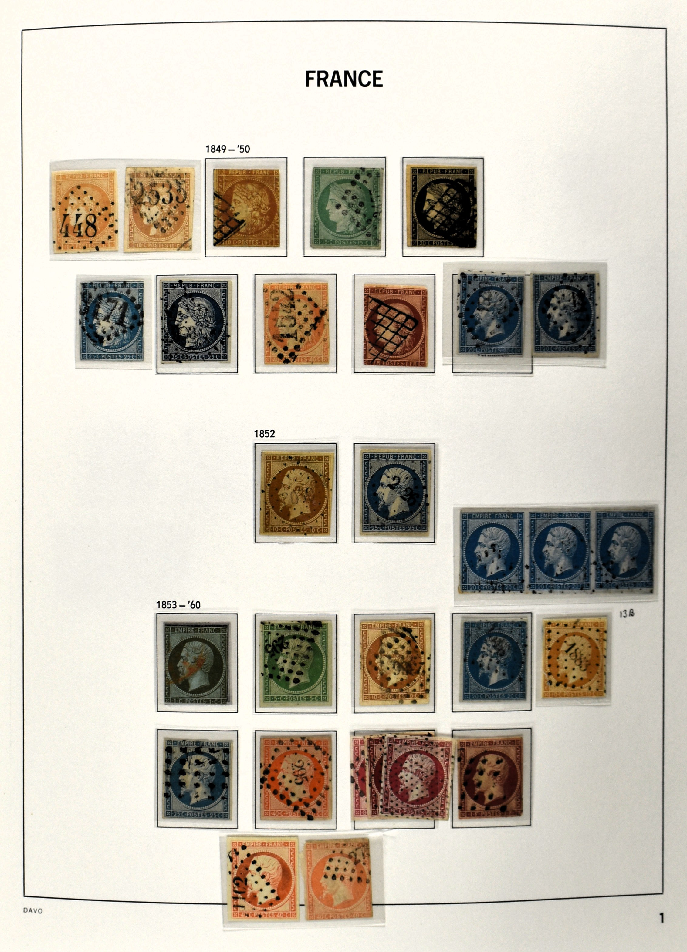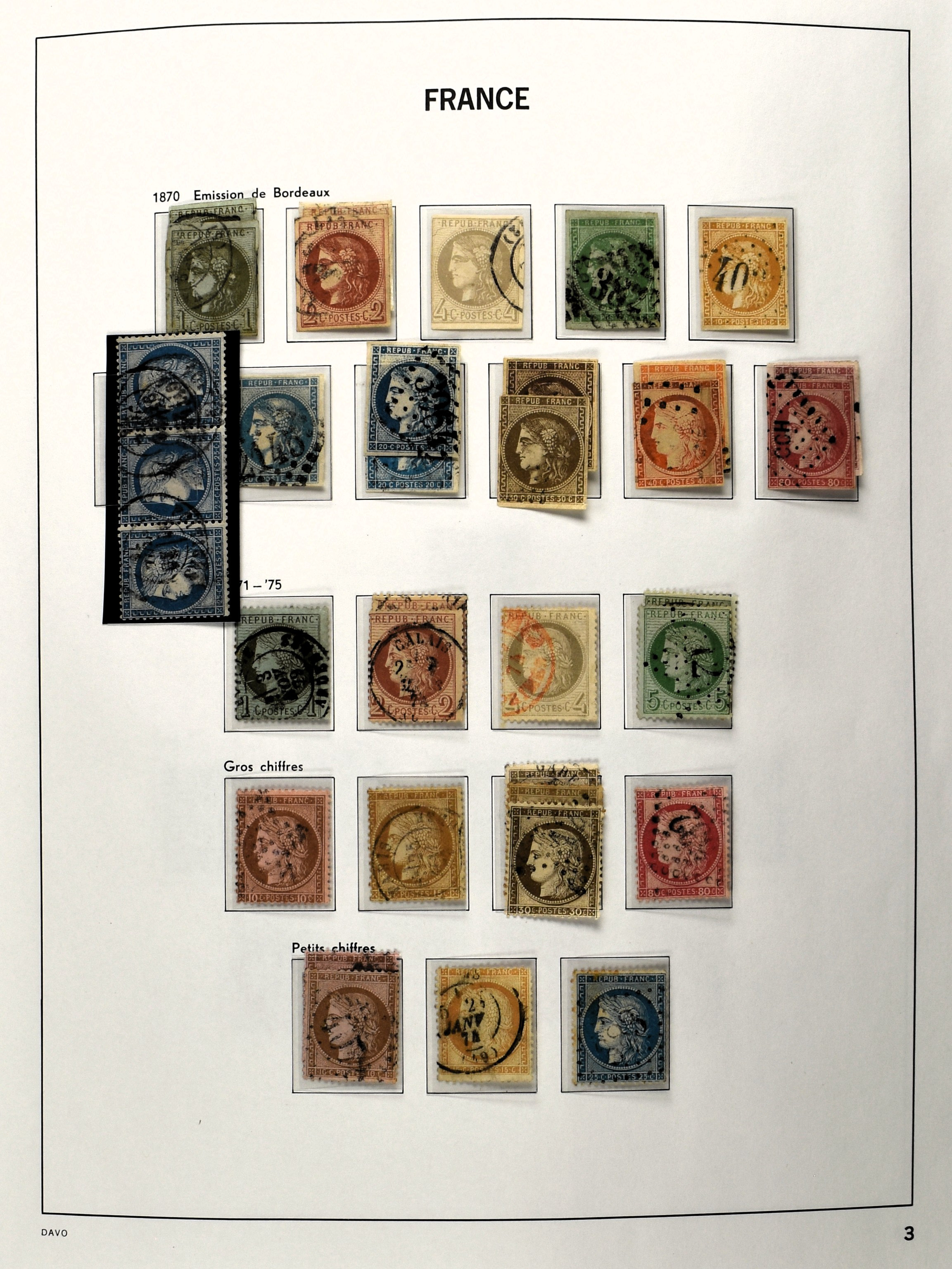 FRANCE 1849-2009, used collection in 3 Davo albums with despite the mixed quality several better numbers available with a nice section Ceres and Napoleon III, blocks, miniature sheets and back of the book (Image) (Image2)