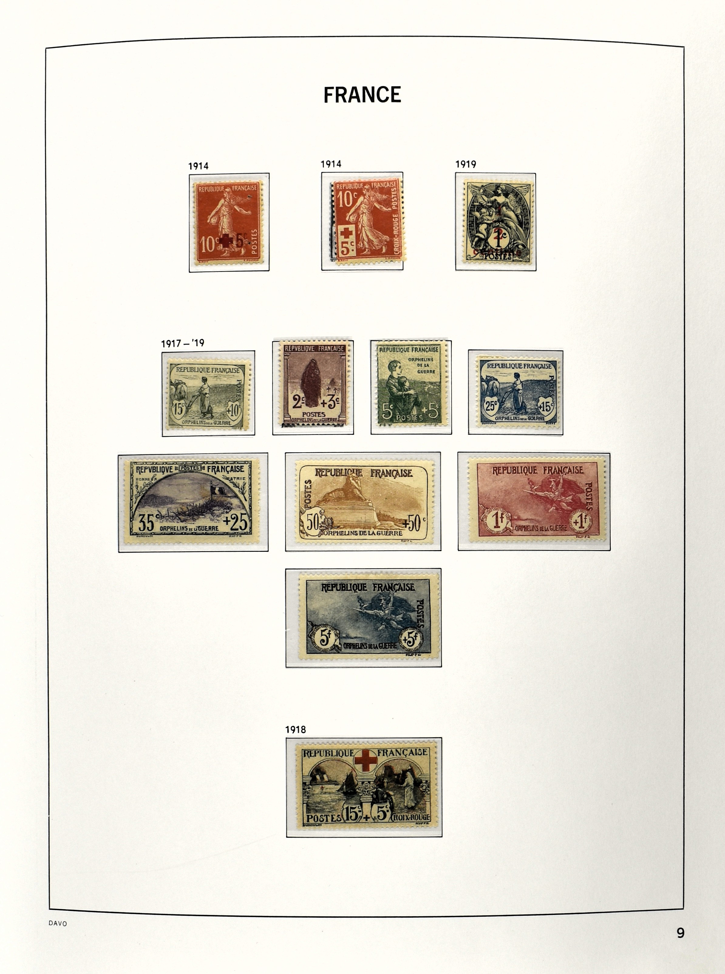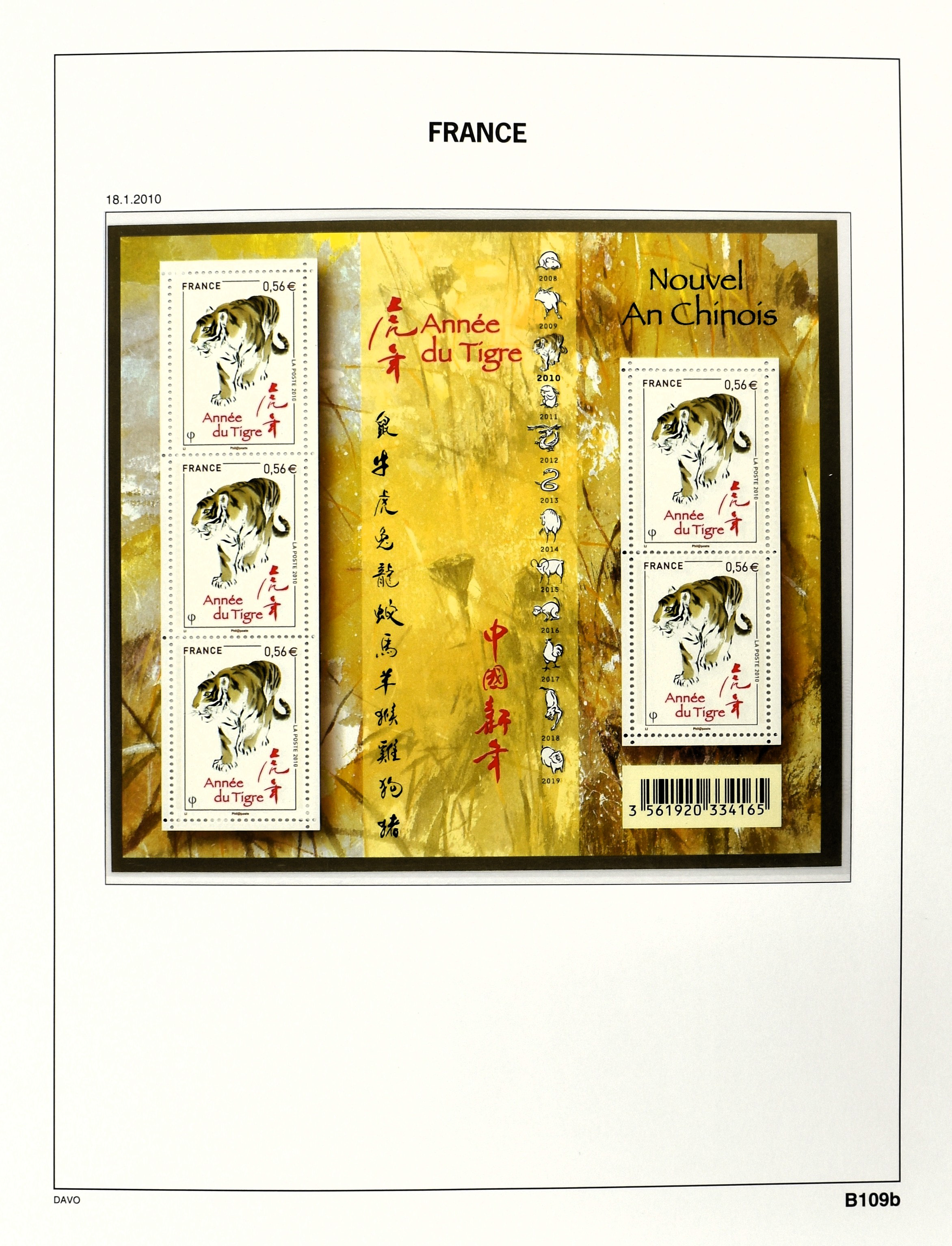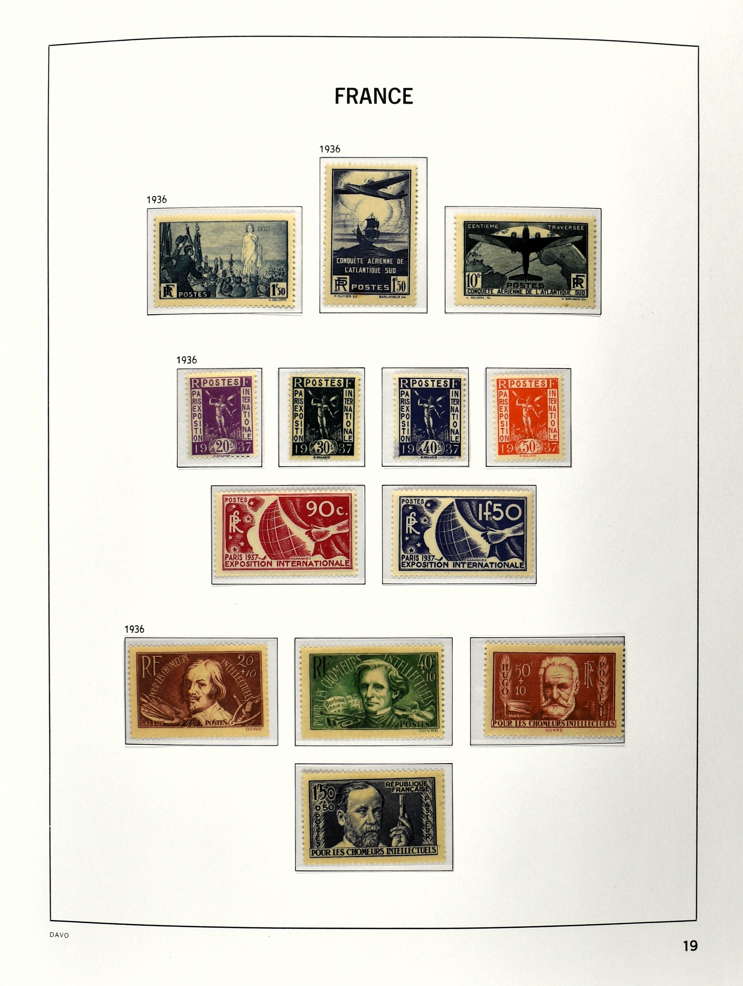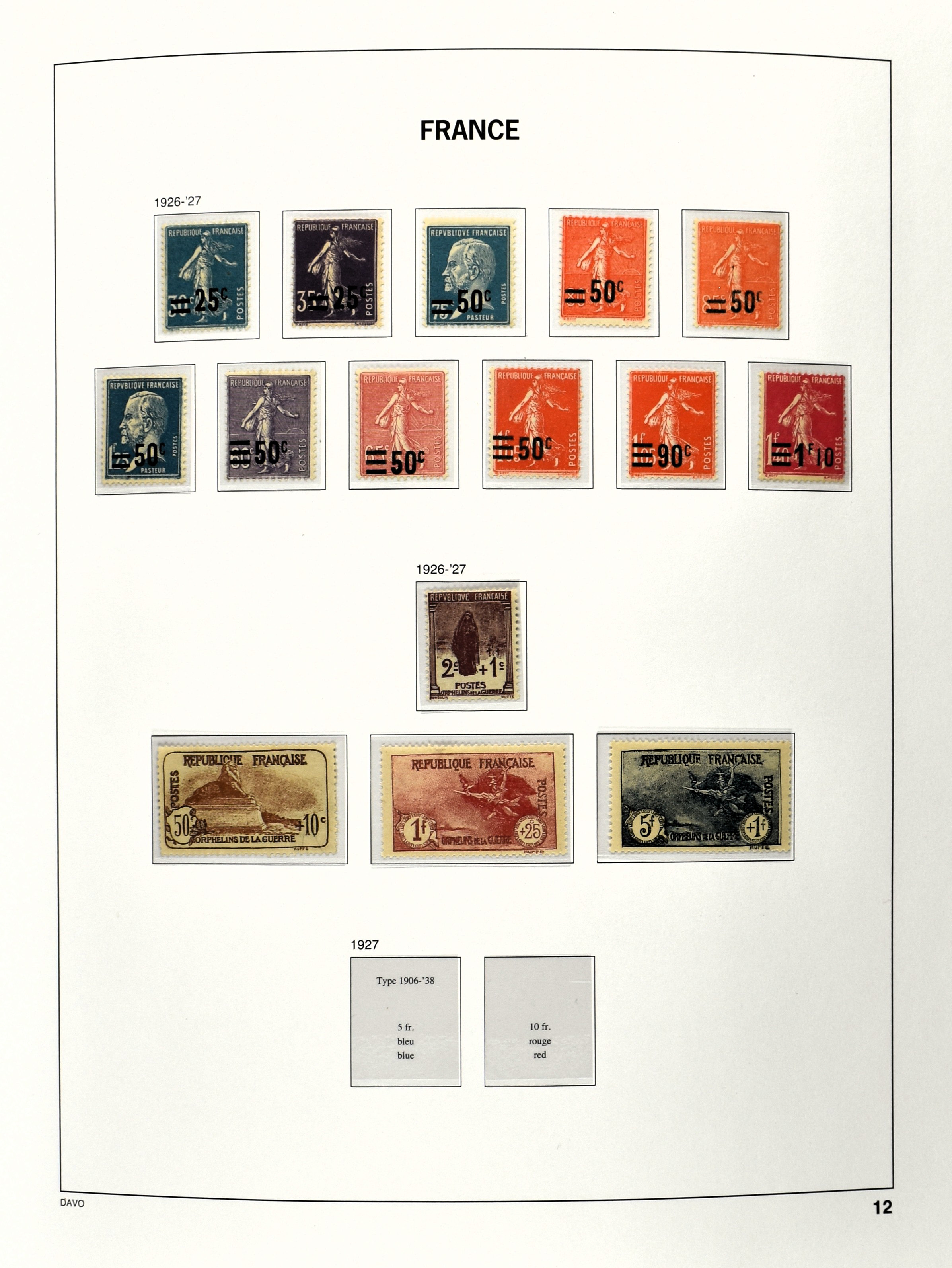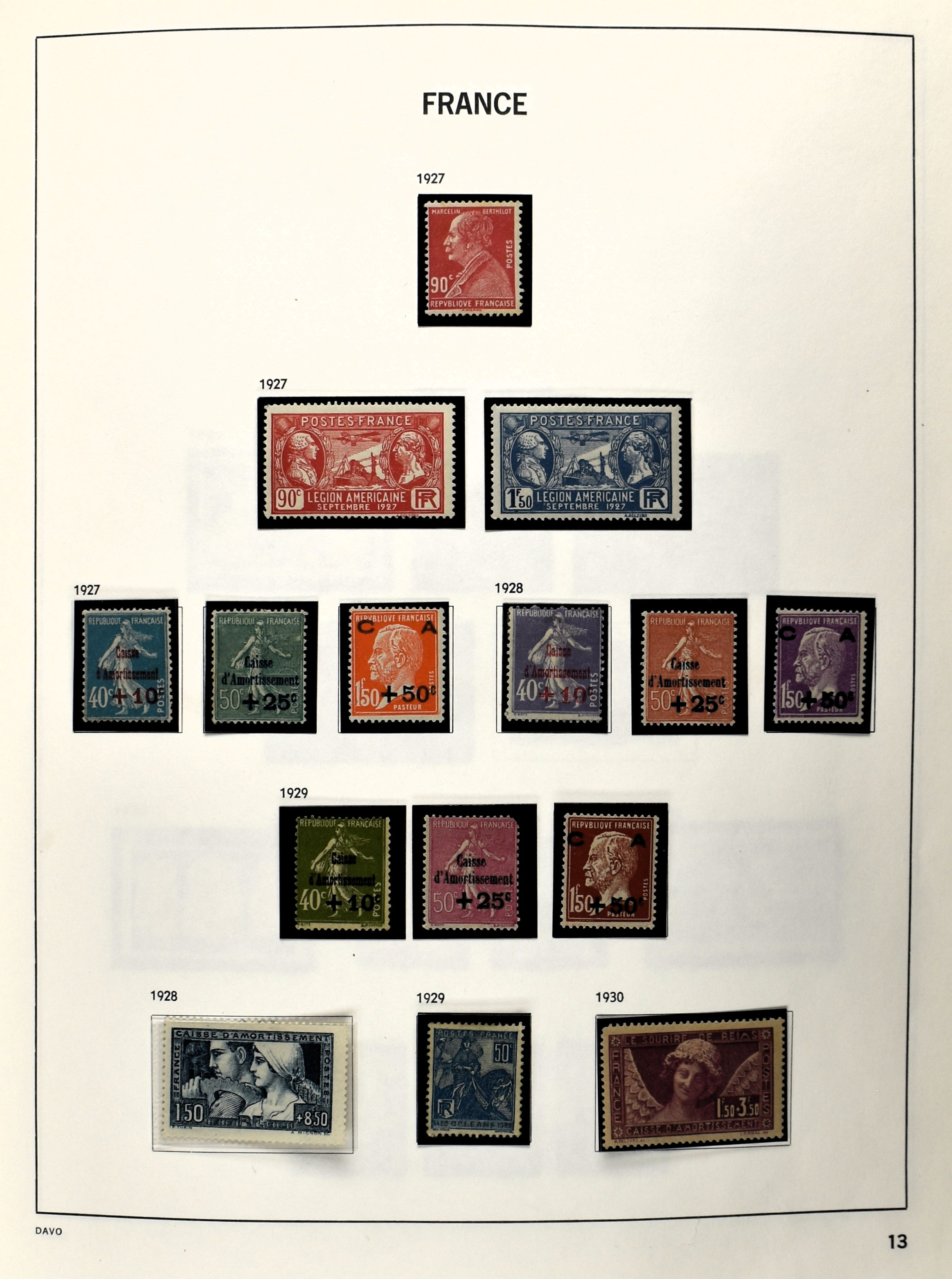 FRANCE 1877-2009, */** collection in 5 Davo albums with several good numbers and sets a.o.: Yv 249/51, 252, 253/55, 256, block 3, A29, A30/33 and several more, the modern part including, blocks, m/s, s/s and face value (Image) (Image2)