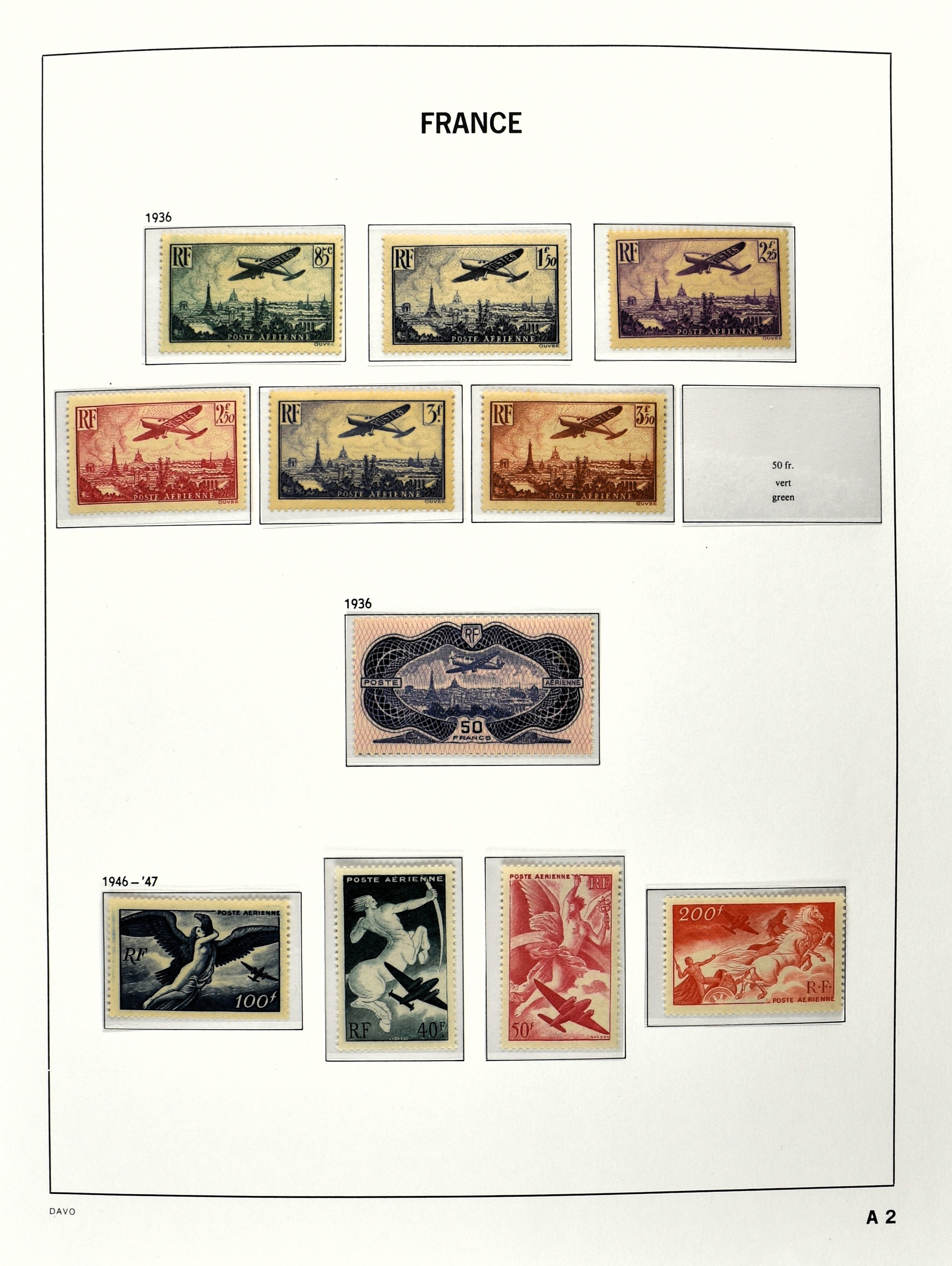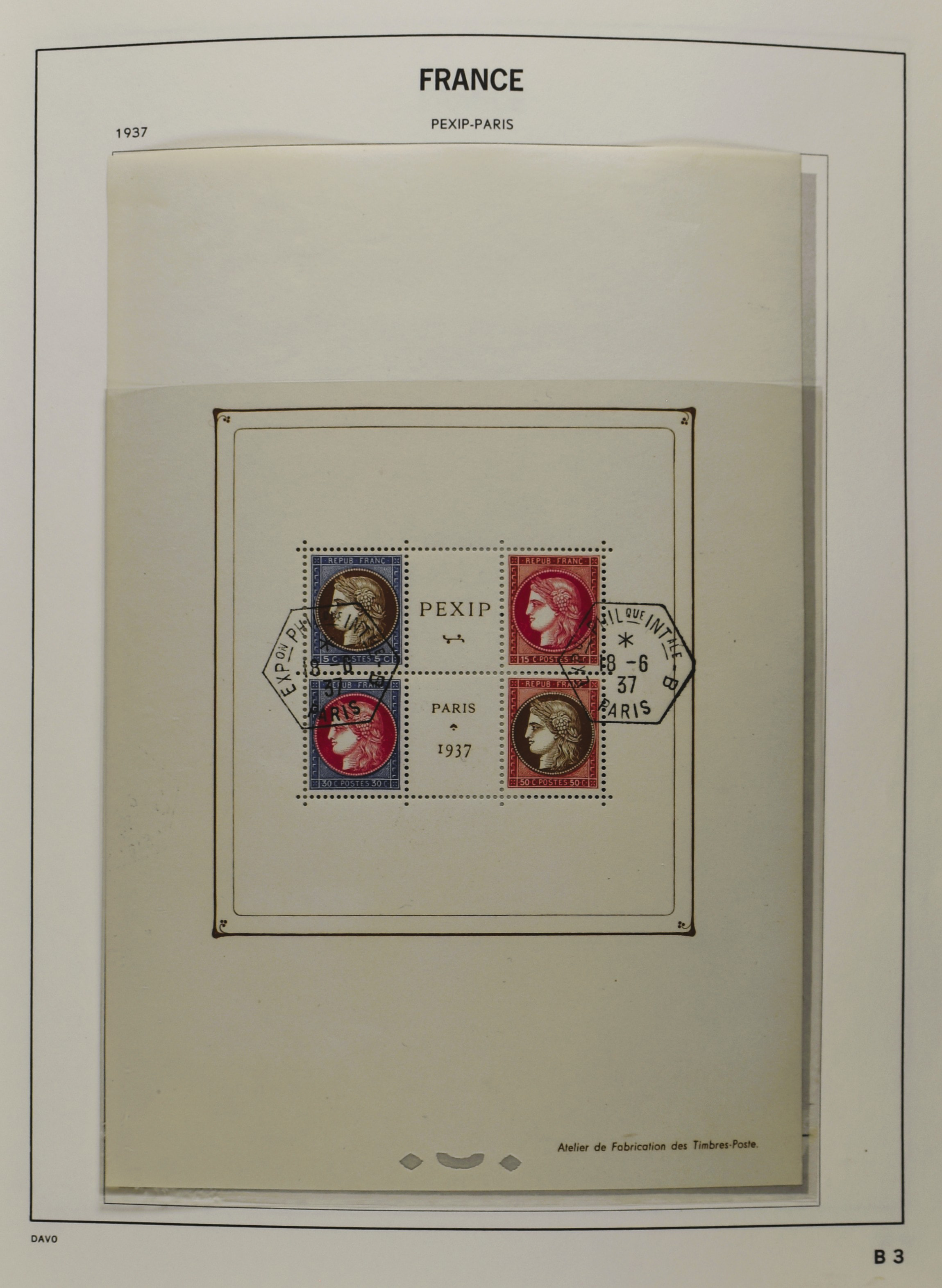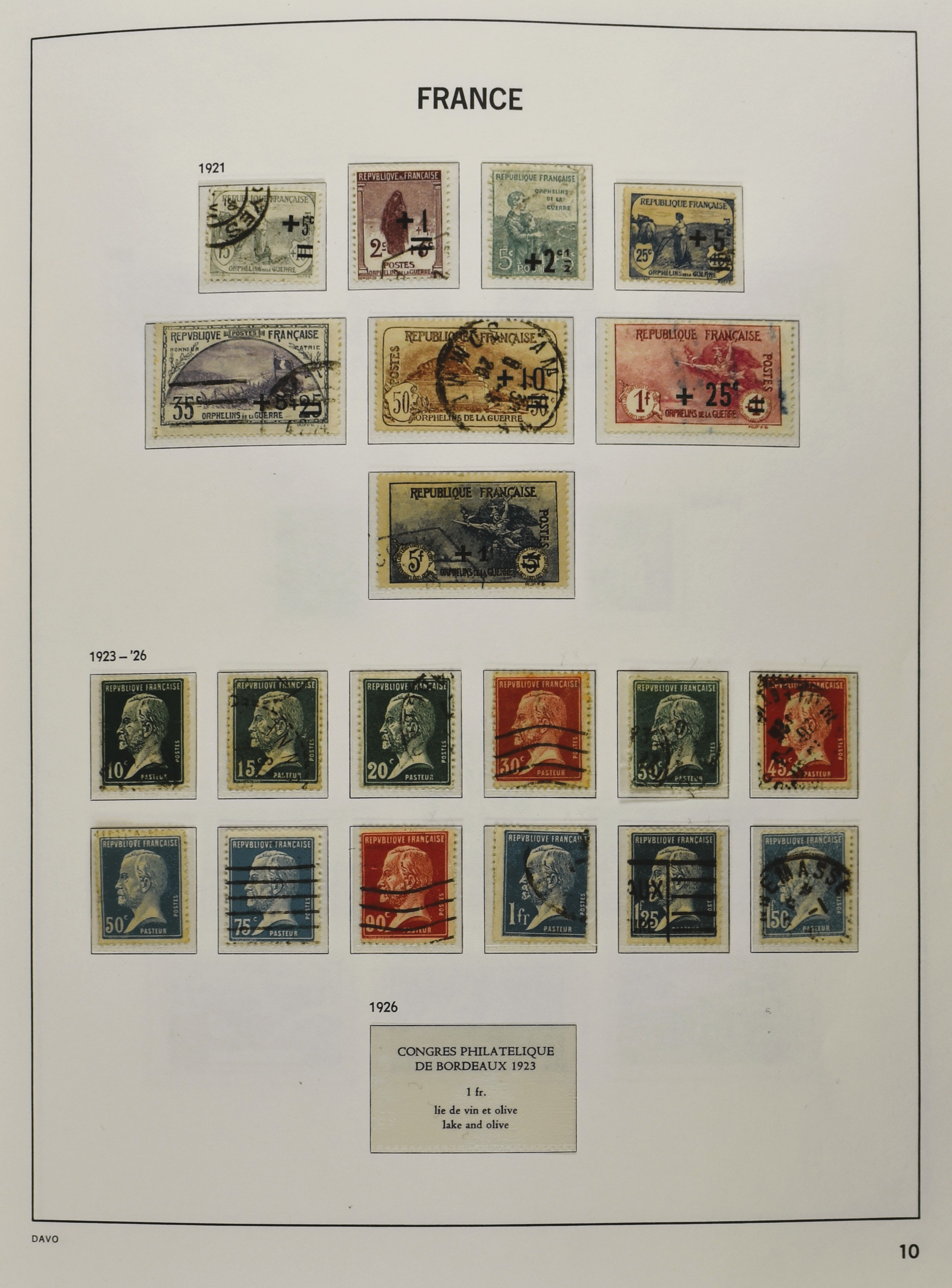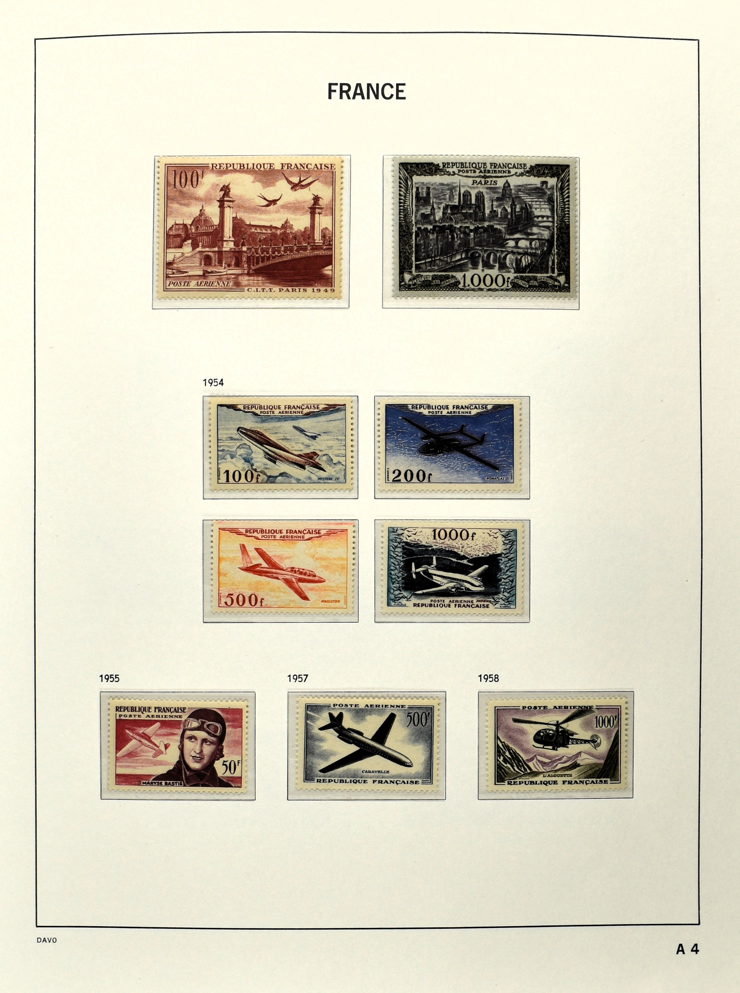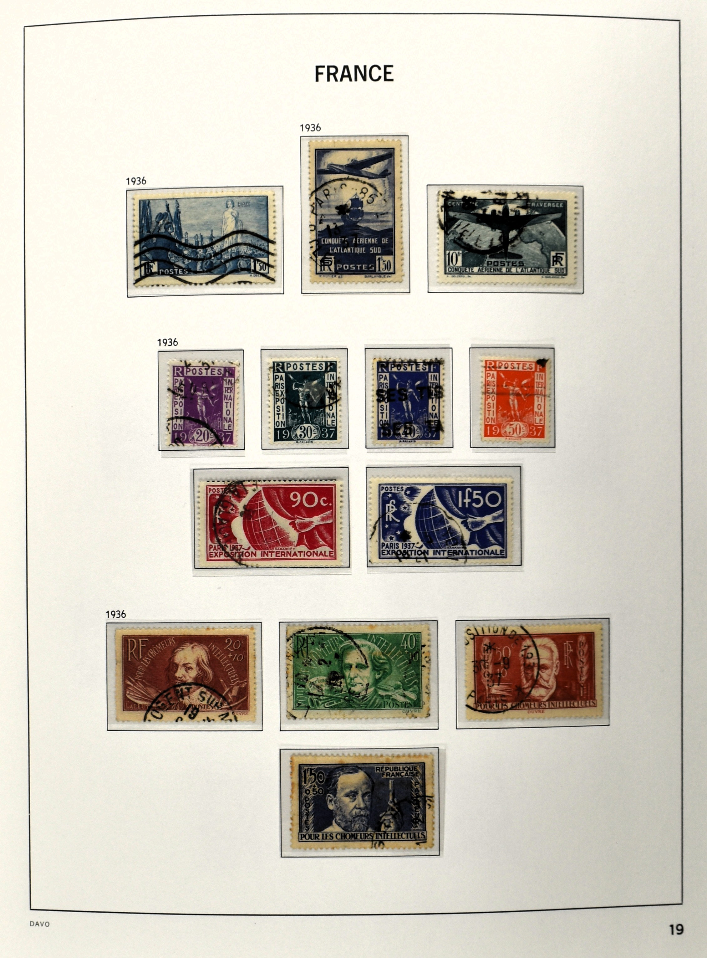 FRANCE 1877-2009, */** collection in 5 Davo albums with several good numbers and sets a.o.: Yv 249/51, 252, 253/55, 256, block 3, A29, A30/33 and several more, the modern part including, blocks, m/s, s/s and face value (Image) (Image2)