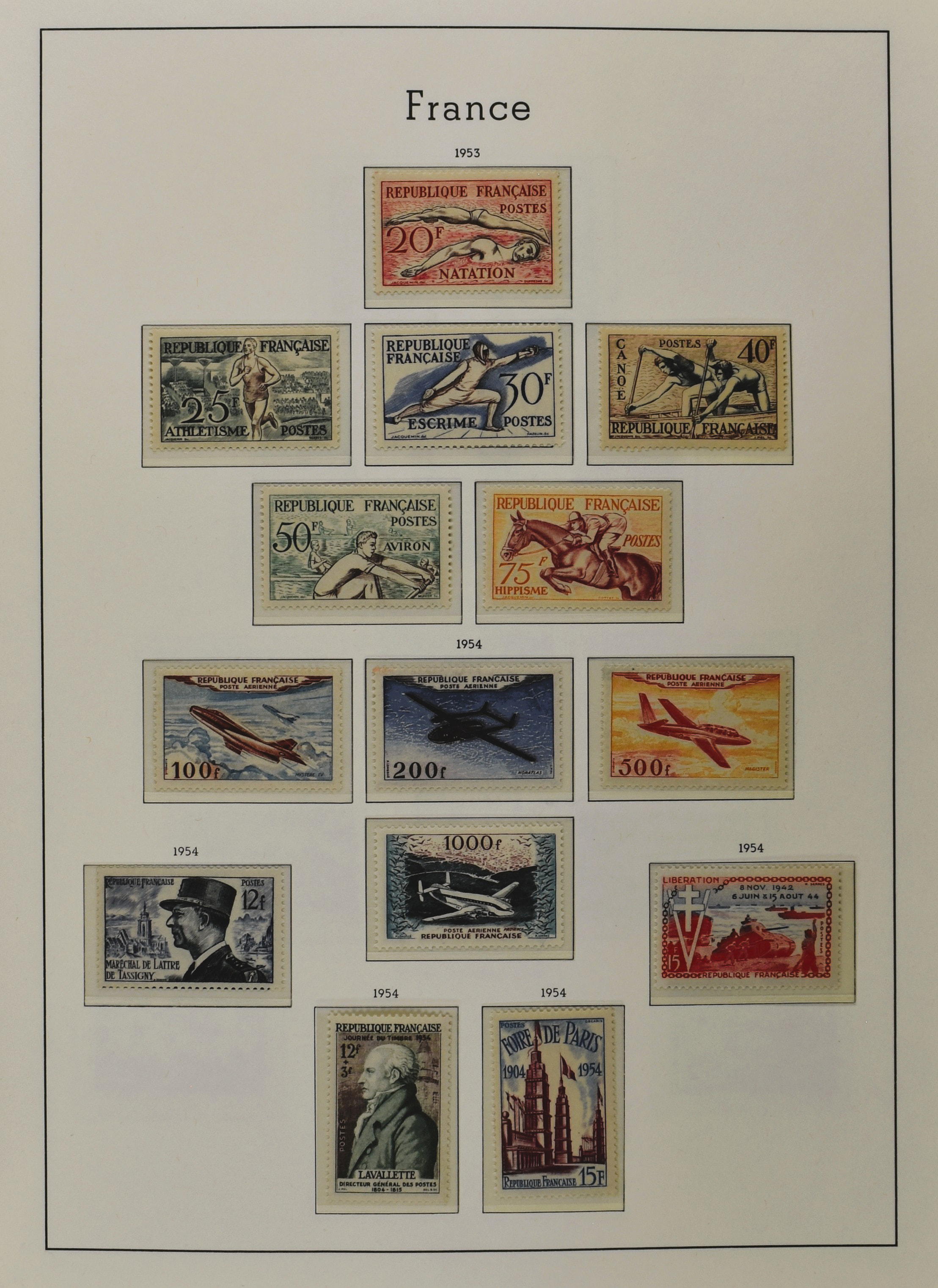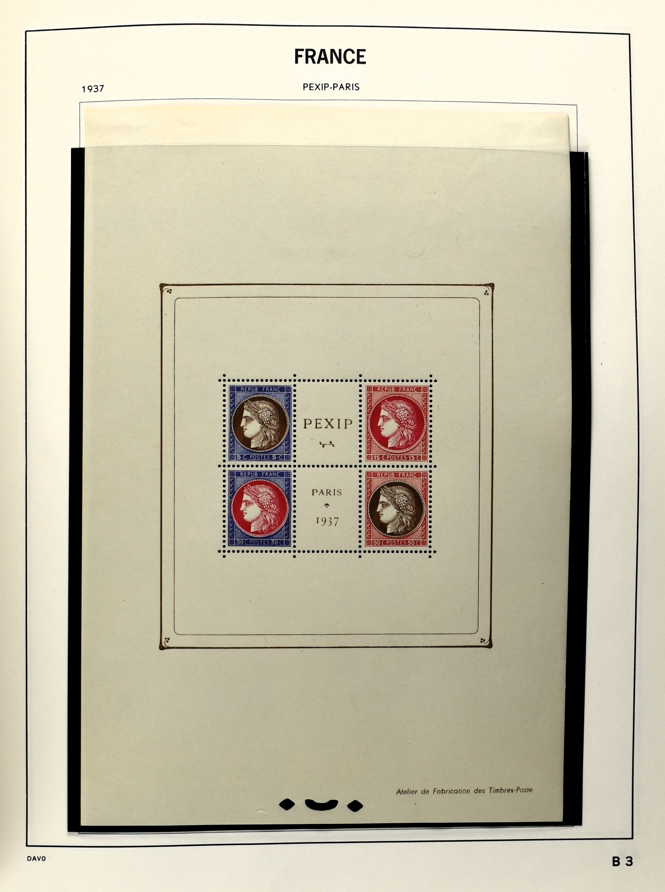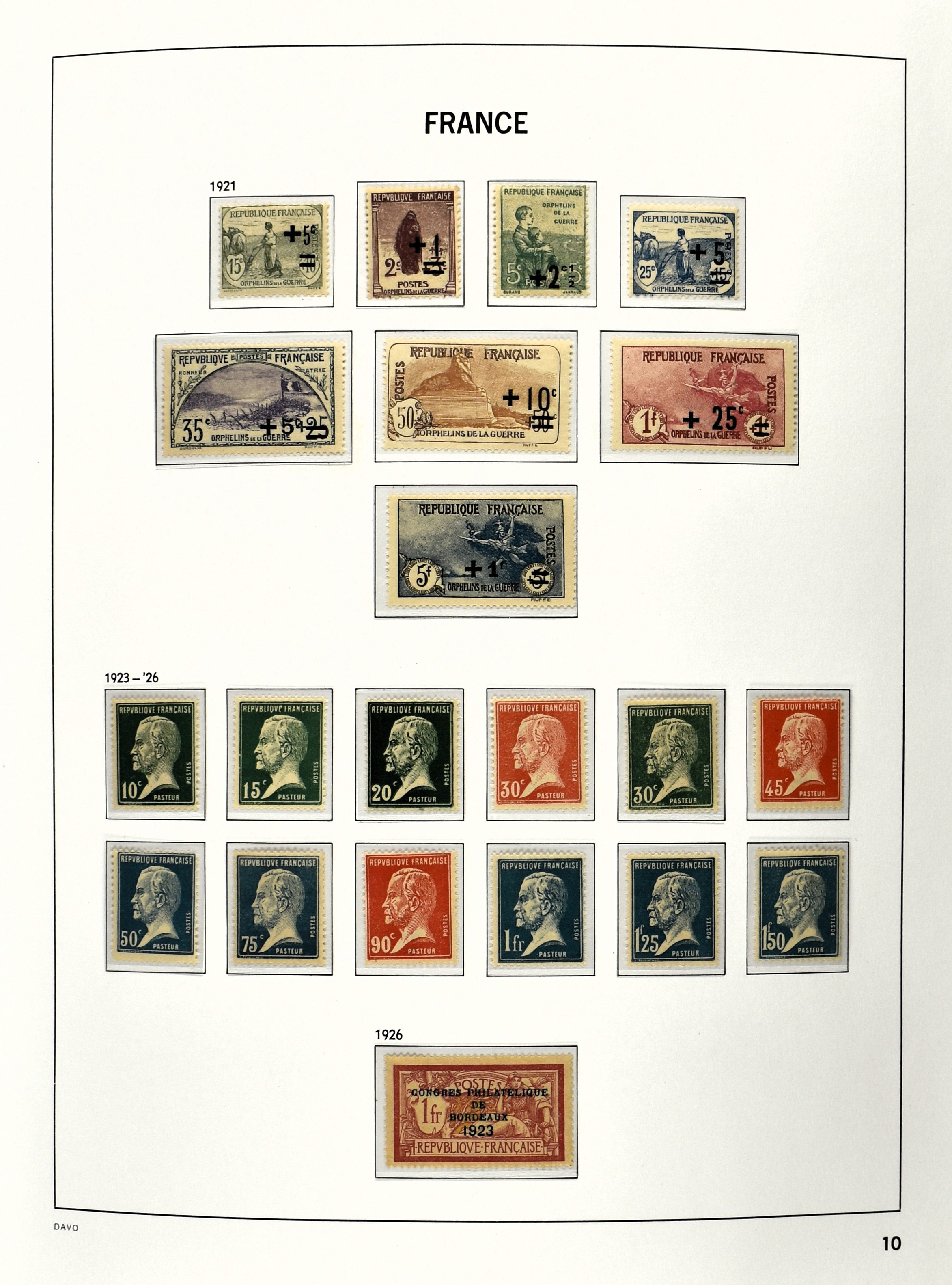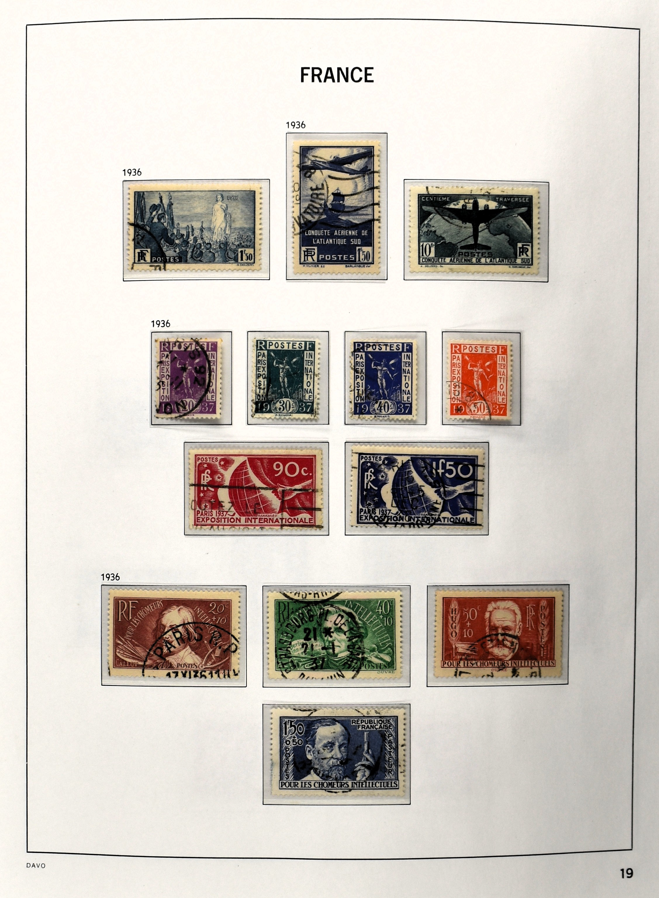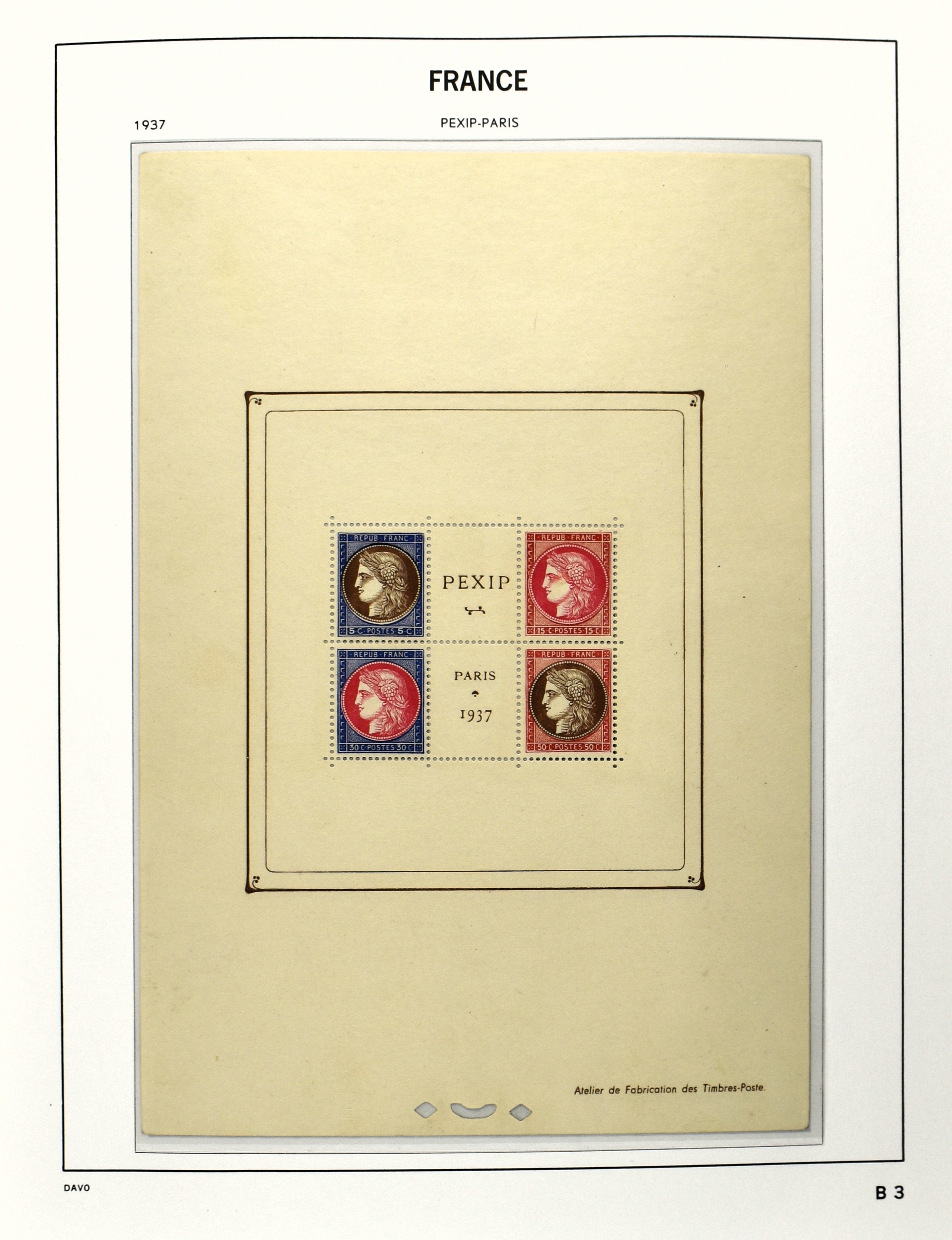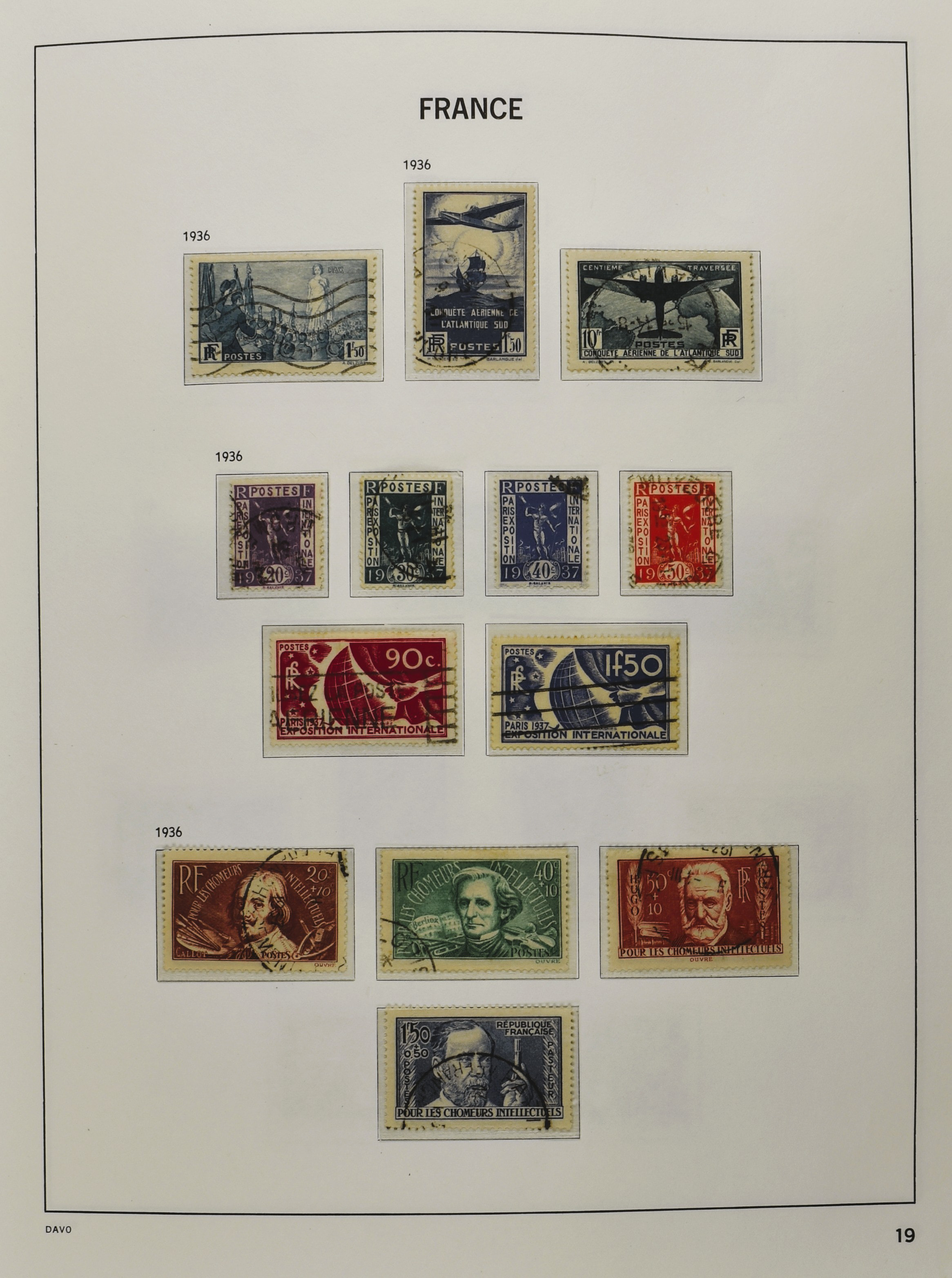 FRANCE 1877-2009, */** collection in 5 Davo albums with several good numbers and sets a.o.: Yv 249/51, 252, 253/55, 256, block 3, A29, A30/33 and several more, the modern part including, blocks, m/s, s/s and face value (Image) (Image2)