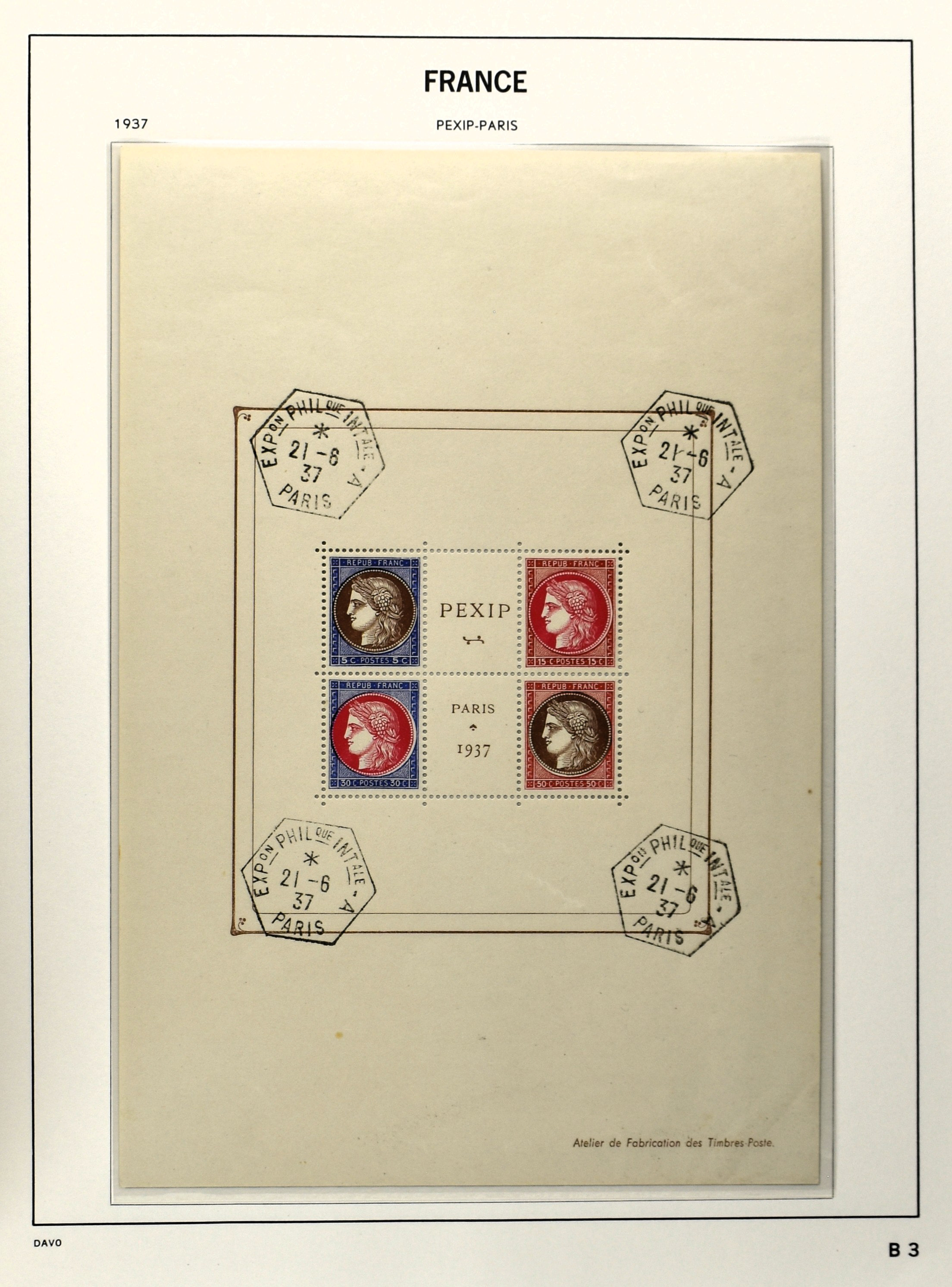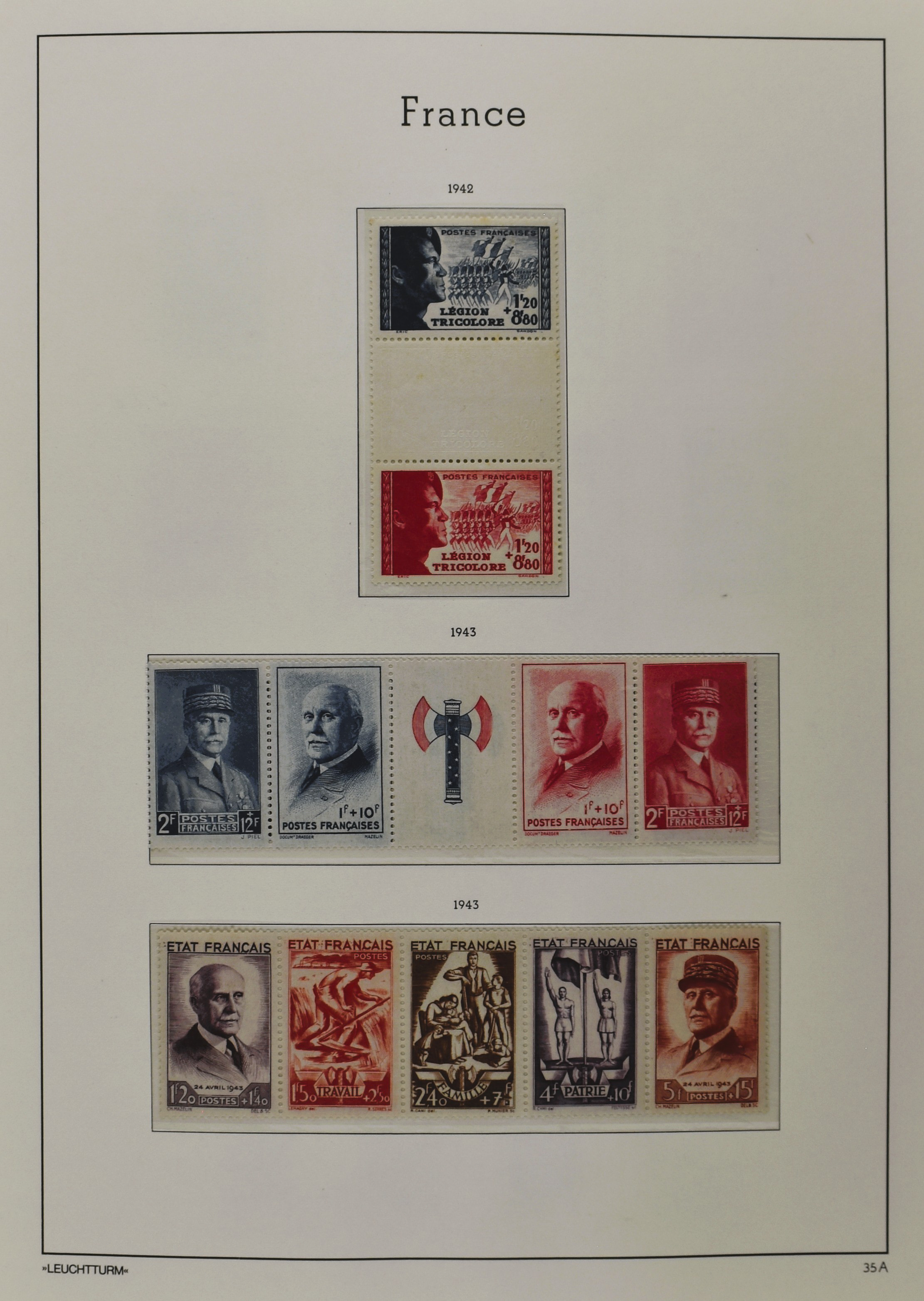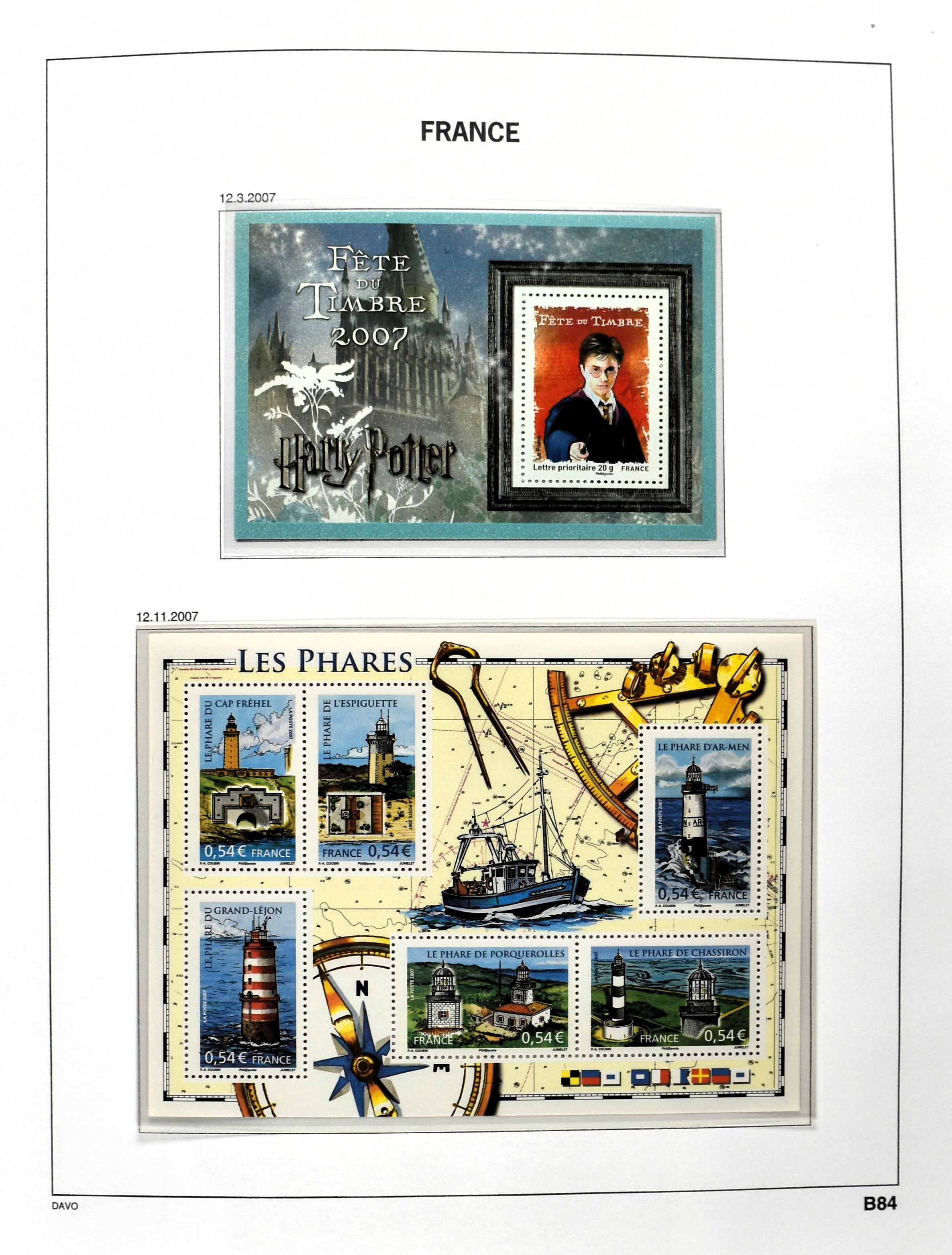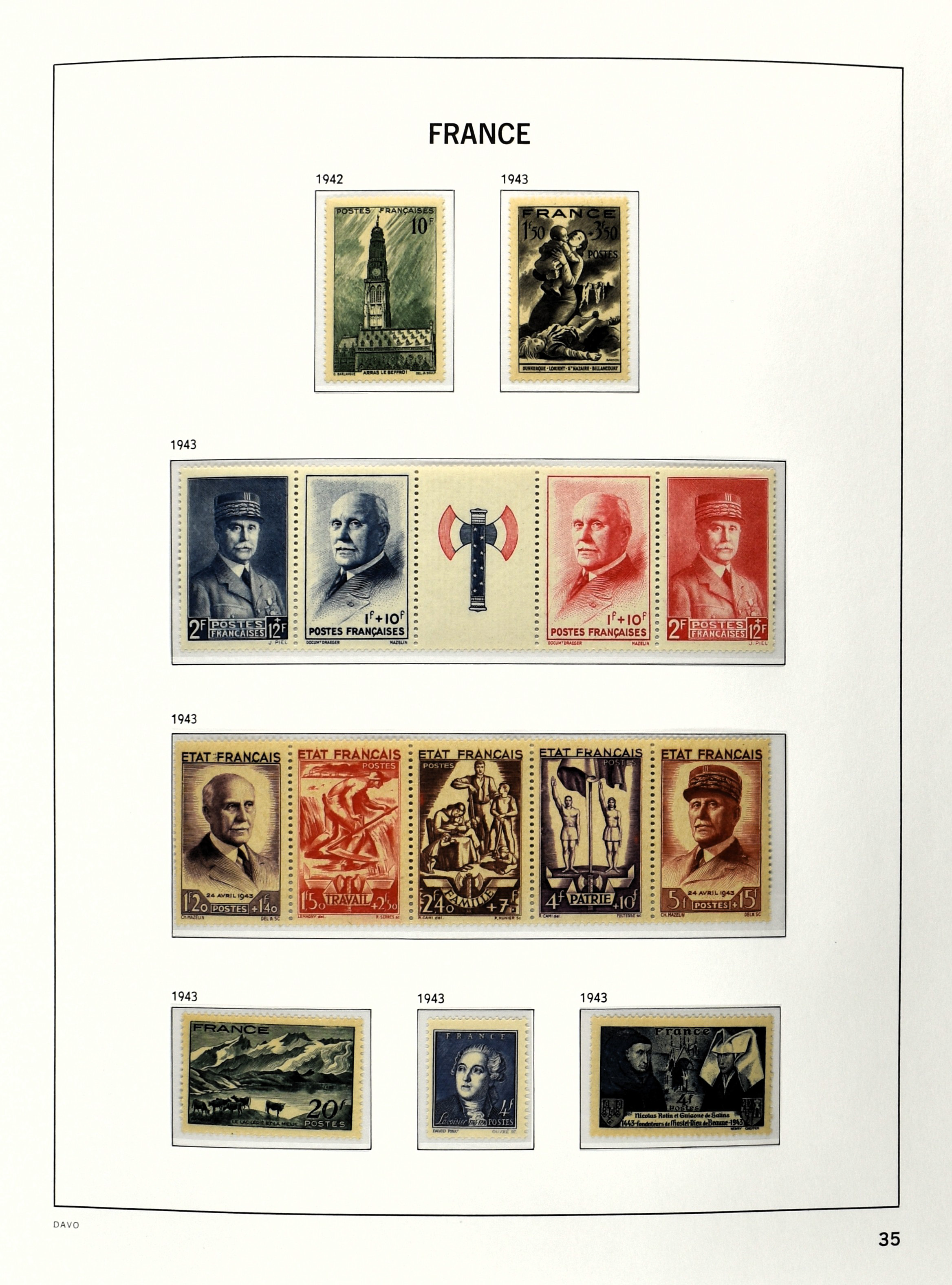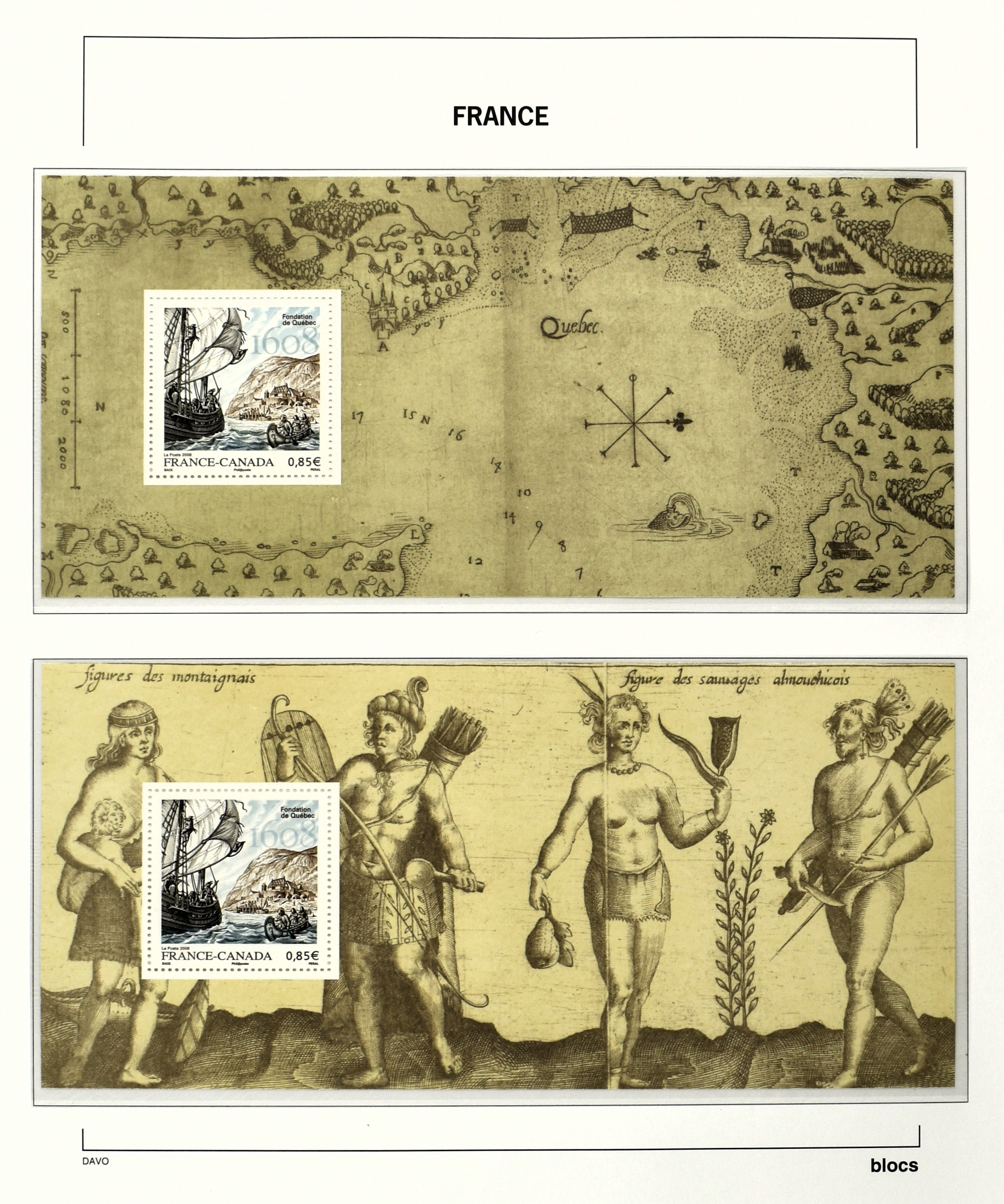 FRANCE 1877-2009, */** collection in 5 Davo albums with several good numbers and sets a.o.: Yv 249/51, 252, 253/55, 256, block 3, A29, A30/33 and several more, the modern part including, blocks, m/s, s/s and face value (Image) (Image2)