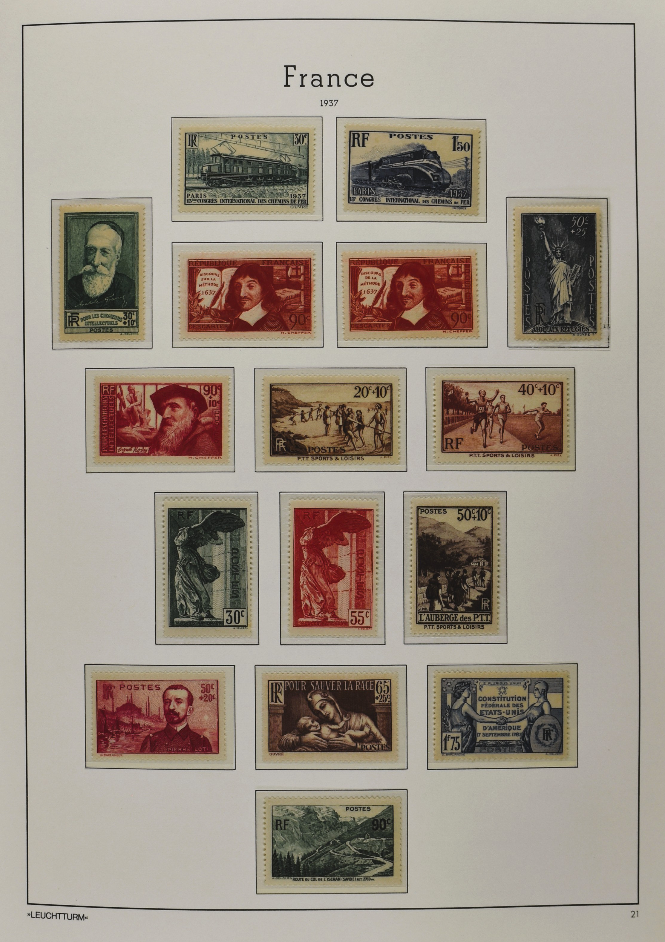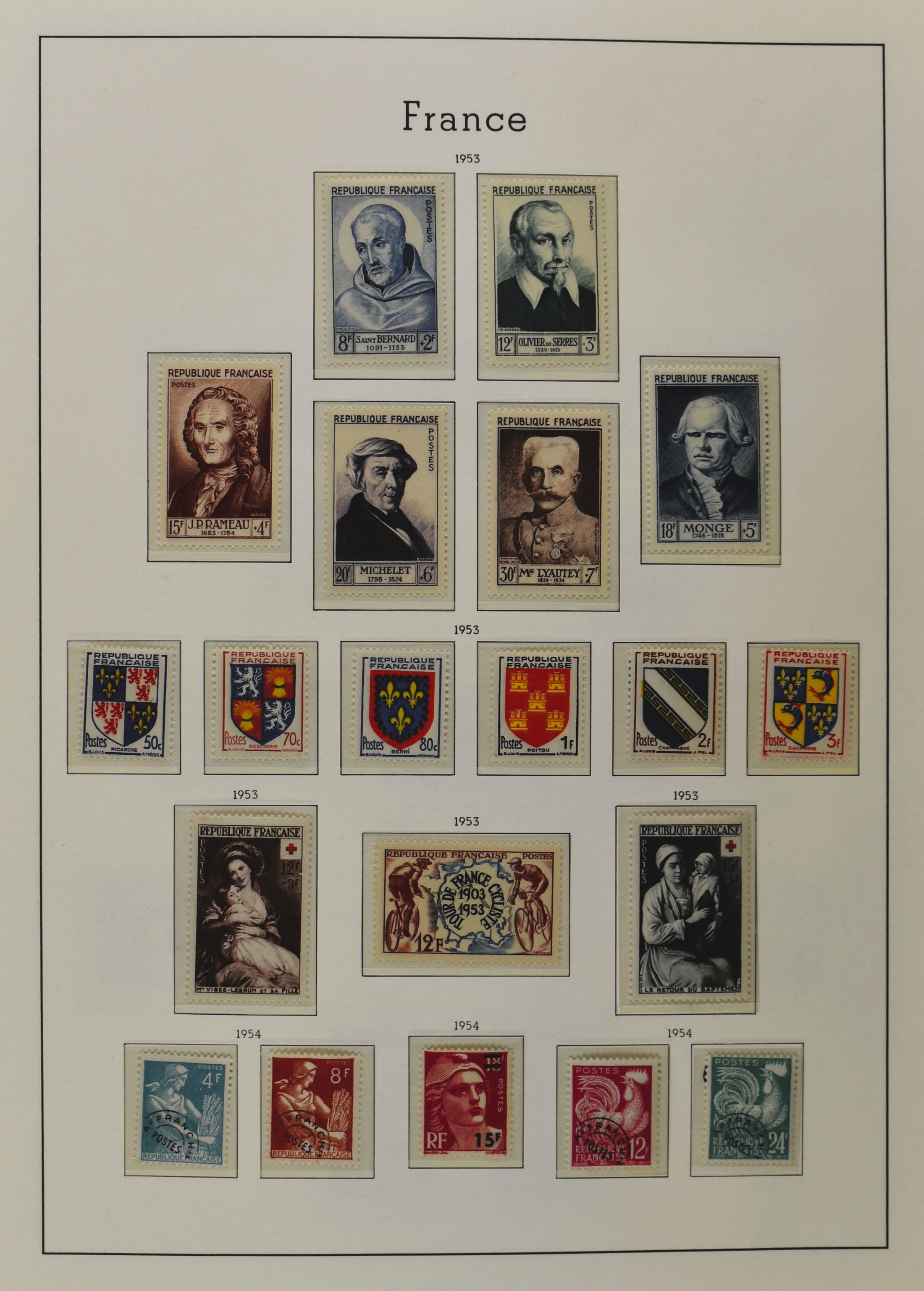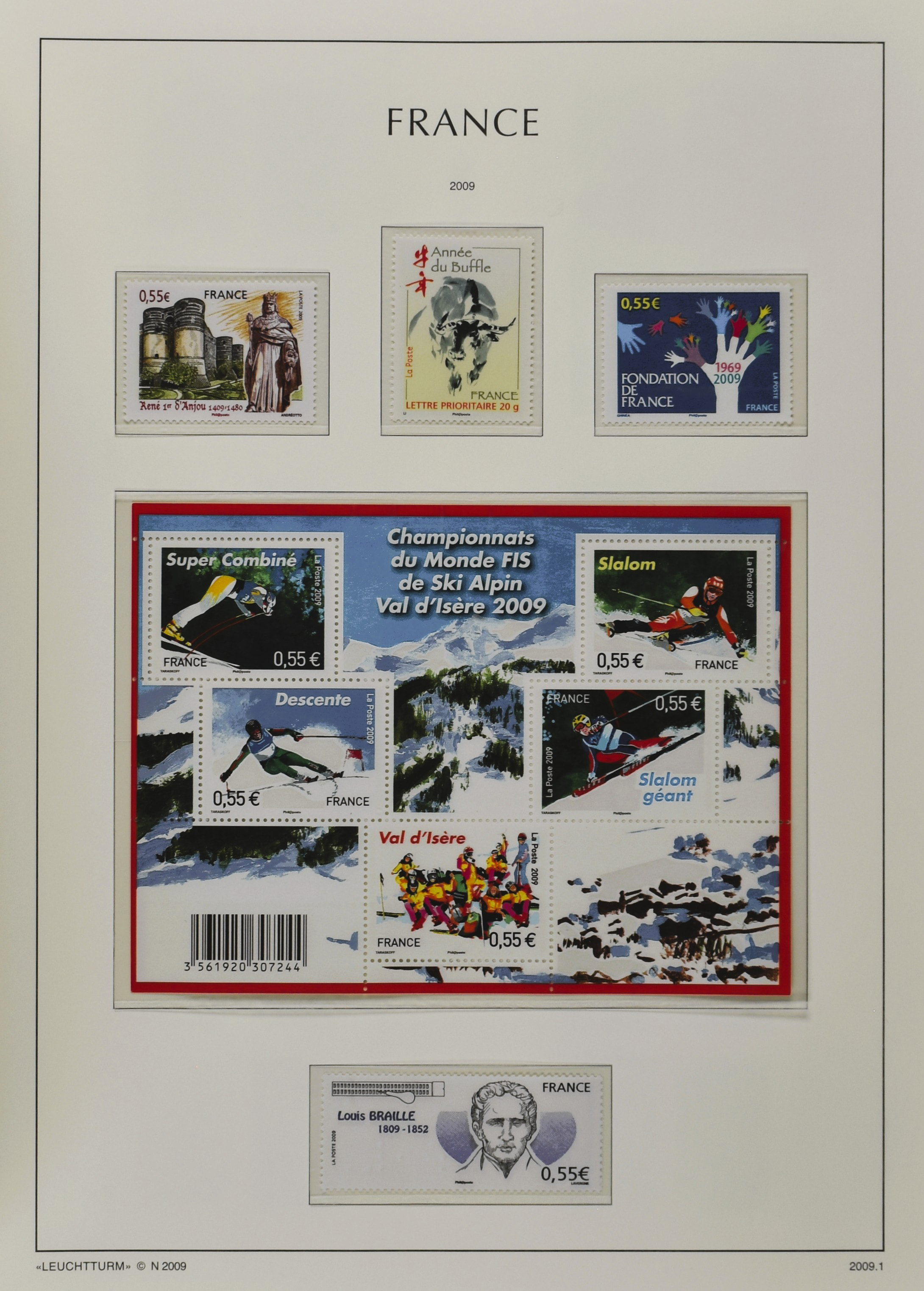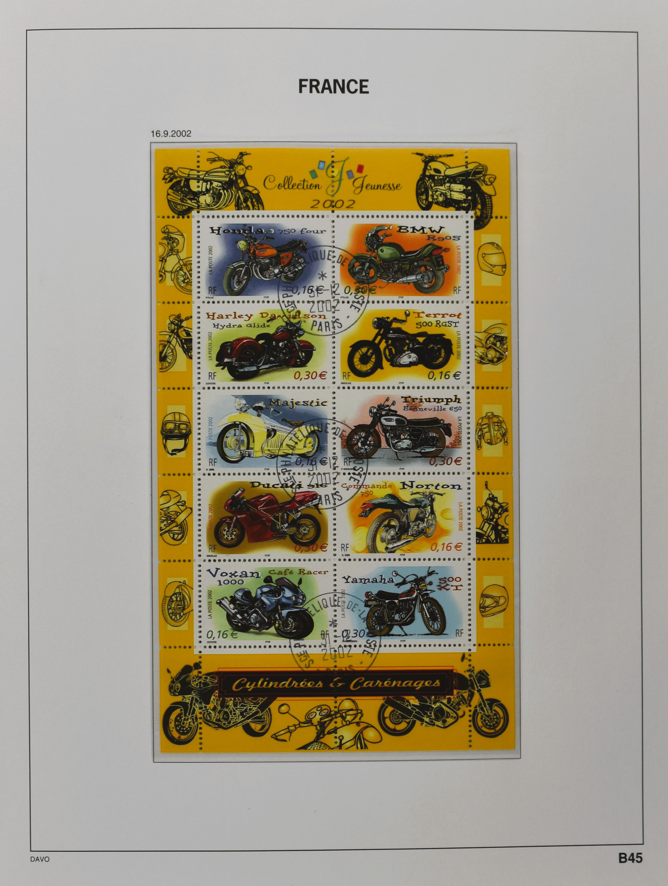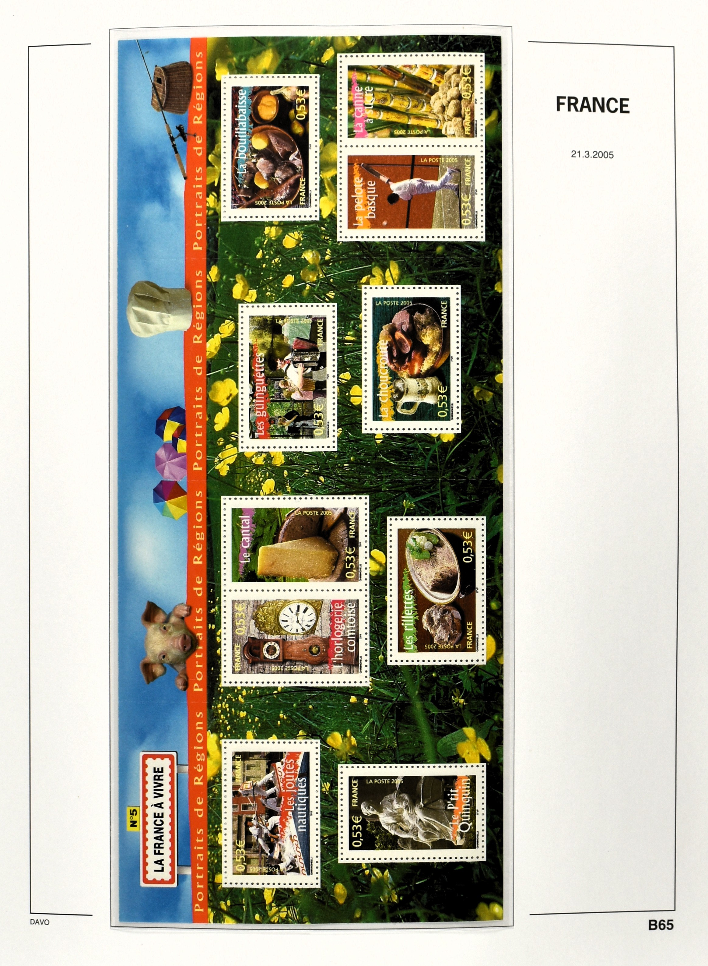 FRANCE 1877-2009, */** collection in 5 Davo albums with several good numbers and sets a.o.: Yv 249/51, 252, 253/55, 256, block 3, A29, A30/33 and several more, the modern part including, blocks, m/s, s/s and face value (Image) (Image2)