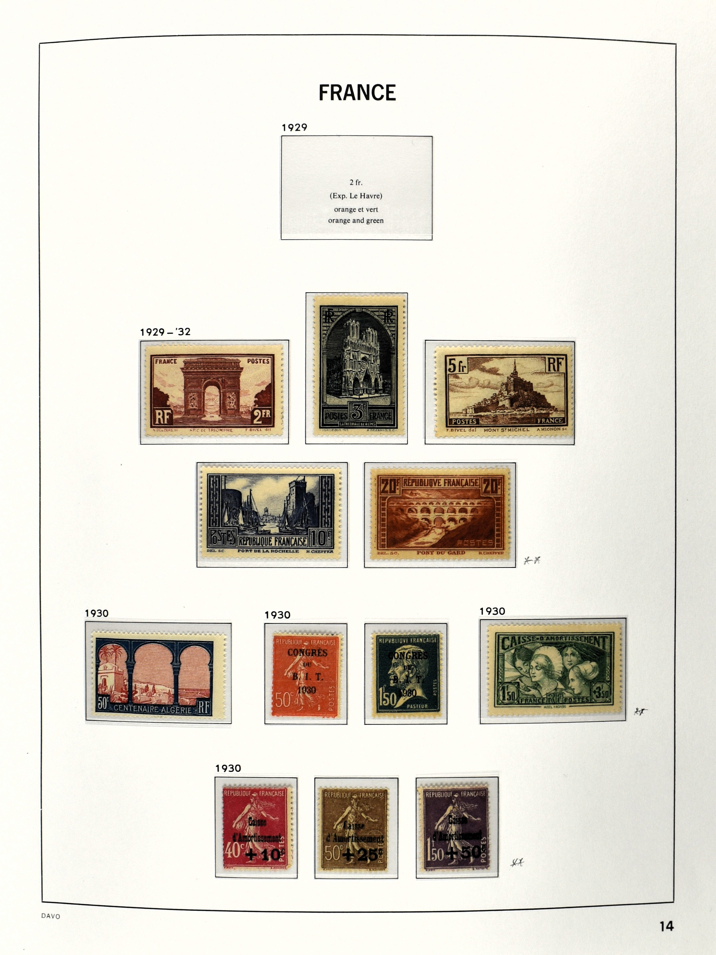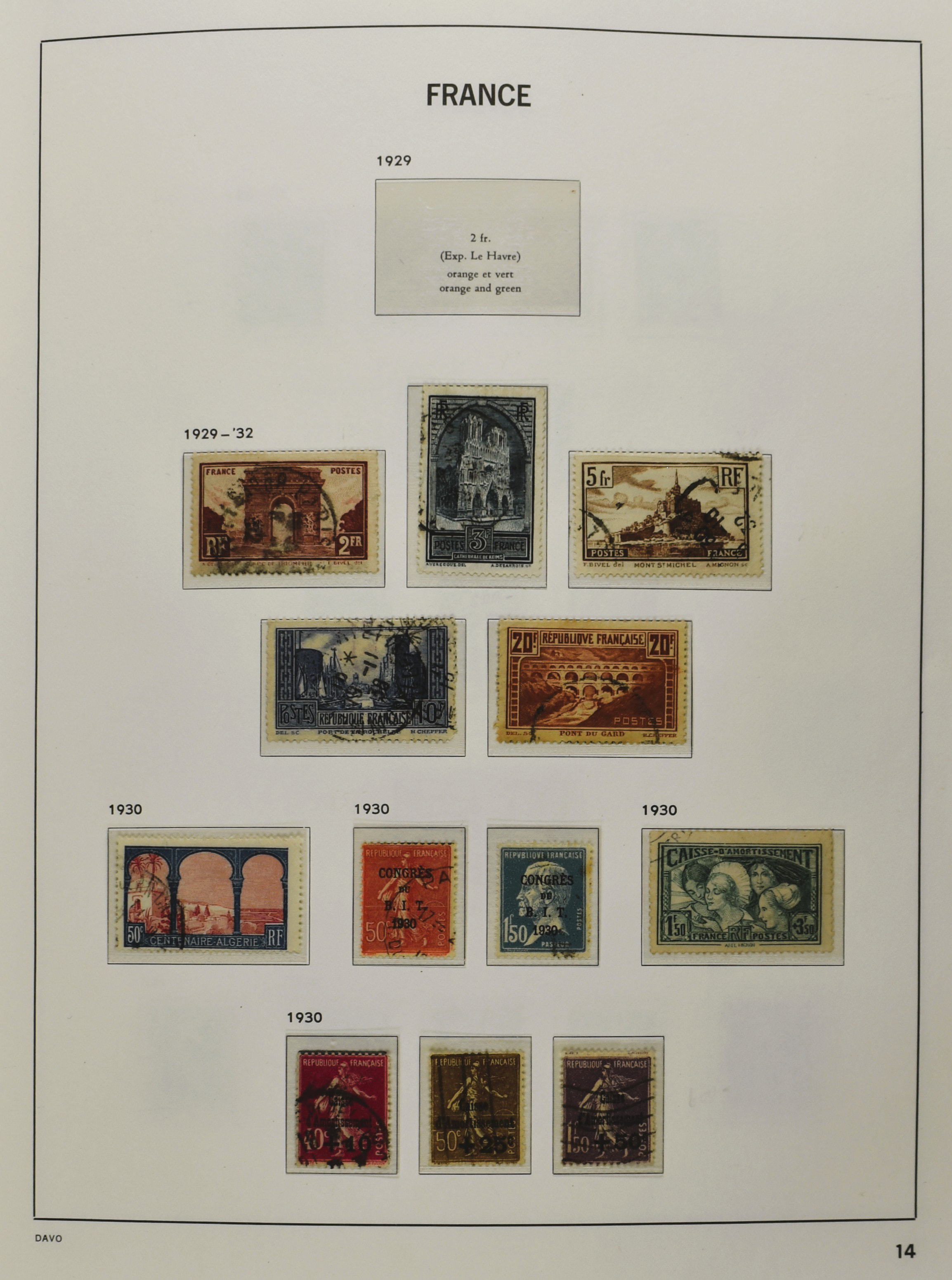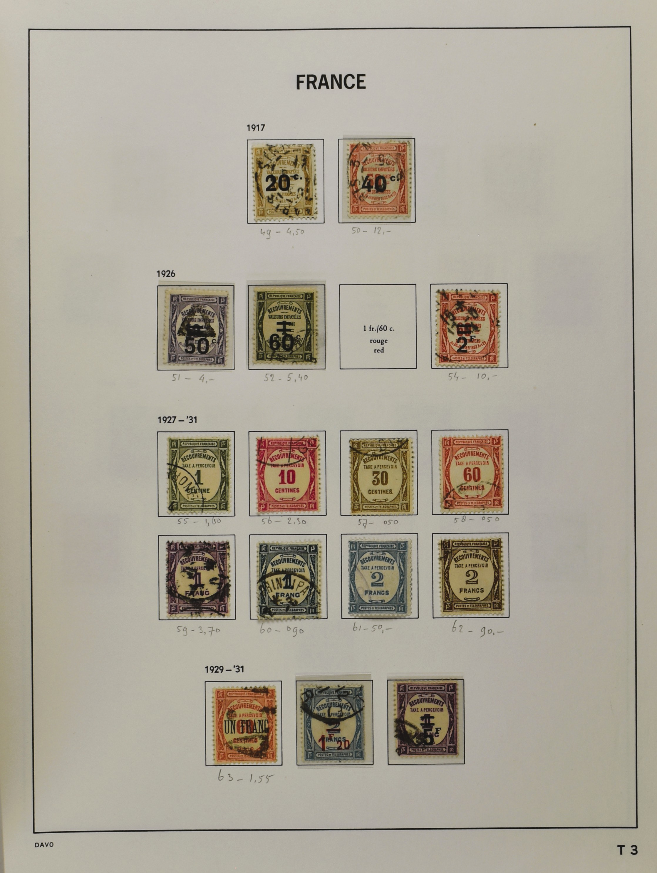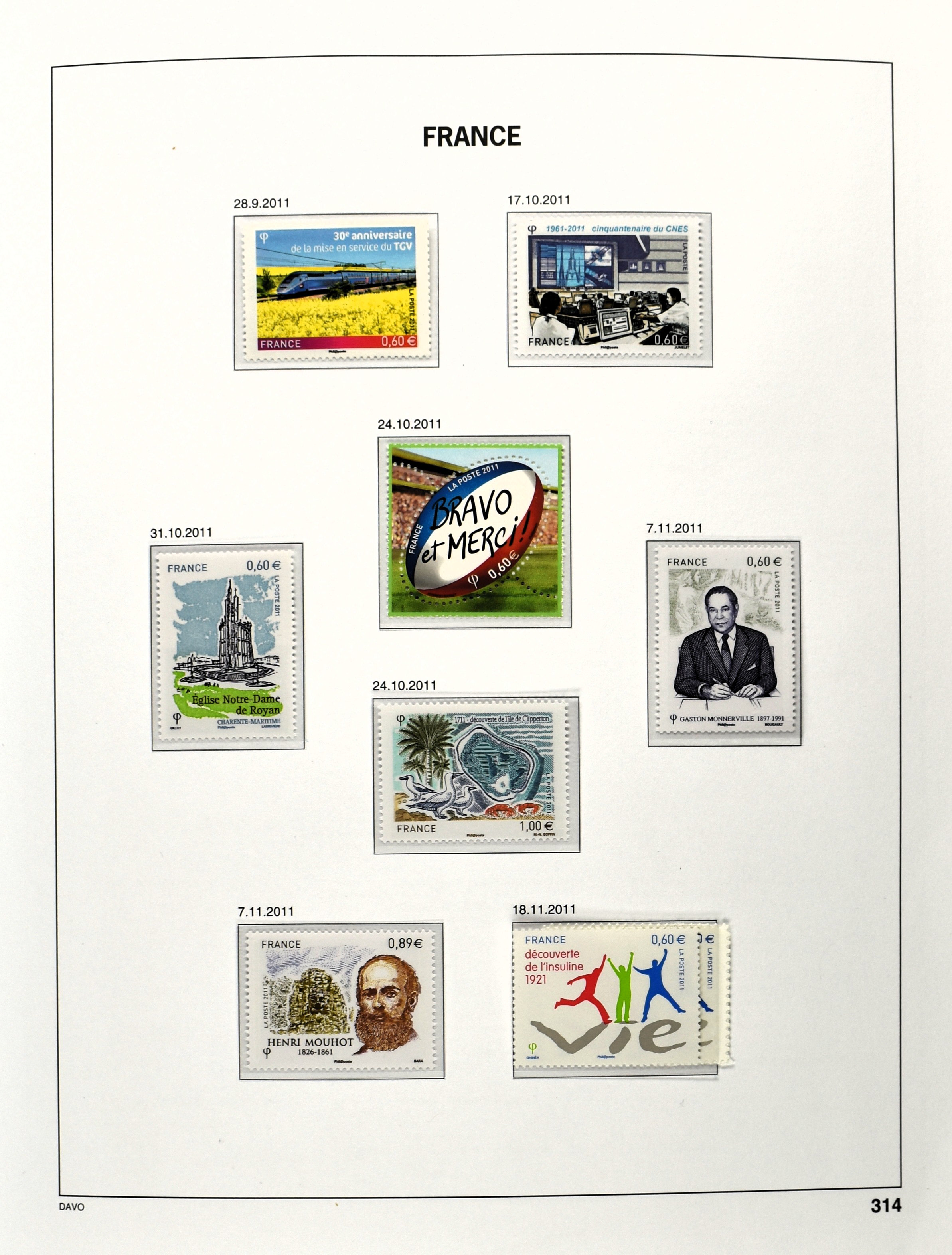 FRANCE 1870-2012, (*)/*/** collection in 4 Davo albums with a lot of good numbers and sets f.i.: Yv. 128/35, 144/52, 181/83, 220/21, 240/42, 321, block 1 and 3, a nice section back of the book with Postage Due, Service and Precancels, in