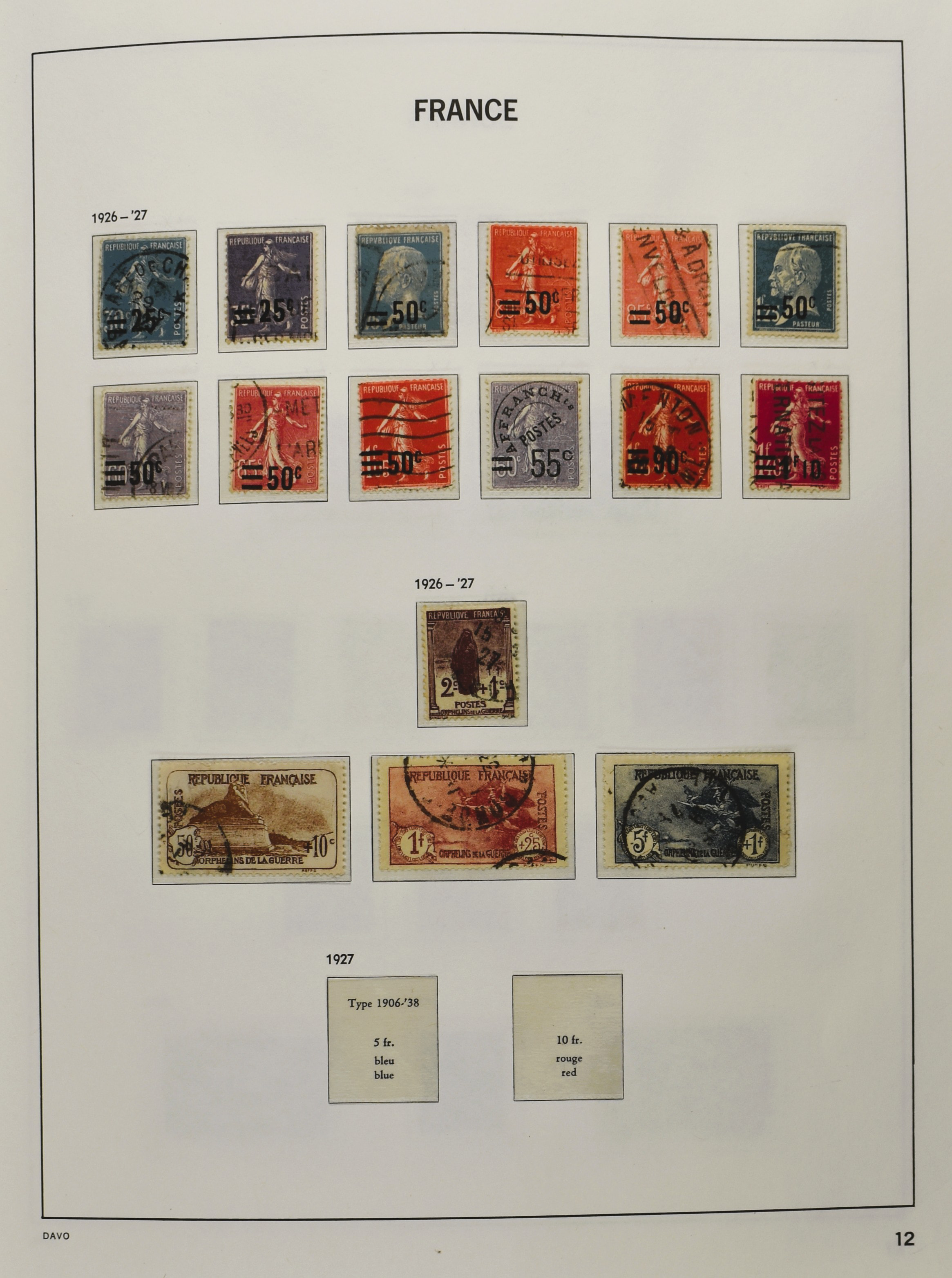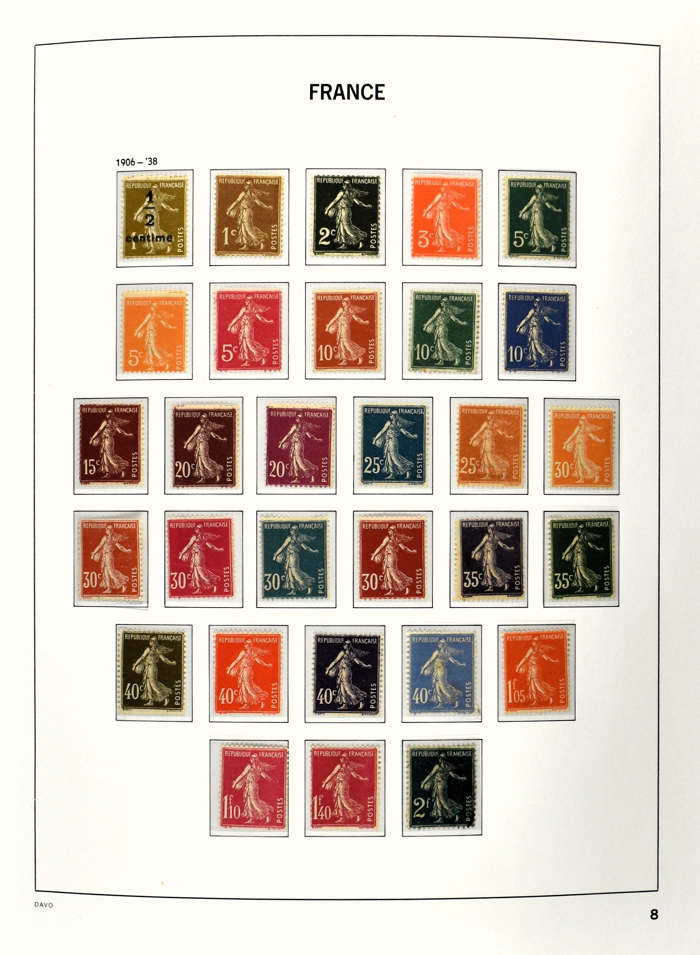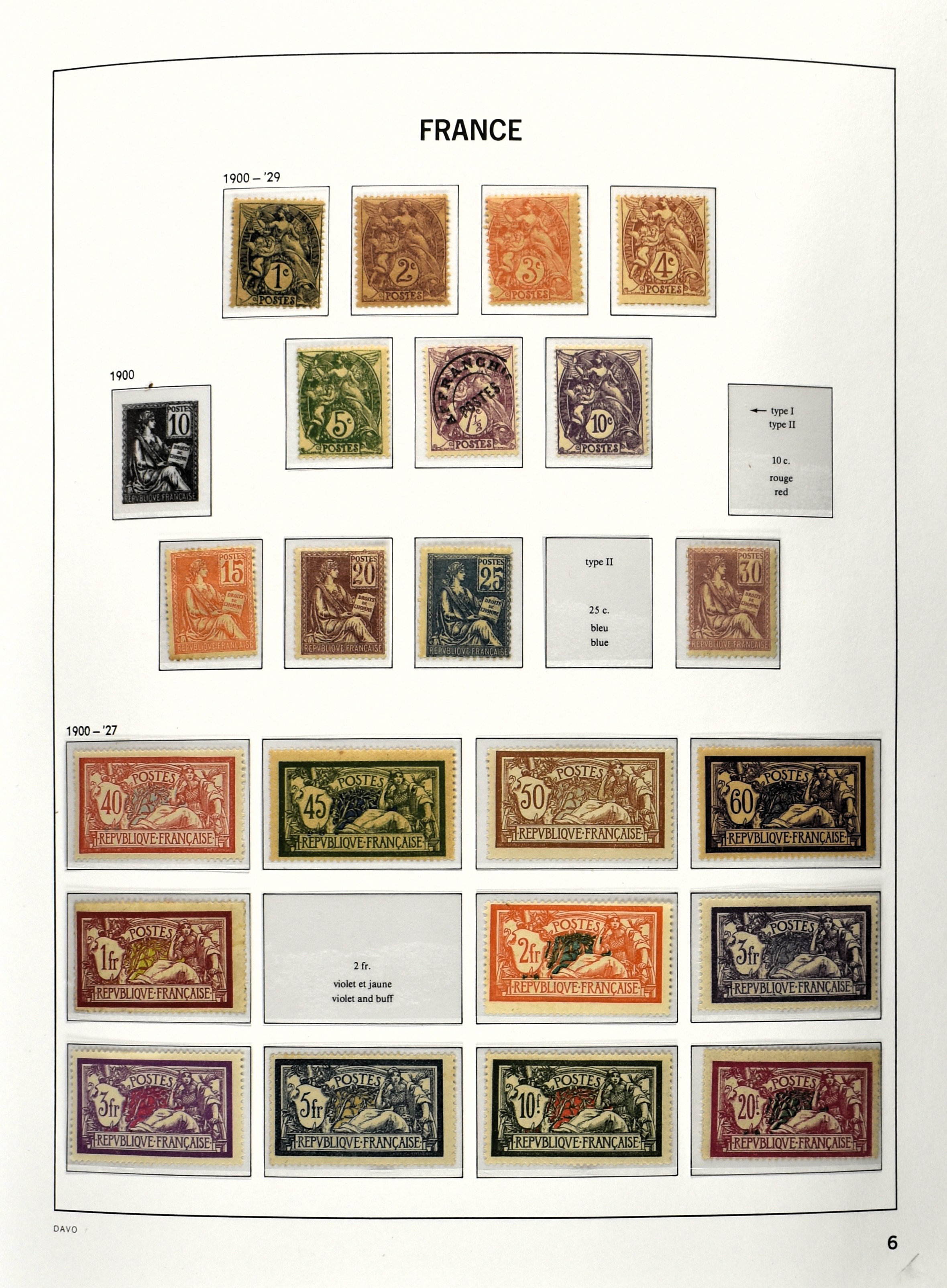 FRANCE 1900-2009, */** collection in 5 Davo albums with several good numbers and sets a.o.: Yv. 148/53, 162/69, 249/56, 266/77, a nice part back of the book with A1/2, block 3, precancels, in the modern part including booklets, blocks and