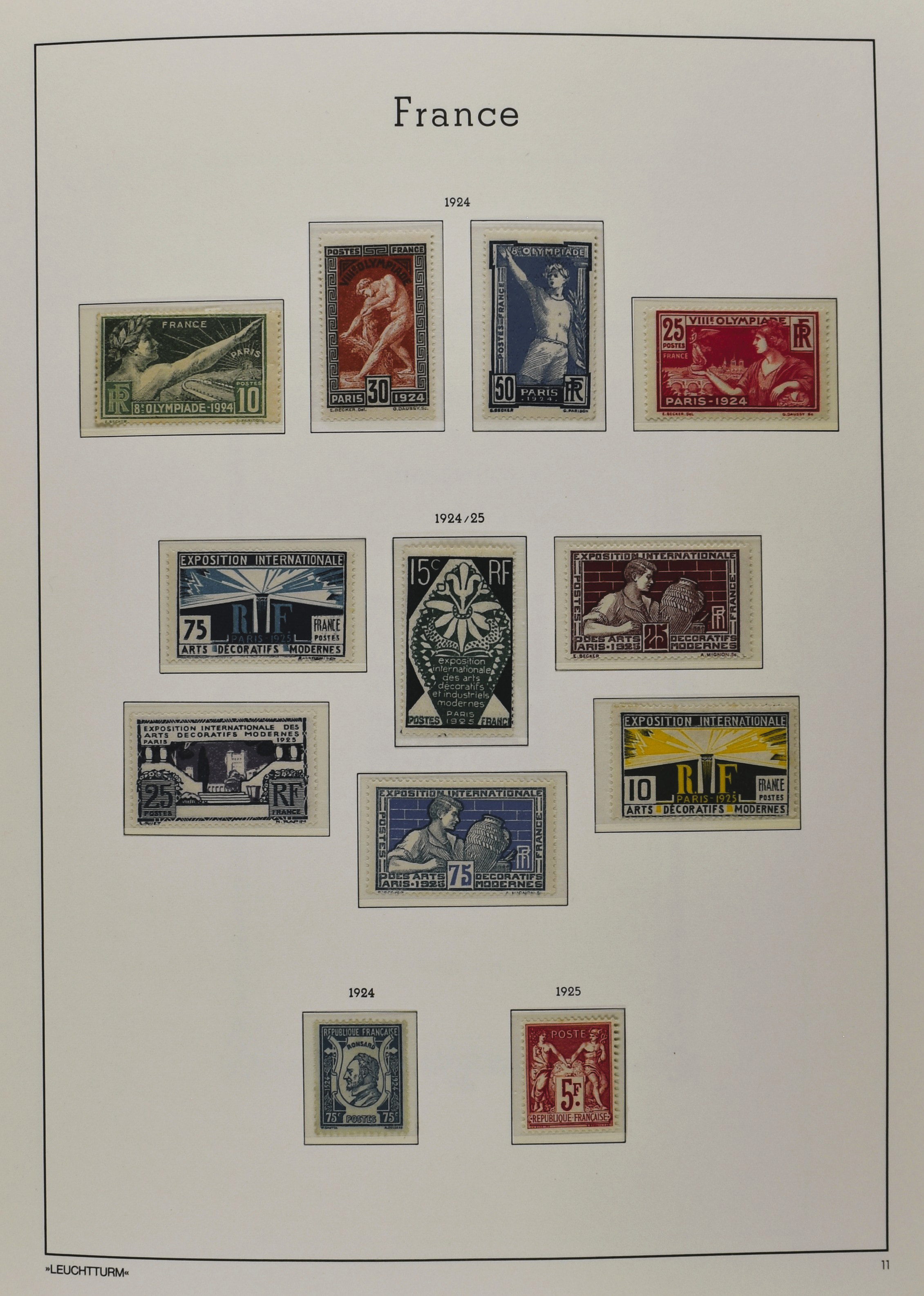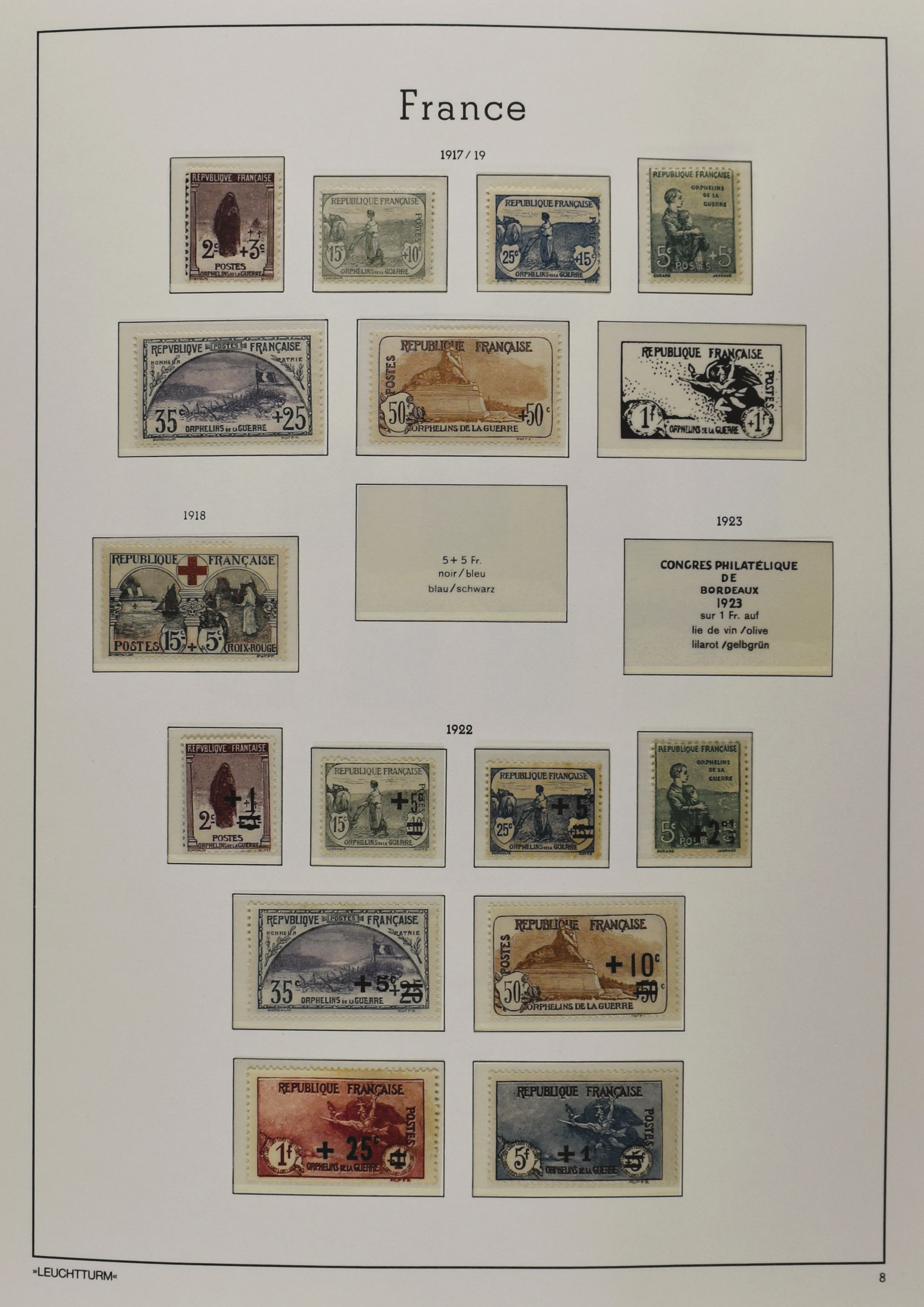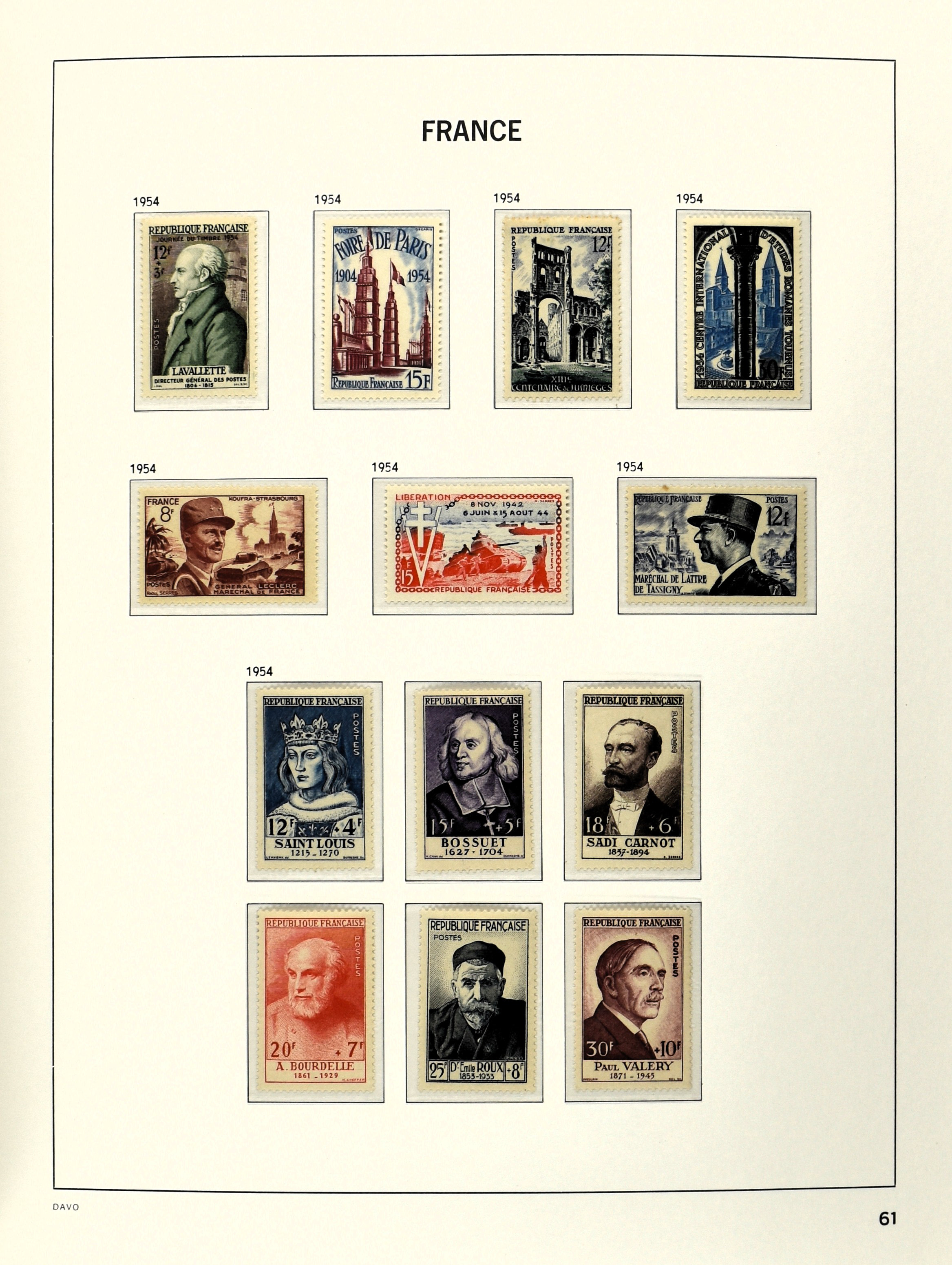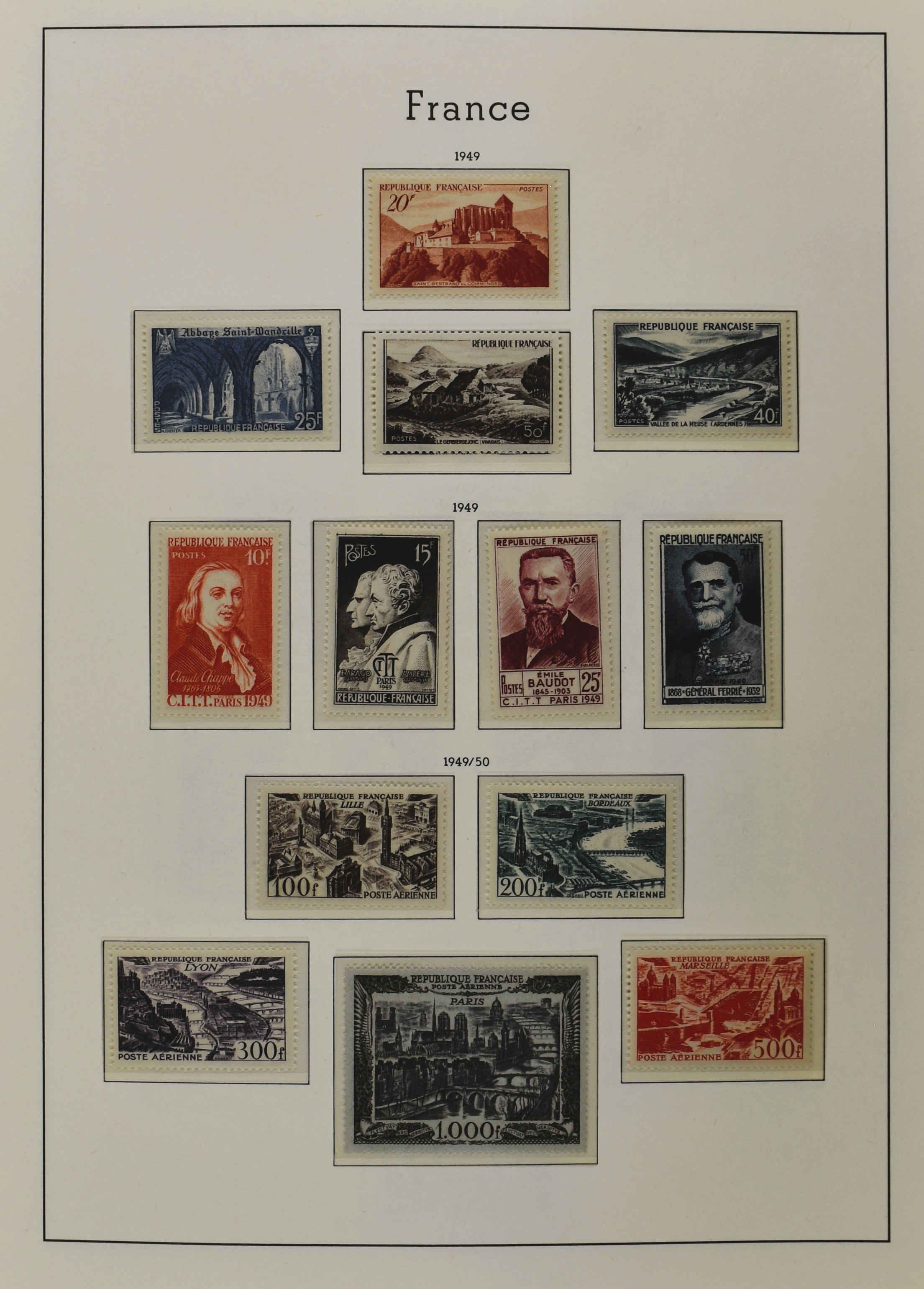 FRANCE 1900-2009, */** collection in 5 Davo albums with several good numbers and sets a.o.: Yv. 148/53, 162/69, 249/56, 266/77, a nice part back of the book with A1/2, block 3, precancels, in the modern part including booklets, blocks and