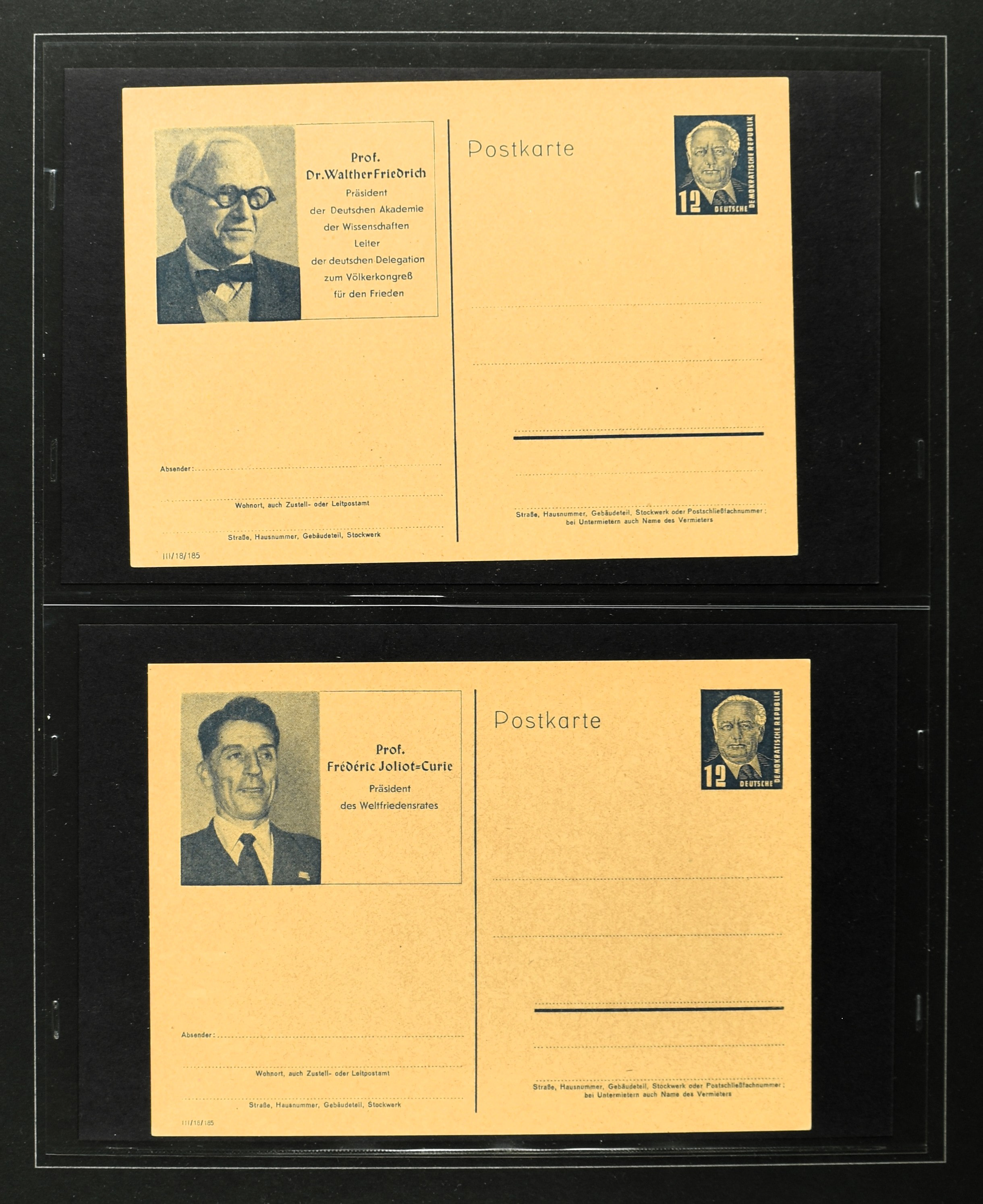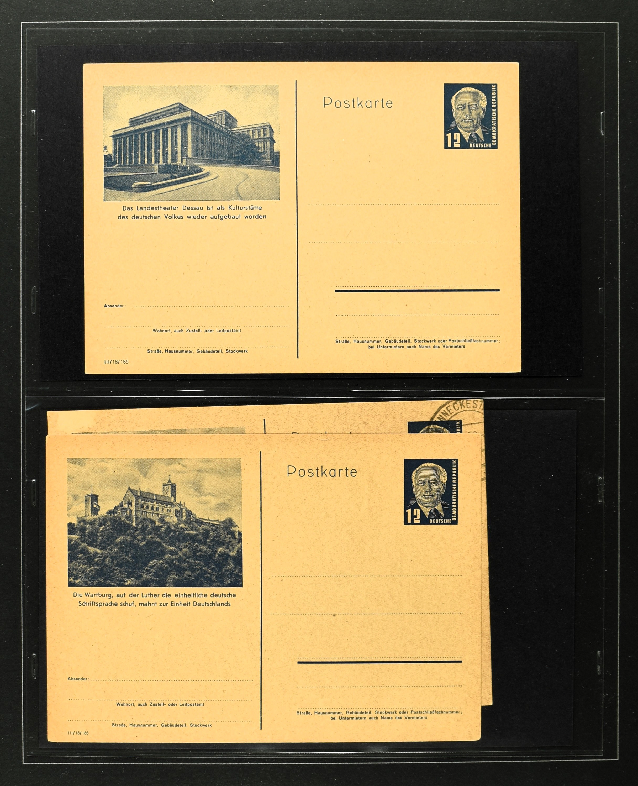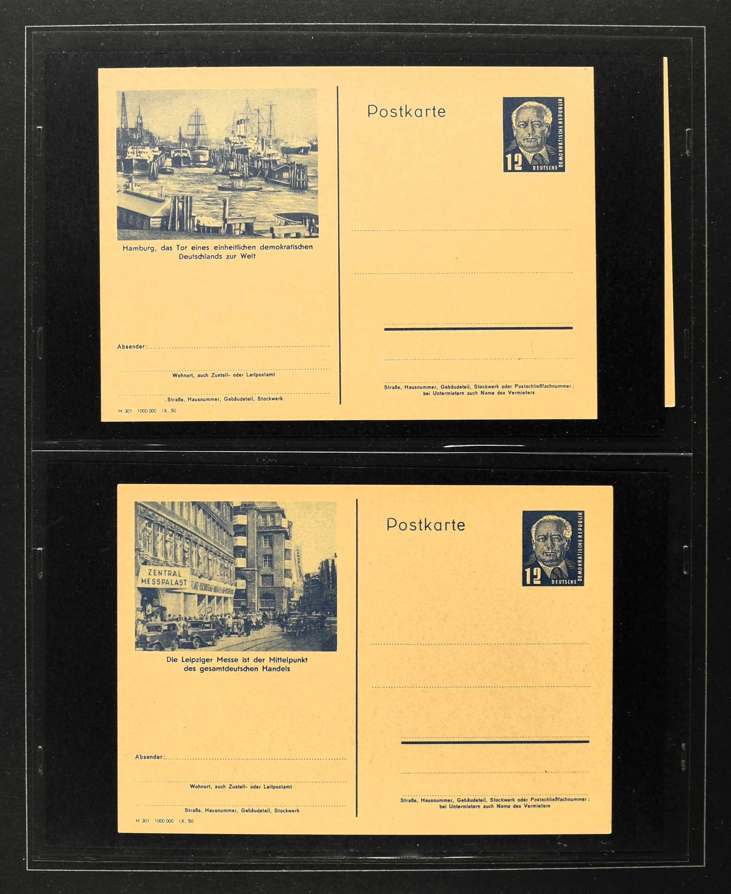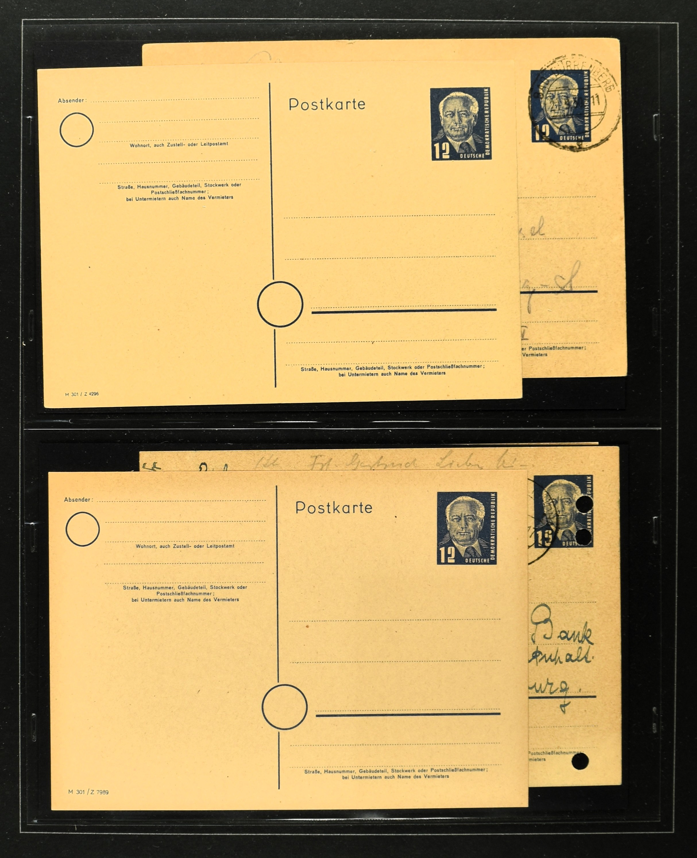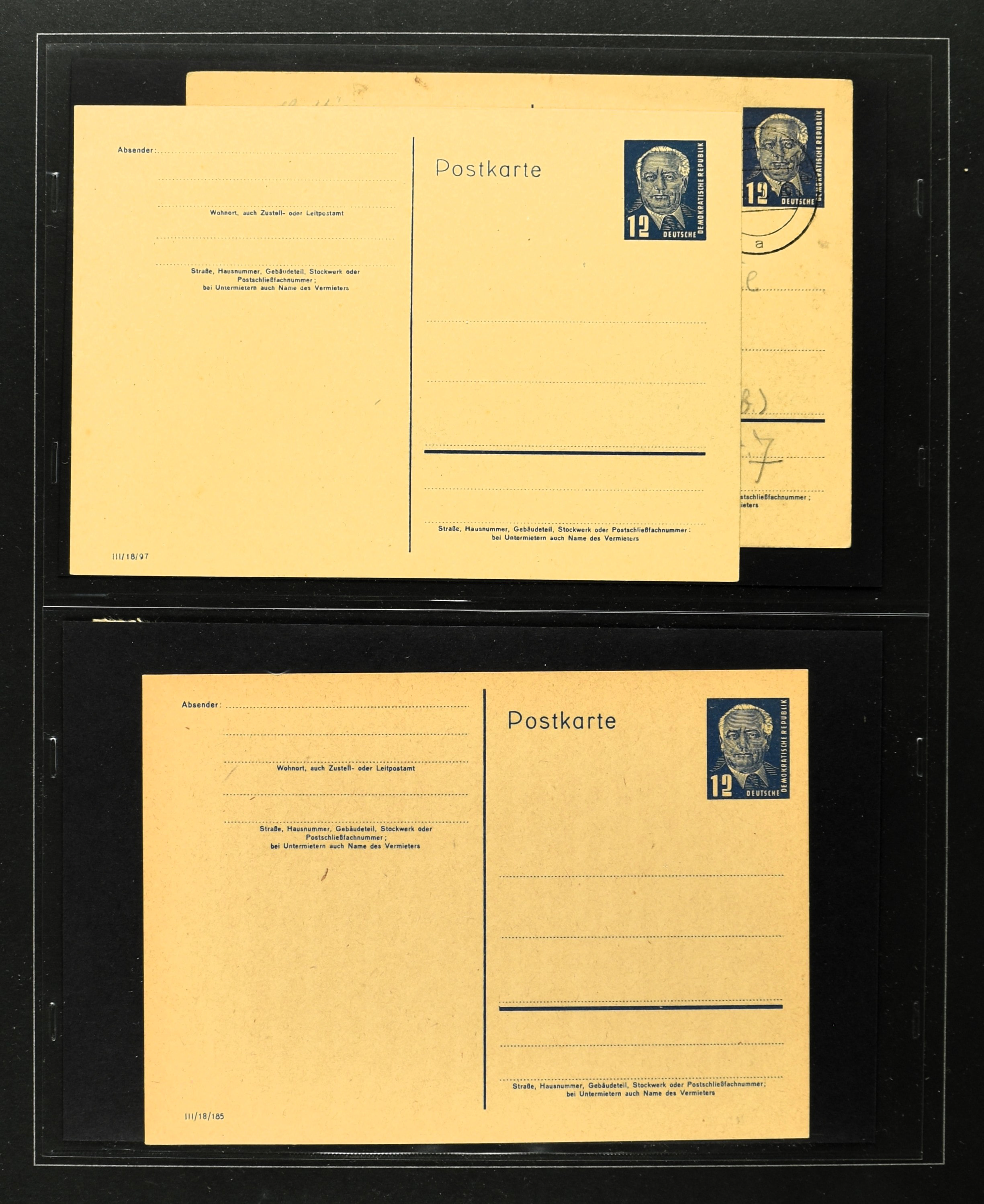 2369 imageGERMANY, DDR, 1950-1990, collection postal stationary with 170 different cards (often used and unused) in 2 albums with better items i.e.: P44a, 51-01, 51-02A used, 60, 70II etc. Catalogue value according the vendor €2500+ (Image) (Image2) (Image3) (Image4) (Image5) (Image6) (Image7) (Image8) (Image9) (Image10) (Image11) (Image12) (Image13) (Image14) (Image15) (All Images)