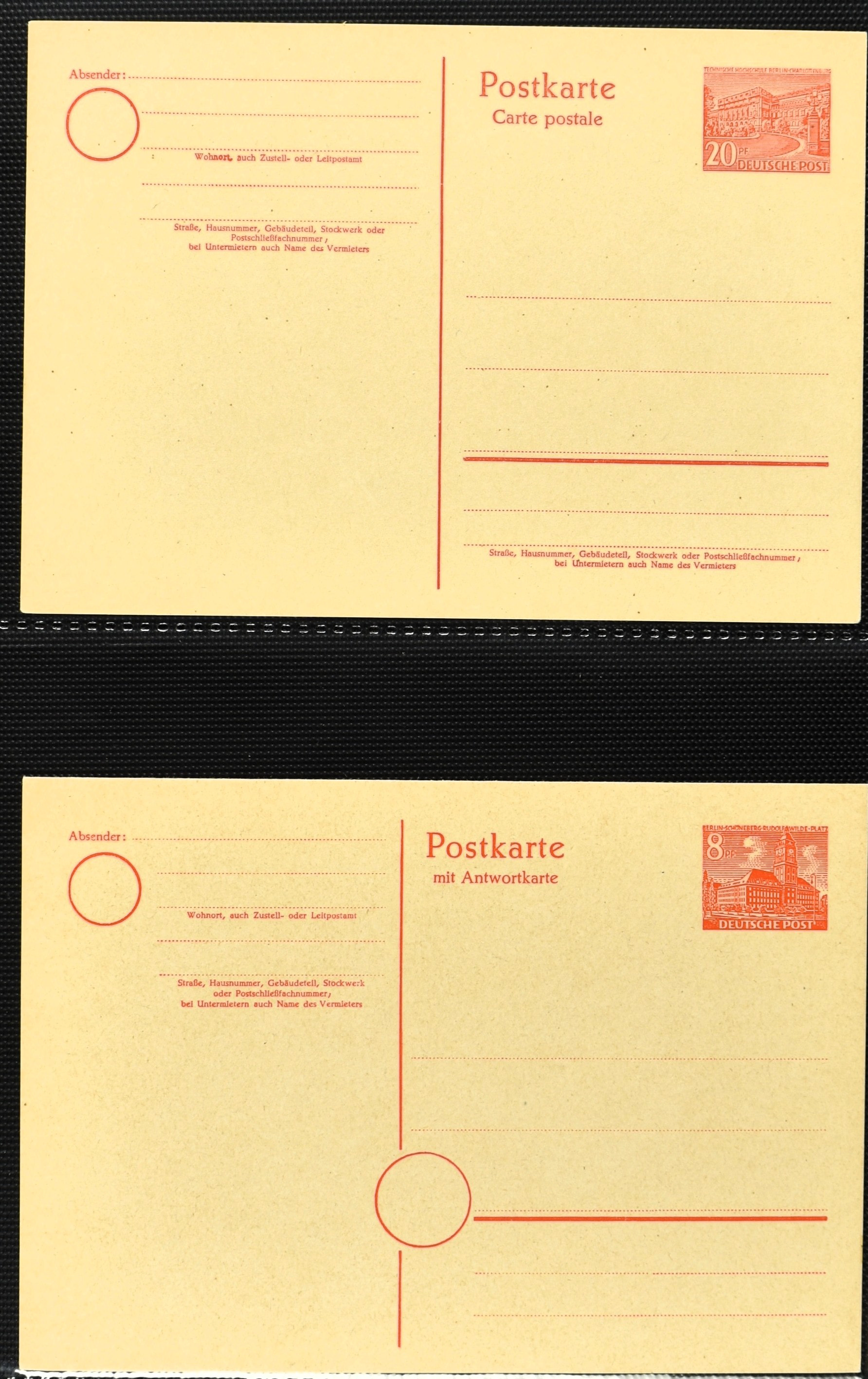 2370 imageGERMANY, BERLIN 1948-1987, Postal stationary, unused collection with 150+ cards in 1 cover album incl. P2b, P3, P14, P22, P23I, P27, P34 and so on. (Image) (Image2) (Image3) (Image4) (Image5) (Image6) (Image7) (Image8) (Image9) (Image10) (Image11) (Image12) (Image13) (Image14) (Image15) (Image16) (Image17) (All Images)
