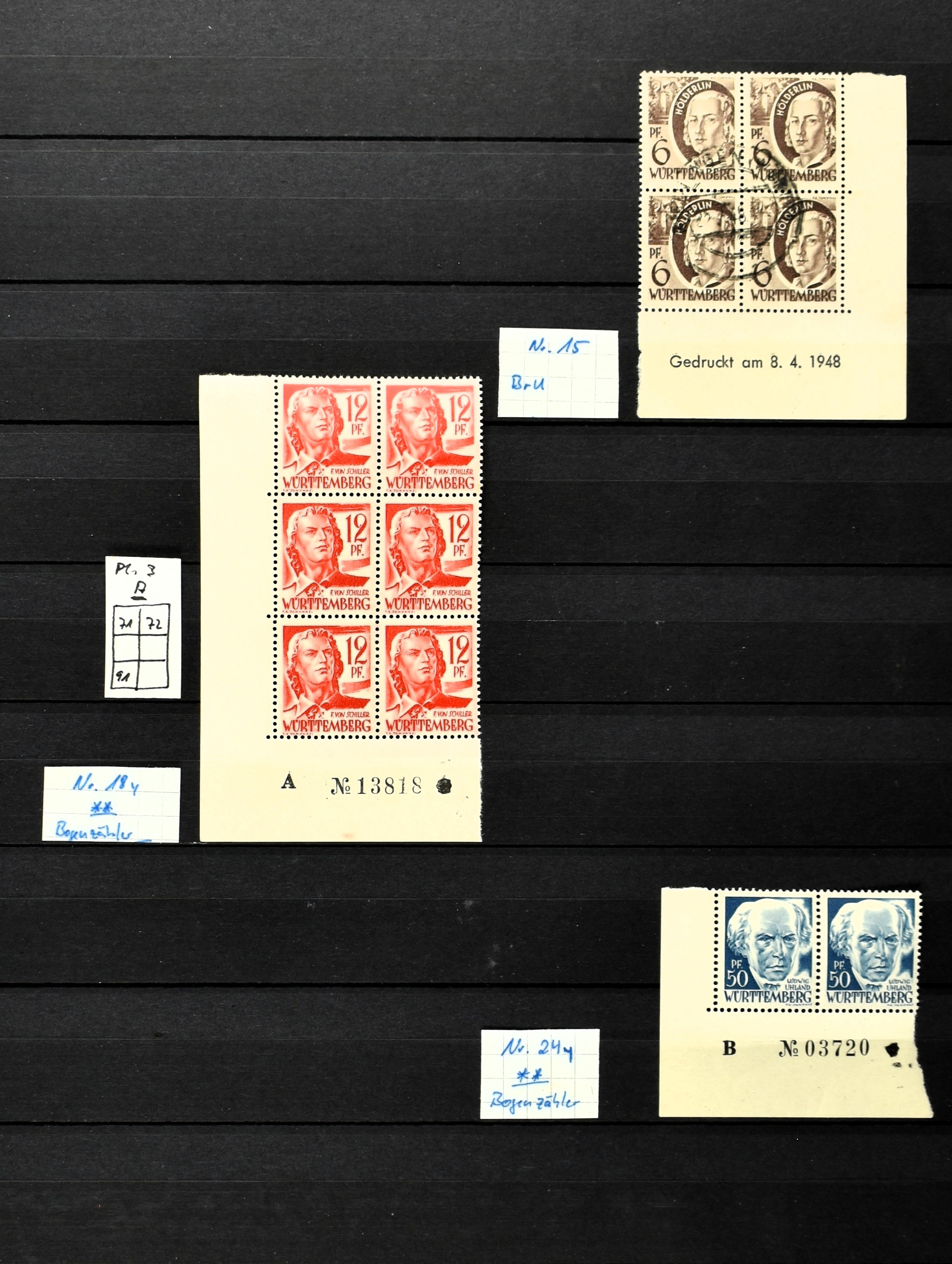2375 imageGERMANY, FRENCH ZONE 1945-1949, o/** Specialized collection in 4 albums with several good items f.i.: Plate numbers, pairs and blocks of 4 and larger units, several margin and corner margin stamps, types and plate flaws. Nice lot with with a catalogue value exceeding €5000 (Image) (Image2) (Image3) (Image4) (Image5) (Image6) (Image7) (Image8) (Image9) (Image10) (Image11) (Image12) (Image13) (Image14) (Image15) (Image16) (Image17) (Image18) (Image19) (Image20) (Image21) (Image22) (Image23) (Image24) (Image25) (Image26) (Image27) (Image28) (Image29) (Image30) (Image31) (Image32) (Image33) (Image34) (Image35) (Image36) (Image37) (Image38) (Image39) (Image40) (Image41) (Image42) (Image43) (Image44) (Image45) (Image46) (Image47) (Image48) (Image49) (Image50) (Image51) (Image52) (Image53) (Image54) (Image55) (Image56) (Image57) (Image58) (Image59) (Image60) (Image61) (Image62) (Image63) (Image64) (Image65) (Image66) (Image67) (Image68) (Image69) (Image70) (Image71) (Image72) (Image73) (Image74) (Image75) (Image76) (Image77) (Image78) (Image79) (Image80) (Image81) (Image82) (Image83) (Image84) (Image85) (Image86) (Image87) (Image88) (Image89) (All Images)