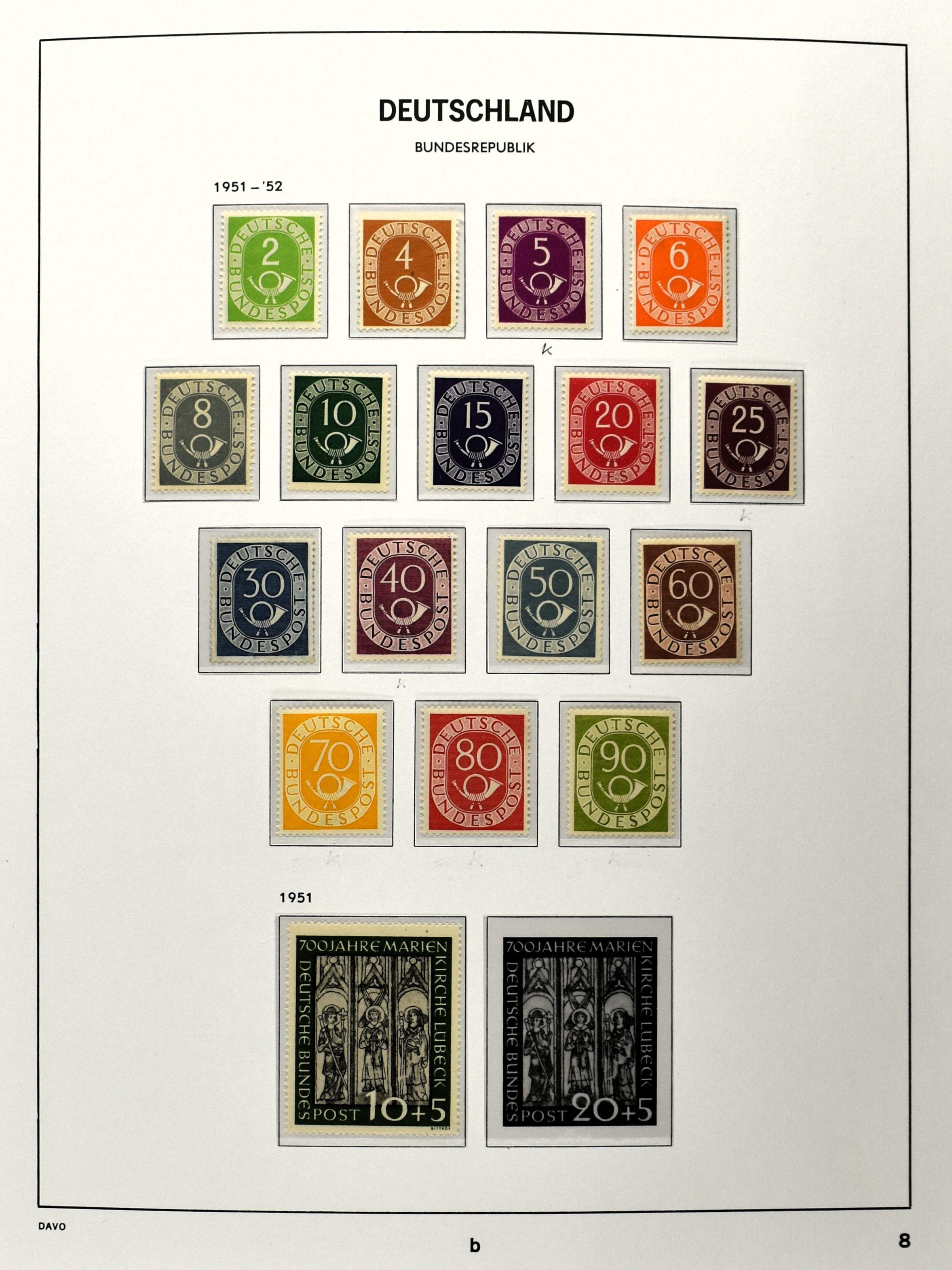 2380 imageGERMAN FEDERAL REUBLIC 1949-2007, Nice unmounted mint collection in 3 Davo albums with the better sets from the 1950's incl. the Post horn set, blocks, m/s and face value (Image) (Image2) (Image3) (Image4) (Image5) (Image6) (Image7) (Image8) (Image9) (All Images)