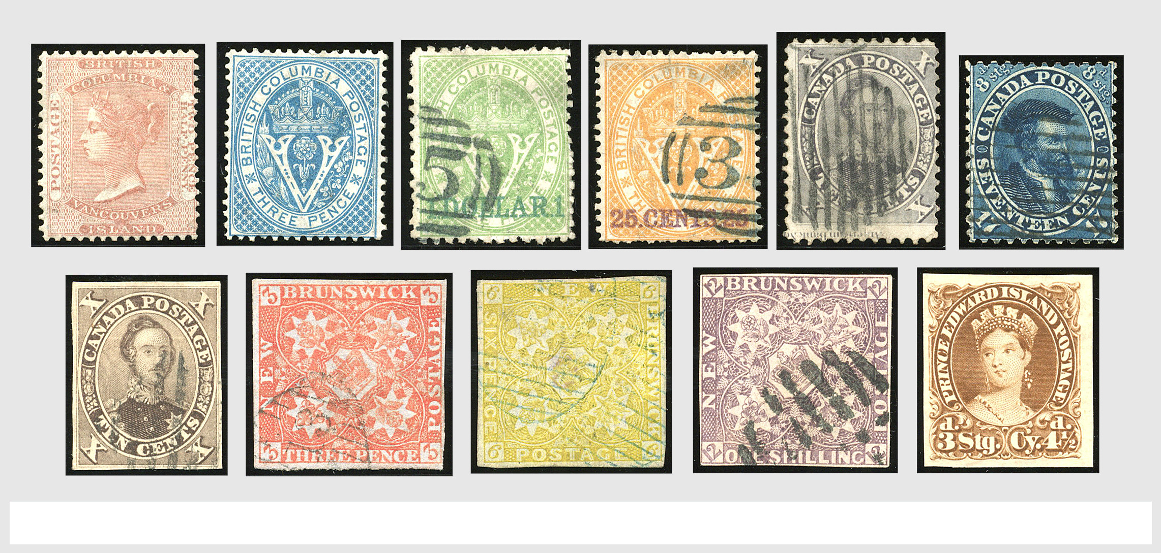 2395 imageBRITISH COMMONWEALTH, CANADA, COLONIES 1851-1859, o/(*)/* in a thin stockbook with better material a.o.: Vancouver Island SG. 13/14, British Columbia 21/22, 25, Canada Colony 5, 8, 17, 26 New Brunswick 1, 7/9, Nova Scotia 3/4. Prince Edward Isl. 17/19 etc. Nice lot with a high catalogue value. (Image) (Image2) (Image3) (Image4) (Image5) (Image6) (Image7) (Image8) (Image9) (Image10) (All Images)