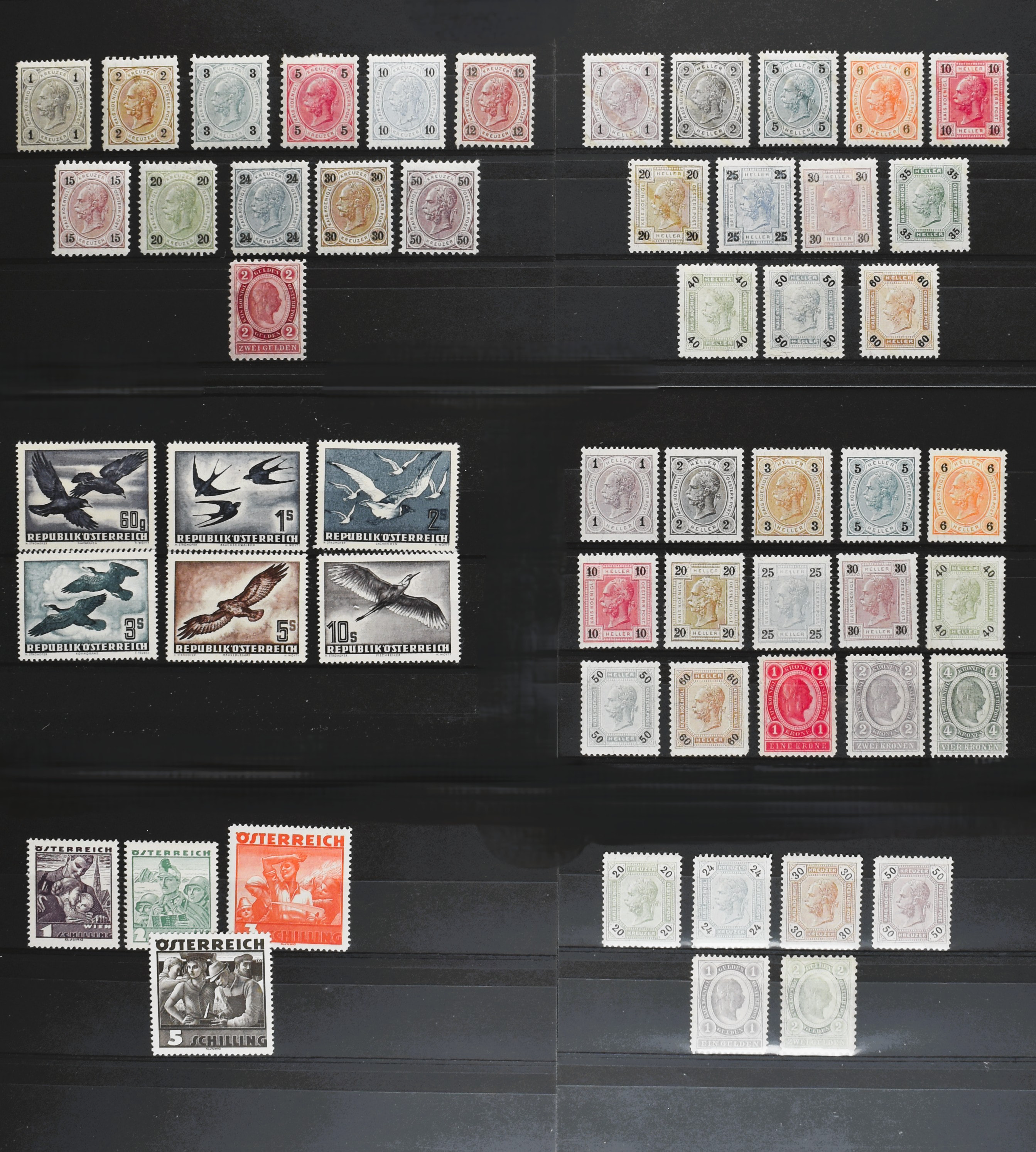 220 imageAUSTRIA 1850-1985 o/*/**, collections in 8 albums including several good numbers and sets (some up to 3 times) a.o.: Mi. 35/41, 139/56, 161/177, 204/207, 468/487. 512/517, 518/523, 551/554, 567/587, 588, 693/696, 911, 984/87 etc., with a very high catalogue value. For extra images, please visit our website. (Image) (Image2) (Image3) (Image4) (Image5) (Image6) (Image7) (Image8) (Image9) (Image10) (Image11) (Image12) (Image13) (Image14) (Image15) (Image16) (Image17) (Image18) (Image19) (Image20) (Image21) (Image22) (Image23) (Image24) (Image25) (Image26) (Image27) (Image28) (Image29) (Image30) (Image31) (Image32) (Image33) (Image34) (Image35) (Image36) (Image37) (Image38) (Image39) (Image40) (Image41) (Image42) (Image43) (Image44) (Image45) (Image46) (Image47) (Image48) (Image49) (Image50) (Image51) (Image52) (Image53) (Image54) (Image55) (Image56) (Image57) (Image58) (Image59) (Image60) (Image61) (Image62) (Image63) (Image64) (Image65) (Image66) (Image67) (Image68) (Image69) (Image70) (Image71) (Image72) (Image73) (Image74) (Image75) (Image76) (Image77) (Image78) (Image79) (Image80) (Image81) (Image82) (All Images)