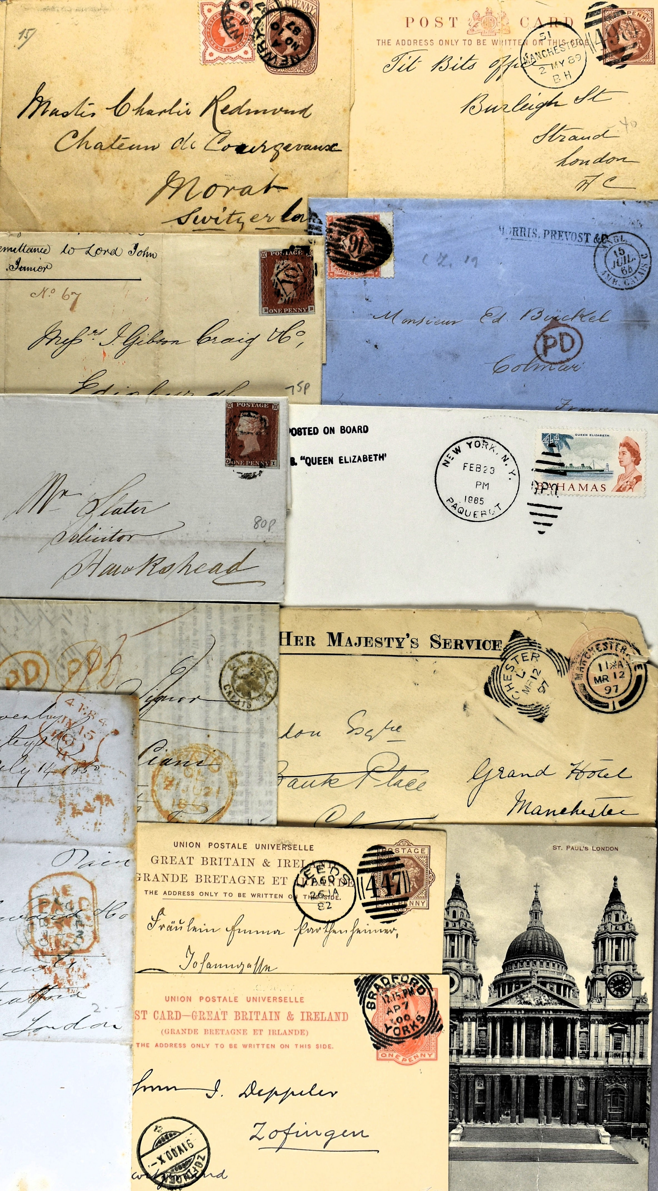 217 imageGREAT BRITAIN POSTAL HISTORY, modest collection of covers from ca. 1829 on including Mulready 1d and 2d unused, and 1d used, postal stationery postcards and envelopes including 2½d to St. Petersburg, Russia, censored covers, 2 sample bag labels bearing Seahorses (1928), revenues, etc. in an envelope and 2 ring binders (Image) (Image2) (Image3) (Image4) (Image5) (Image6) (Image7) (Image8) (Image9) (Image10) (Image11) (Image12) (Image13) (Image14) (Image15) (Image16) (Image17) (Image18) (Image19) (Image20) (Image21) (Image22) (Image23) (Image24) (Image25) (Image26) (Image27) (Image28) (Image29) (Image30) (Image31) (Image32) (Image33) (Image34) (Image35) (Image36) (Image37) (Image38) (Image39) (Image40) (Image41) (Image42) (Image43) (Image44) (Image45) (Image46) (All Images)