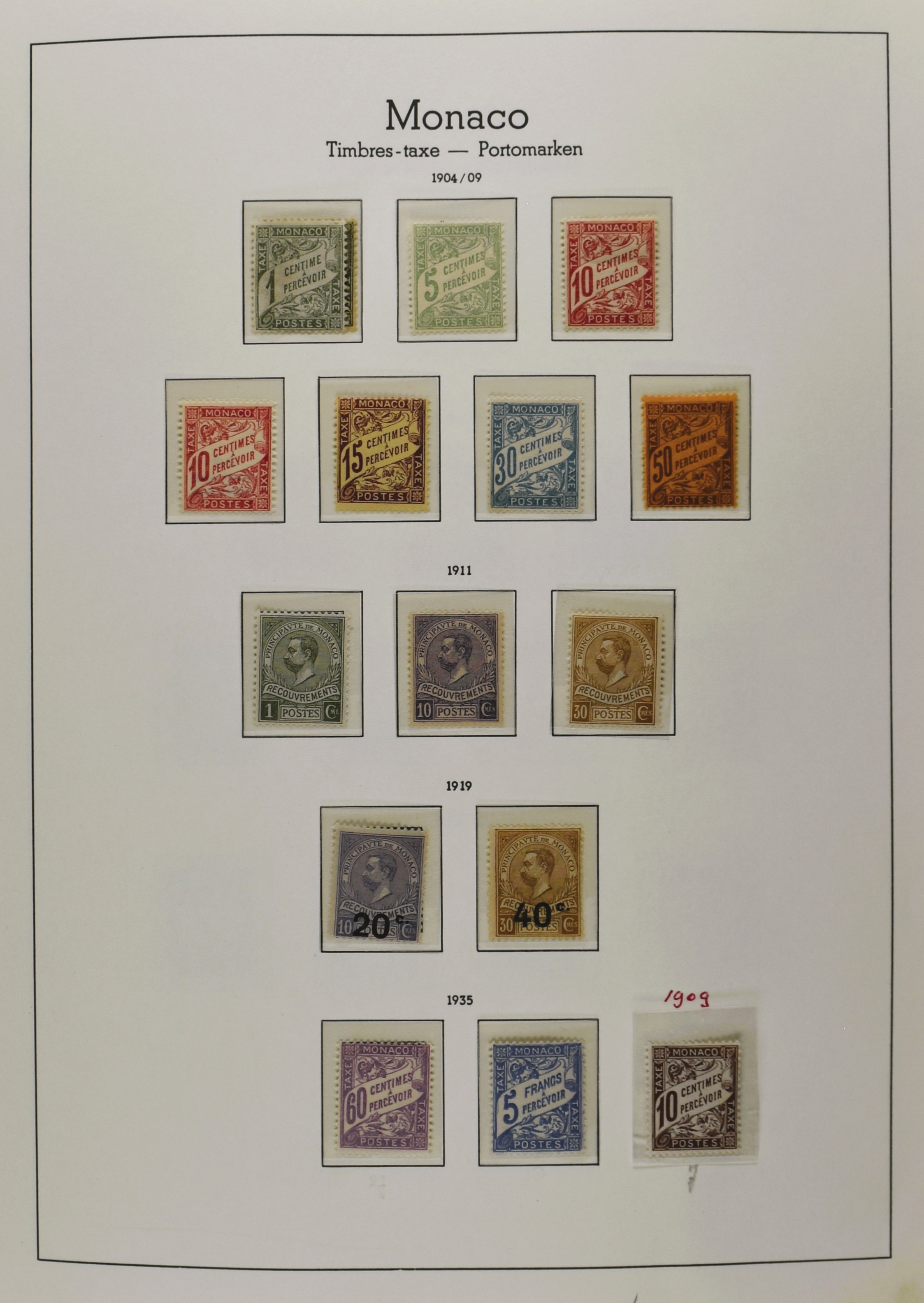 2422 imageMONACO 1885-2012, (*)/*/** Beautiful collection in nice quality and with a lot of good material a.o.: Yv. 1/9, 11/21, 27/32, 34/42, 44/45, 120/36, 138/42, 189, 190/99, 205/19, 502/05 A+B, block 1, 3/4 A+B, A nice section postage due with better nos etc., housed in 3 Davo albums. (Image) (Image2) (Image3) (Image4) (Image5) (Image6) (Image7) (Image8) (Image9) (Image10) (Image11) (Image12) (Image13) (Image14) (Image15) (Image16) (Image17) (Image18) (Image19) (Image20) (Image21) (Image22) (Image23) (Image24) (Image25) (Image26) (Image27) (Image28) (Image29) (Image30) (Image31) (All Images)