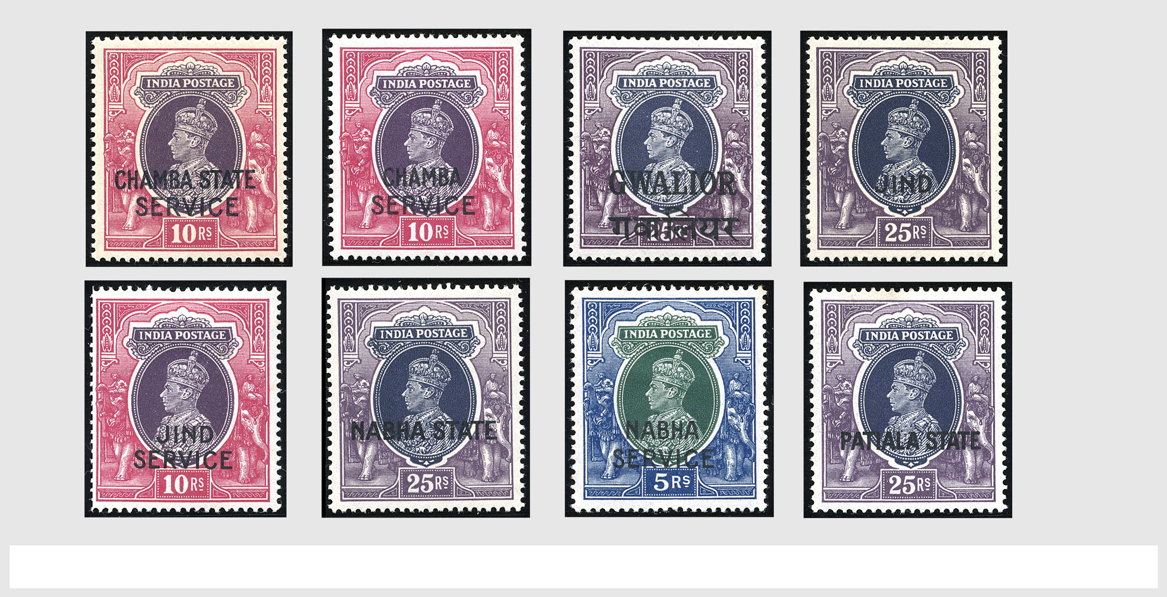 2464 imageINDIA CONVENTIONAL STATES 1884-1949, o/*/** in a Scott album with several good nos and sets a.o.: SG. Chamba O66/71, O72/86, Faridkot O1/15, Gwalior 105/117, Jind 127/36, O66/71, O73/86, Nabha 77/94, O66/68, Patiala 80/97 and 100, many setting- and other varieties etc. Nice collection with a high catalogue value! (Image) (Image2) (Image3) (Image4) (Image5) (Image6) (Image7) (Image8) (Image9) (Image10) (Image11) (Image12) (Image13) (Image14) (Image15) (Image16) (Image17) (Image18) (Image19) (Image20) (Image21) (Image22) (Image23) (Image24) (Image25) (Image26) (Image27) (Image28) (Image29) (Image30) (Image31) (Image32) (Image33) (Image34) (Image35) (Image36) (Image37) (Image38) (Image39) (Image40) (Image41) (Image42) (Image43) (Image44) (Image45) (Image46) (Image47) (Image48) (Image49) (Image50) (Image51) (Image52) (Image53) (Image54) (Image55) (Image56) (All Images)