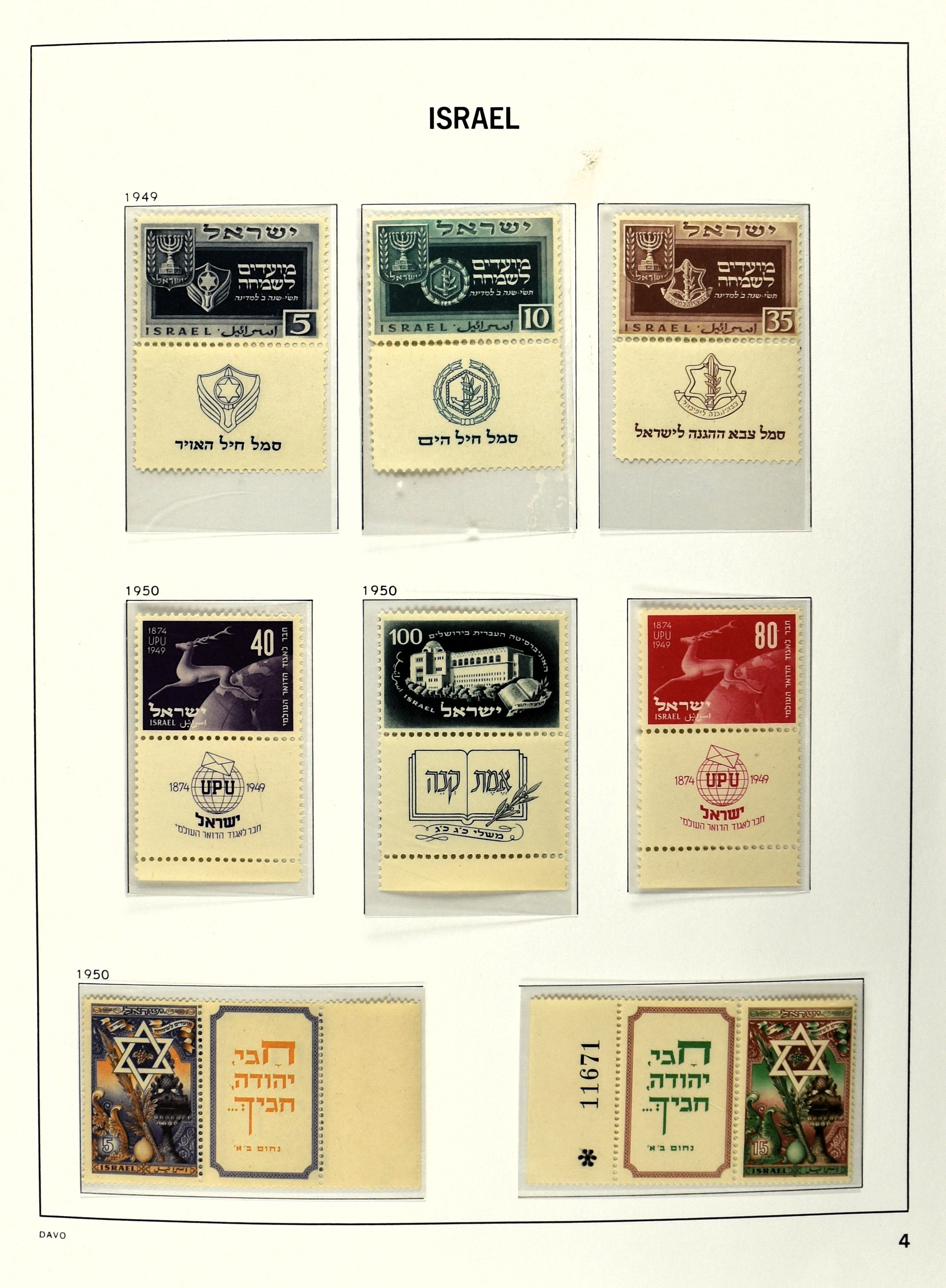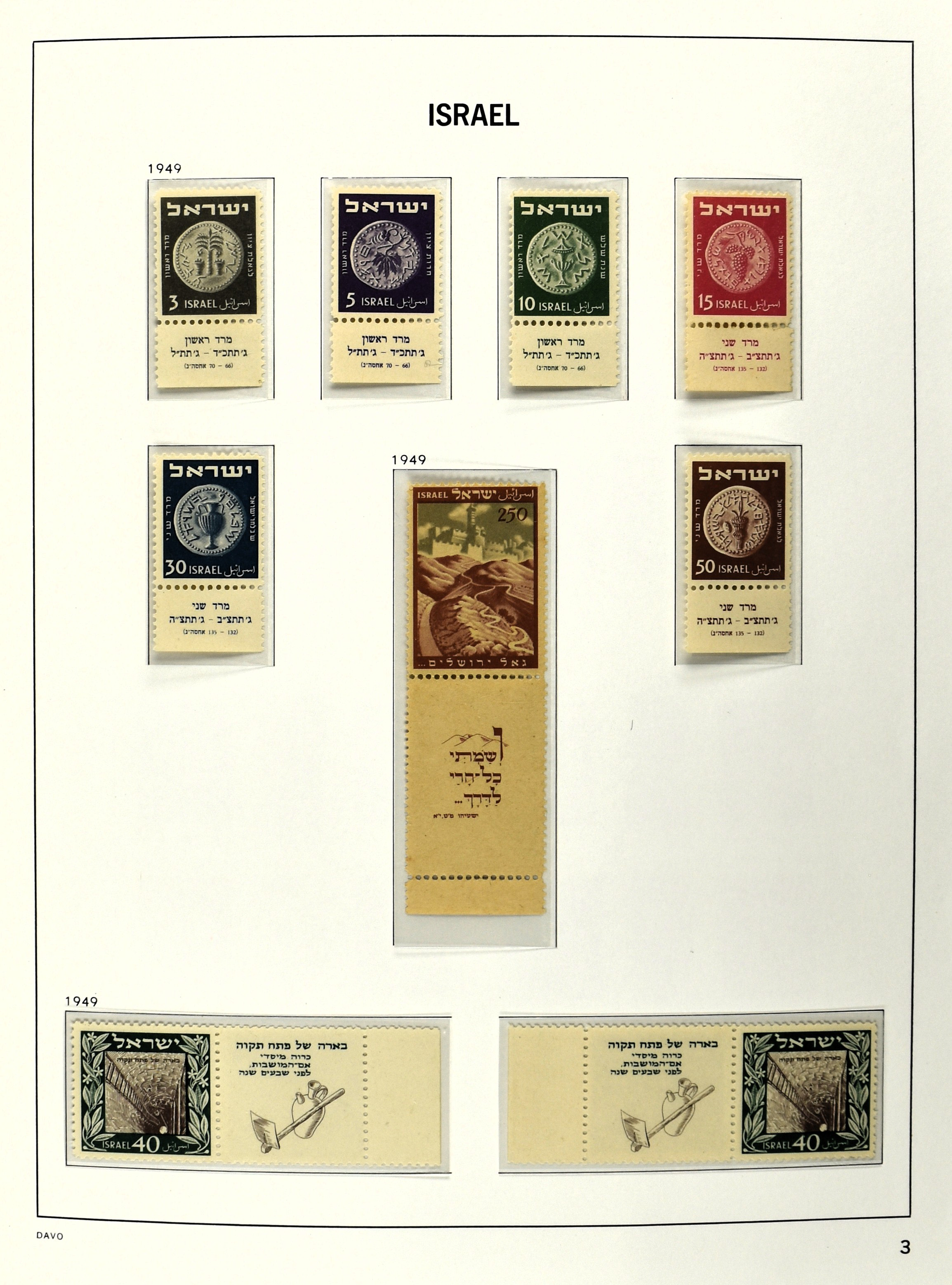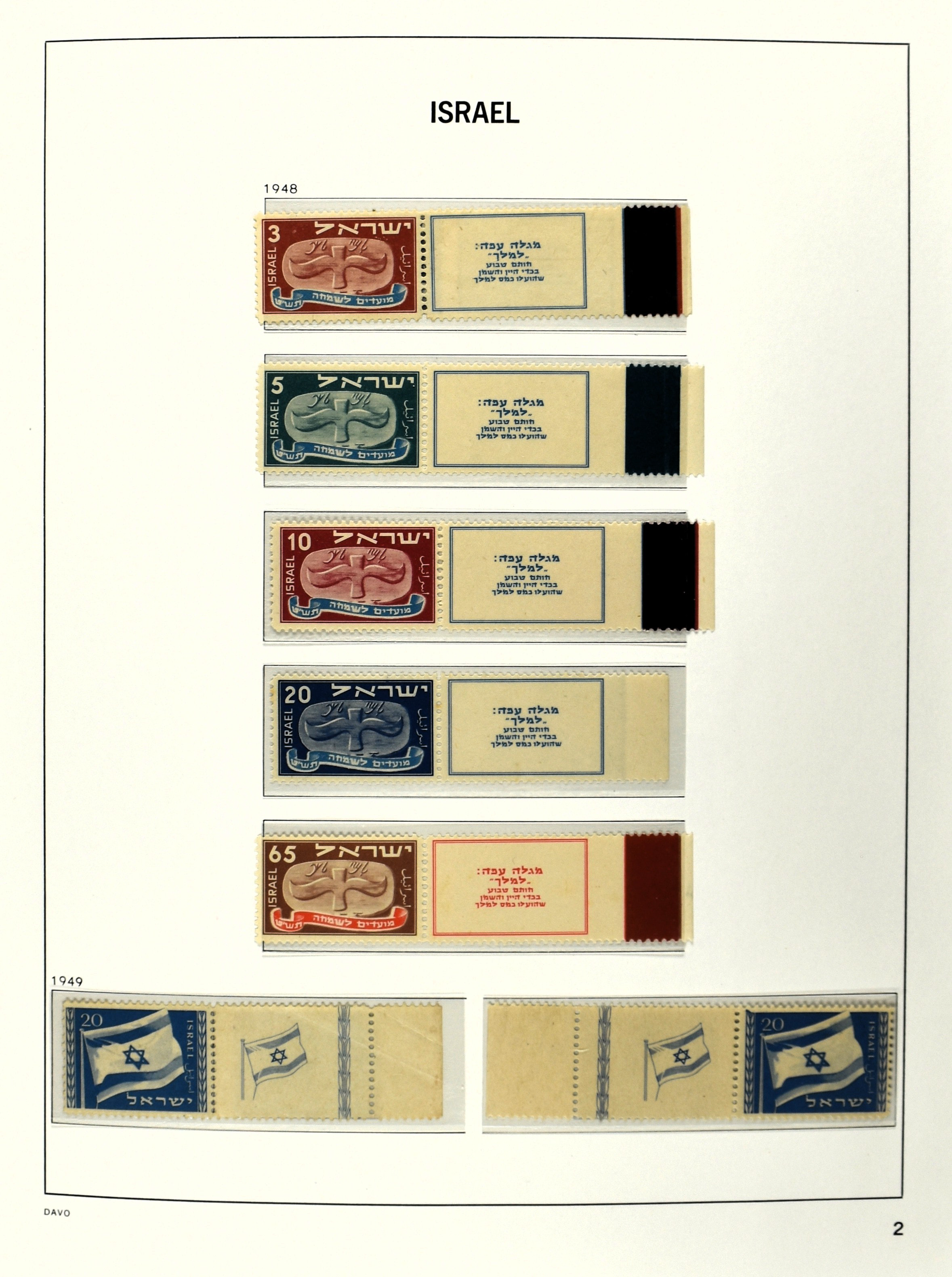 2465 imageISRAEL 1948-2005, unmounted mint collection in 3 Davo albums with several better full tab issues , gutter pairs 1948, tete-beche 1953, airmail, block 1 etc. etc. (Image) (Image2) (Image3) (Image4) (Image5) (Image6) (Image7) (Image8) (Image9) (Image10) (Image11) (Image12) (Image13) (Image14) (Image15) (Image16) (Image17) (Image18) (Image19) (Image20) (Image21) (Image22) (All Images)