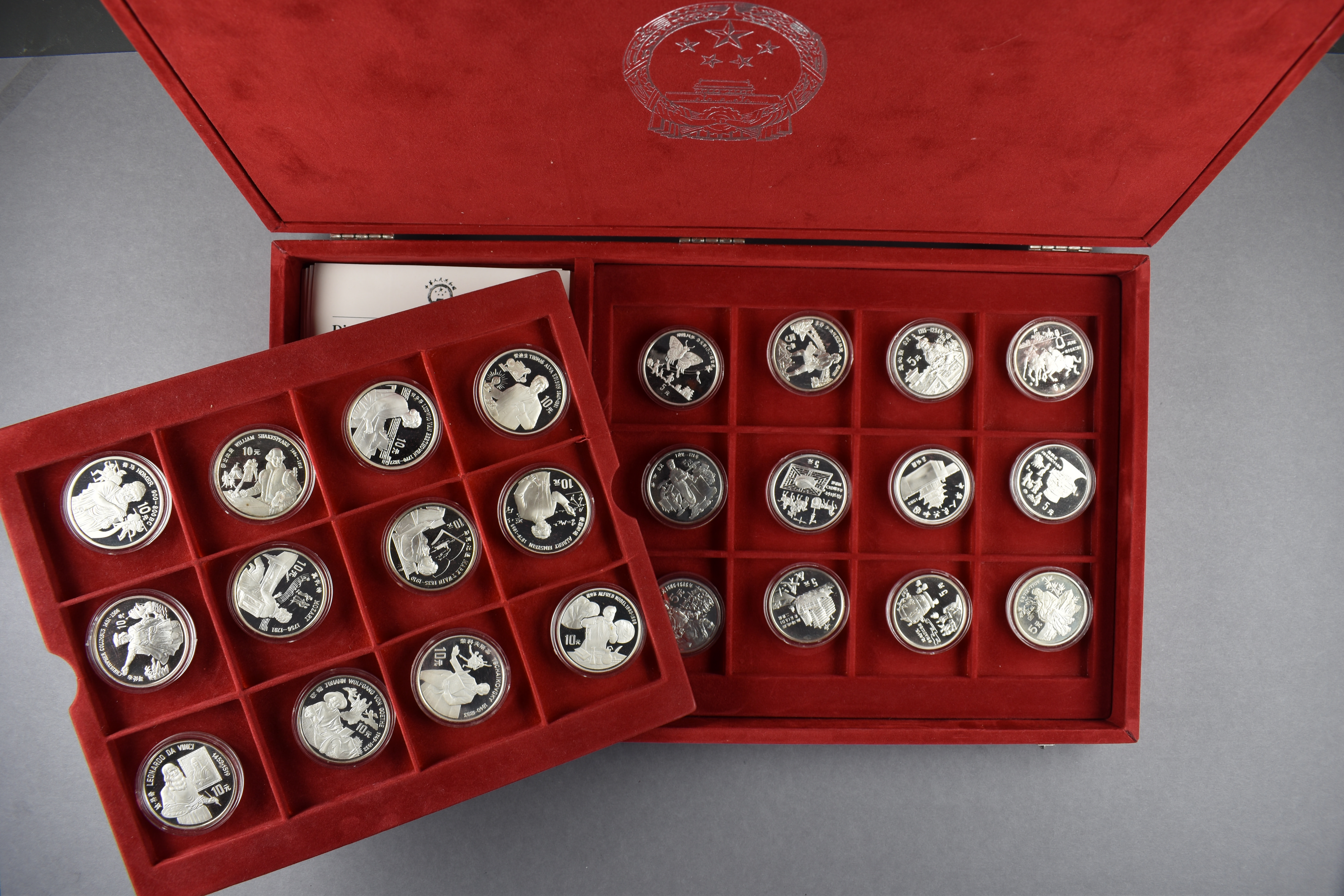 CHINA PEOPLES REPUBLIC, Official commemorative silver coin set with 12 x 5 Yuan and 12 x 10 Yuan. (Image) (Image2)