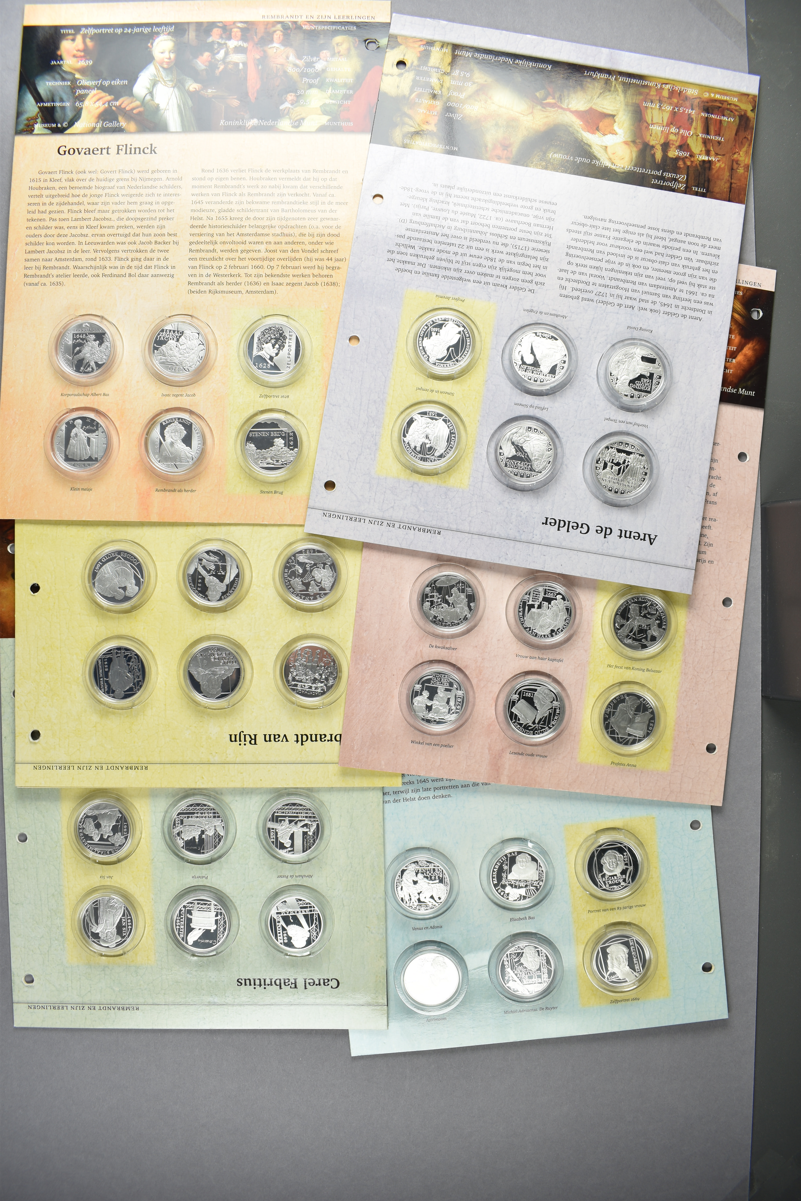 NEDERLAND, diversen in 3 albums en 1 kistje waarbij Juliana en Beatrix zilver tevens 1 album Rembrand in zegels en zilver (Image) (Image2)