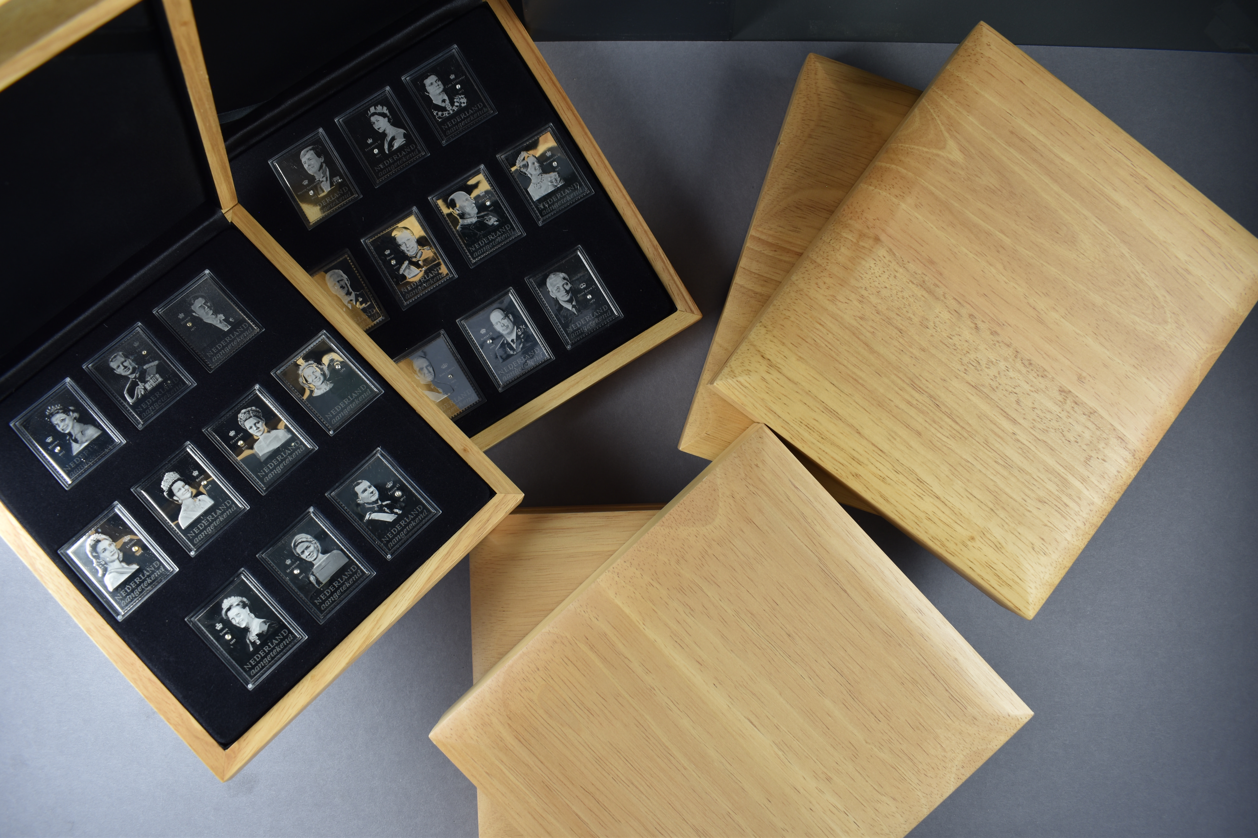 NEDERLAND, zwaar verzilverde penningen en postzegels, uitgifte van de firma Edel, waarbij 'Prestige' sets