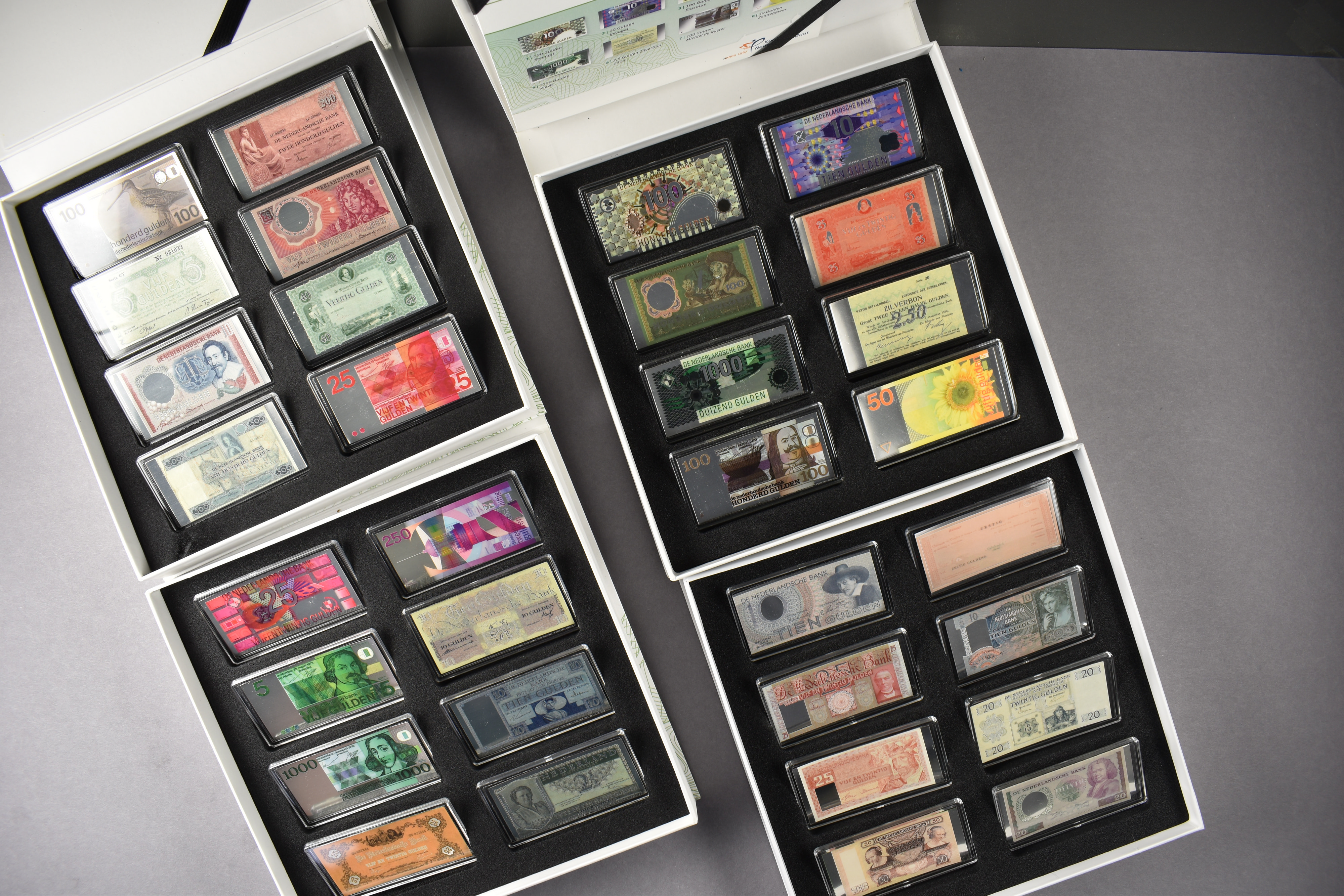 NEDERLAND, zilveren miniatuur biljetten, officiële uitgifte van de Nederlandse Munt. in totaal 10 complete cassettes (Image) (Image2)