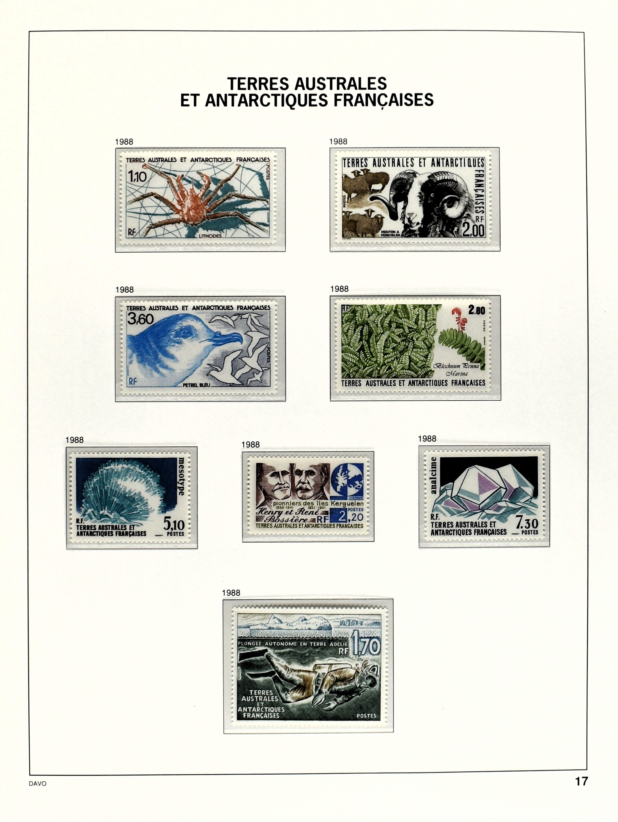 351 imageT.A.A.F. 1956-2020, unmounted mint in 3 Davo de Luxe albums with better numbers f.i.: Mi. 29/30, 31, 32, 52/54 etc., also 2 Davo albums with Wallis and Futuna 1958-2020, perfect object to continue! (Image) (Image2) (Image3) (Image4) (Image5) (Image6) (Image7) (Image8) (Image9) (Image10) (Image11) (Image12) (Image13) (Image14) (Image15) (Image16) (Image17) (Image18) (Image19) (Image20) (Image21) (Image22) (Image23) (Image24) (Image25) (Image26) (Image27) (Image28) (Image29) (Image30) (Image31) (Image32) (Image33) (Image34) (Image35) (Image36) (Image37) (Image38) (Image39) (Image40) (Image41) (Image42) (Image43) (Image44) (Image45) (Image46) (Image47) (Image48) (Image49) (Image50) (Image51) (Image52) (Image53) (Image54) (Image55) (Image56) (Image57) (Image58) (Image59) (Image60) (Image61) (Image62) (Image63) (Image64) (Image65) (Image66) (Image67) (Image68) (Image69) (Image70) (Image71) (Image72) (Image73) (Image74) (Image75) (Image76) (Image77) (Image78) (Image79) (Image80) (Image81) (Image82) (Image83) (Image84) (Image85) (Image86) (Image87) (Image88) (Image89) (Image90) (Image91) (Image92) (Image93) (Image94) (Image95) (Image96) (Image97) (Image98) (Image99) (Image100) (Image101) (Image102) (Image103) (Image104) (Image105) (Image106) (Image107) (Image108) (Image109) (Image110) (Image111) (Image112) (Image113) (All Images)