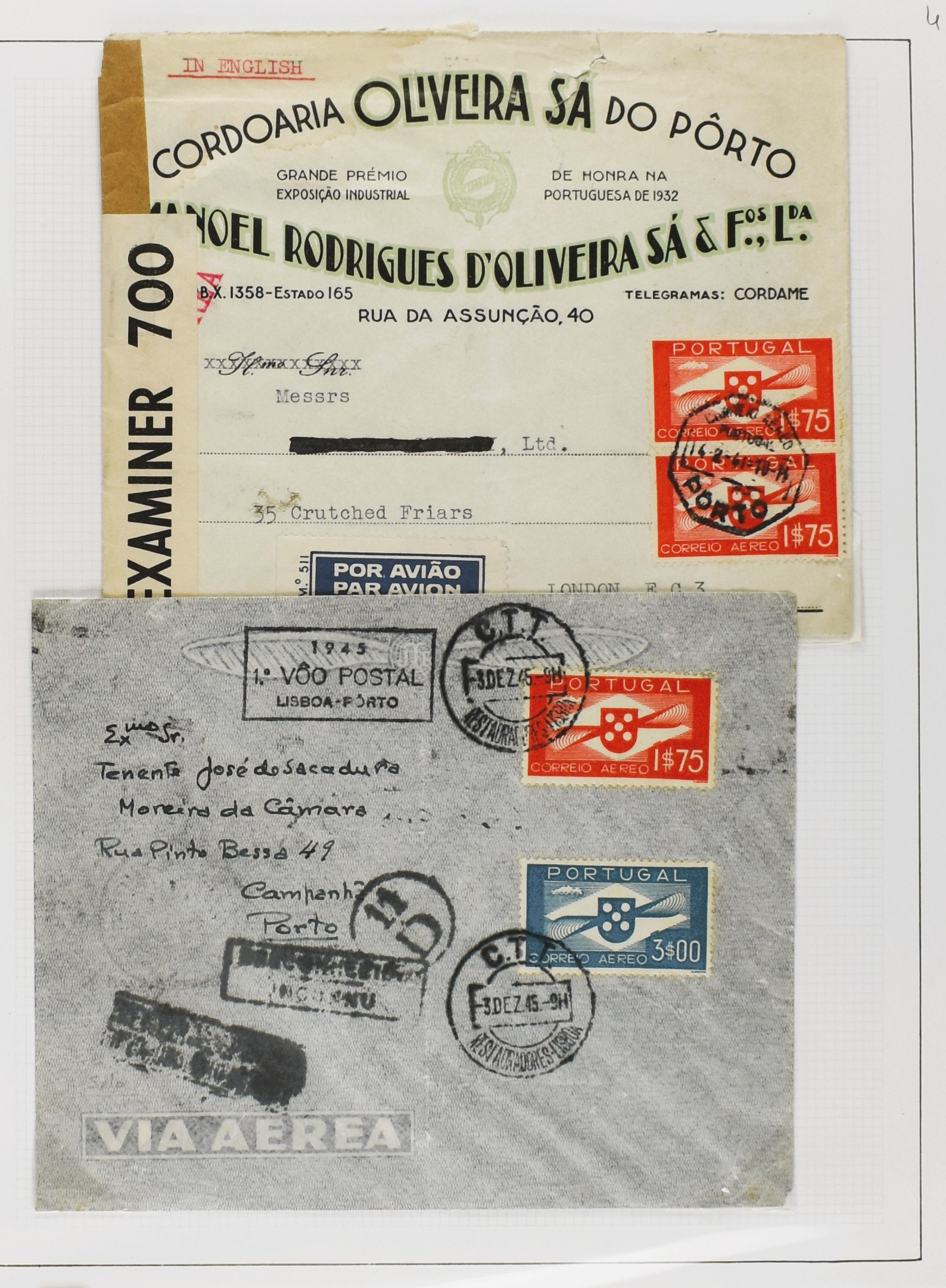 358 imagePORTUGAL, Airmail collection with stamps and covers, well described on exhibition pages with several better items, some first flights, incoming mail, foreign destinations, expresse, censored, etc. Interesting lot for the specialist (Image) (Image2) (Image3) (Image4) (Image5) (Image6) (Image7) (Image8) (Image9) (Image10) (Image11) (Image12) (Image13) (Image14) (Image15) (Image16) (Image17) (Image18) (Image19) (Image20) (Image21) (Image22) (Image23) (Image24) (Image25) (Image26) (Image27) (Image28) (Image29) (Image30) (Image31) (Image32) (Image33) (Image34) (Image35) (Image36) (Image37) (Image38) (Image39) (Image40) (Image41) (Image42) (Image43) (Image44) (Image45) (Image46) (Image47) (Image48) (Image49) (Image50) (Image51) (All Images)
