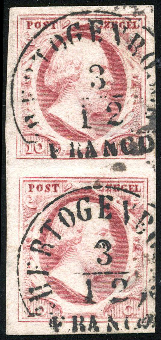 2b-Pl.I-54/59, breed tot zeer breed gerand verticaal paar (hor. vouw in rand tussen de zegels), op elke zegel 'sHertogenbosch A (Image)