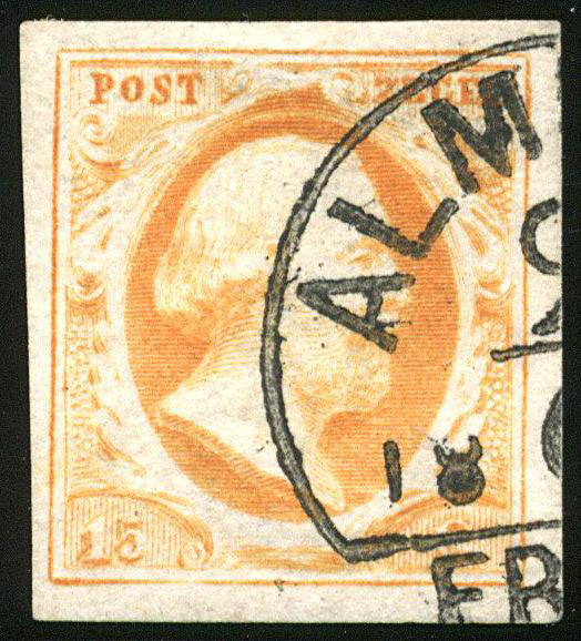 ALMELO C type I of II€ (de H/S R) op 15 cent nr. 3c, pos. 26. Prachtige zegel met op az. diverse keuren en zeer oude notitie in inkt, met scherp deel van de afstempeling, maar welk type is door ons niet uit te maken (Image)