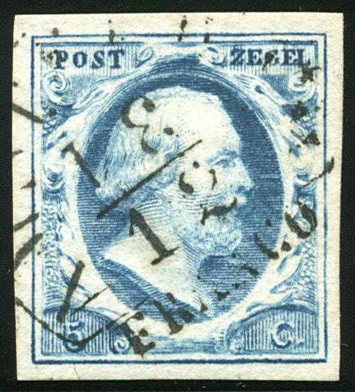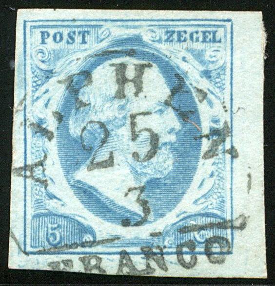 AMSTERDAM A type I (de H/S 50) op 5 cent nr. 1b-Pl.I. Prachtex. met volledige afst. (Image)