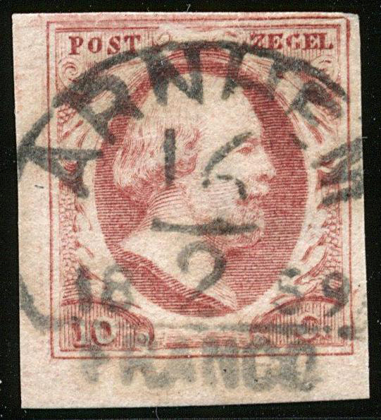ARNHEM B (de H/S 50) op 10 cent nr. 2b-Pl.I-84. Aan drie zijden zeer breed gerand prachtex. met volledige, iets gevlekte afst. (Image)
