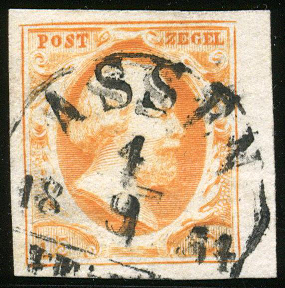 ARNHEM C type III (de H/S U) op 15 cent nr. 3c, pos. 28. Iets smal tot breed gerand prachtex. met fragment van dit type, dat nog niet bekend was op de 15 cent