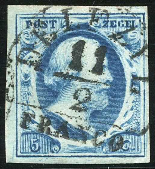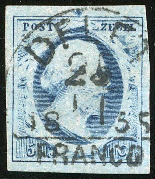 DELFT A (de H/S 75) op 5 cent nr. 1a-Pl.I. Vol tot breed gerand prachtex. met bijna ideale afst. (Image)