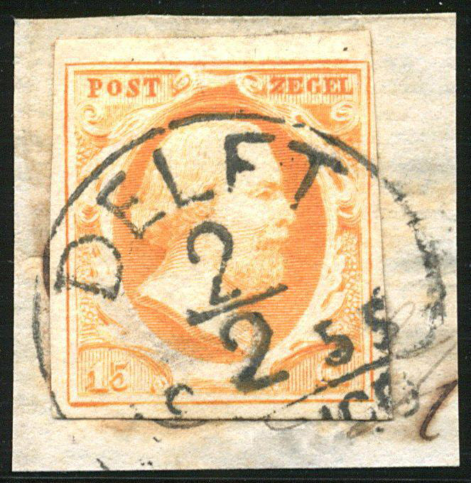 DELFT C type I (de H/S 200) op 15 cent nr. 3c, pos. 59. Smal tot vol gerand prachtex. op briefstukje met volledige afst. (Image)