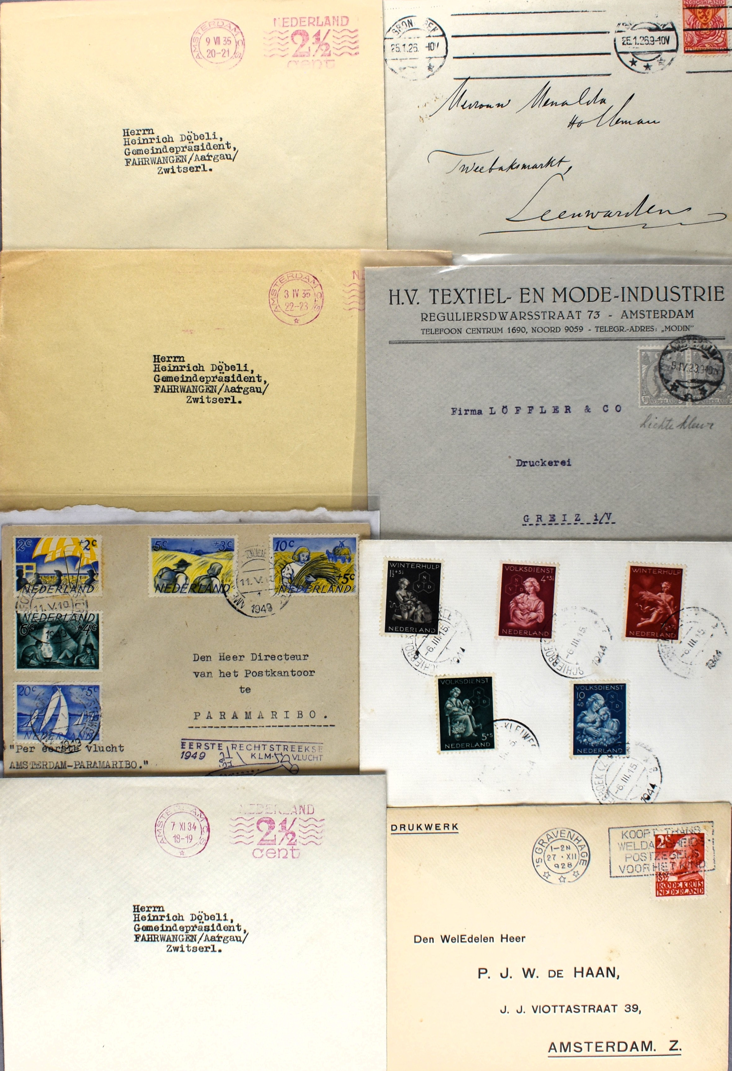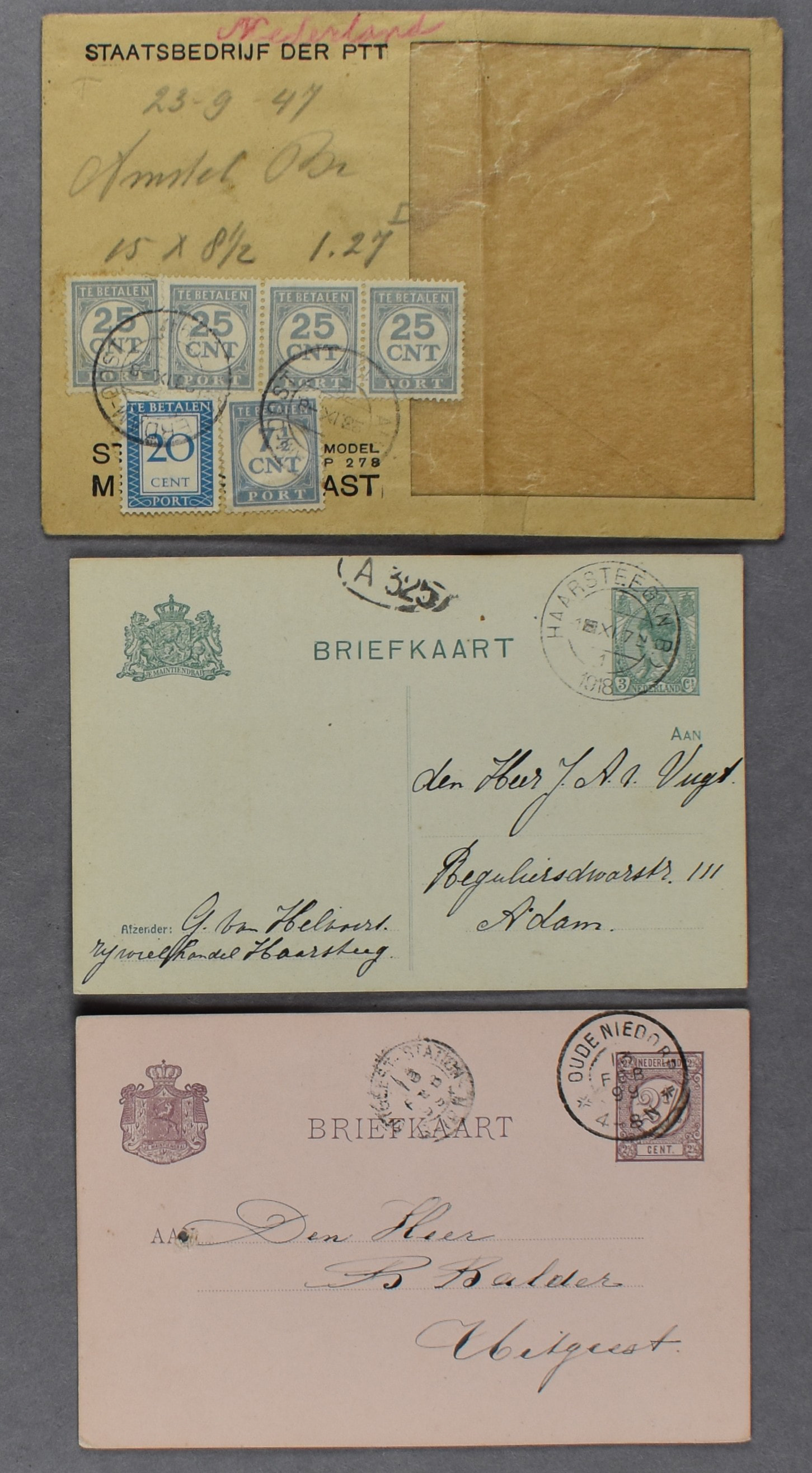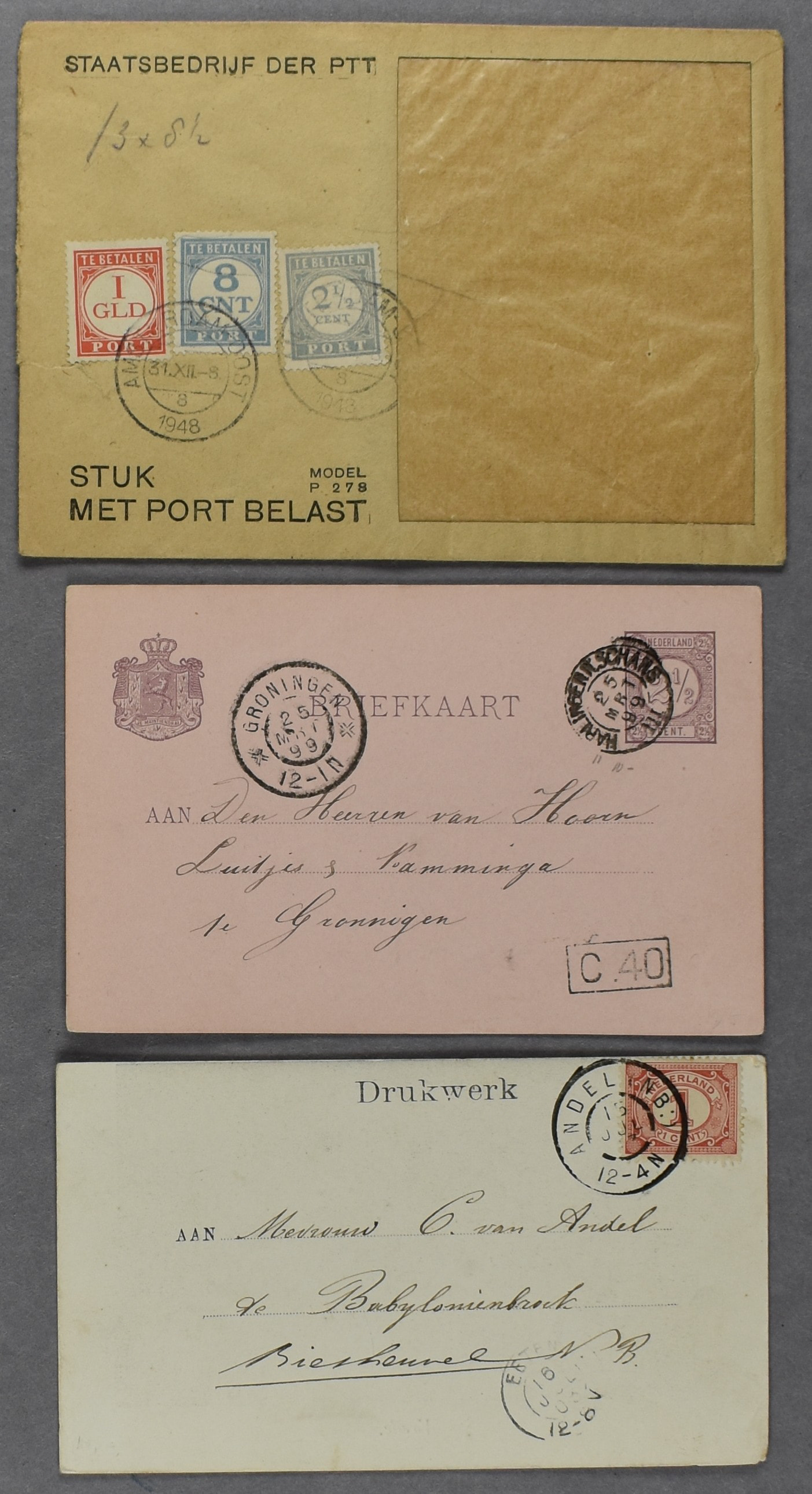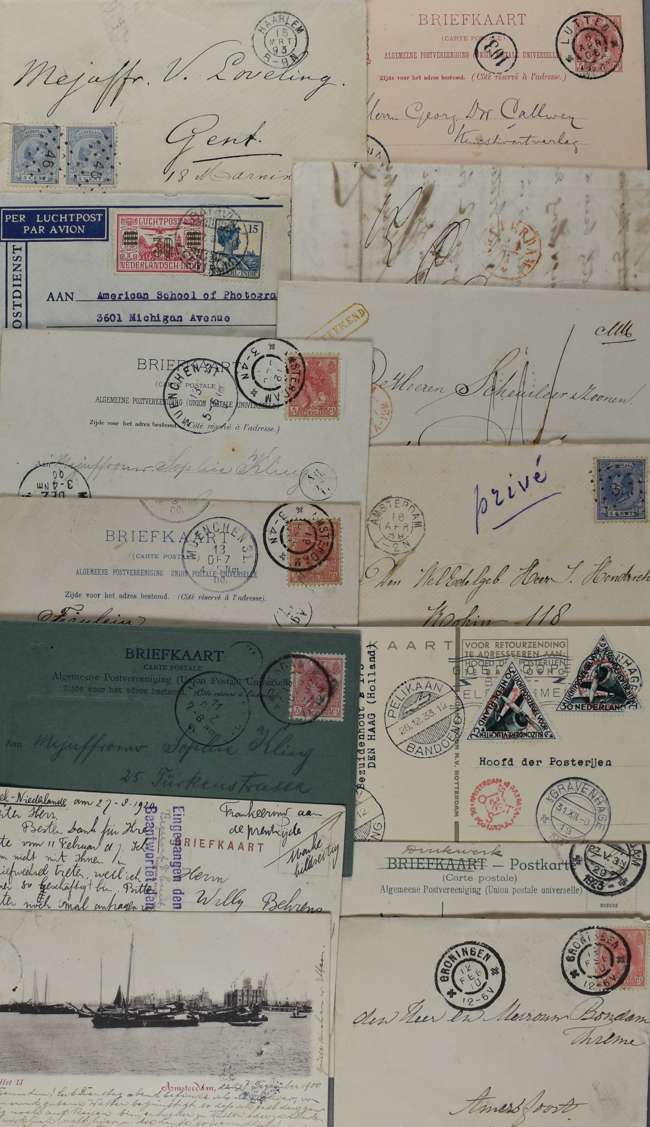 51 imageNEDERLAND POSTHISTORIE, honderden post(waarde)stukken vanaf emissie 1852, merendeels tot ca. 1950, w.o. mooie firma-enveloppen, (enkel)frankeringen, port, censuur, (gelegenheids-)stempels, luchtpost, bestemmingen etc. (Image) (Image2) (Image3) (Image4) (All Images)
