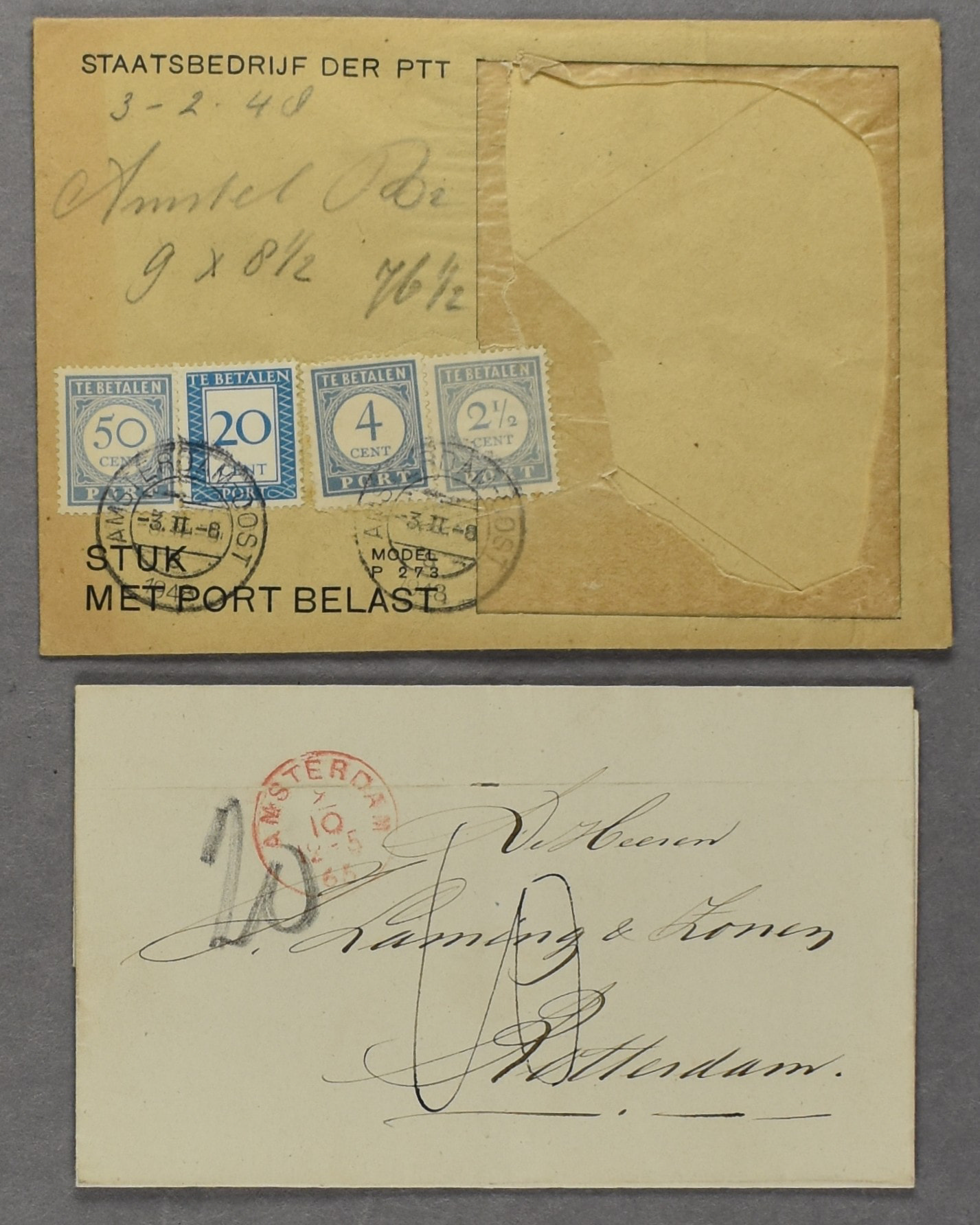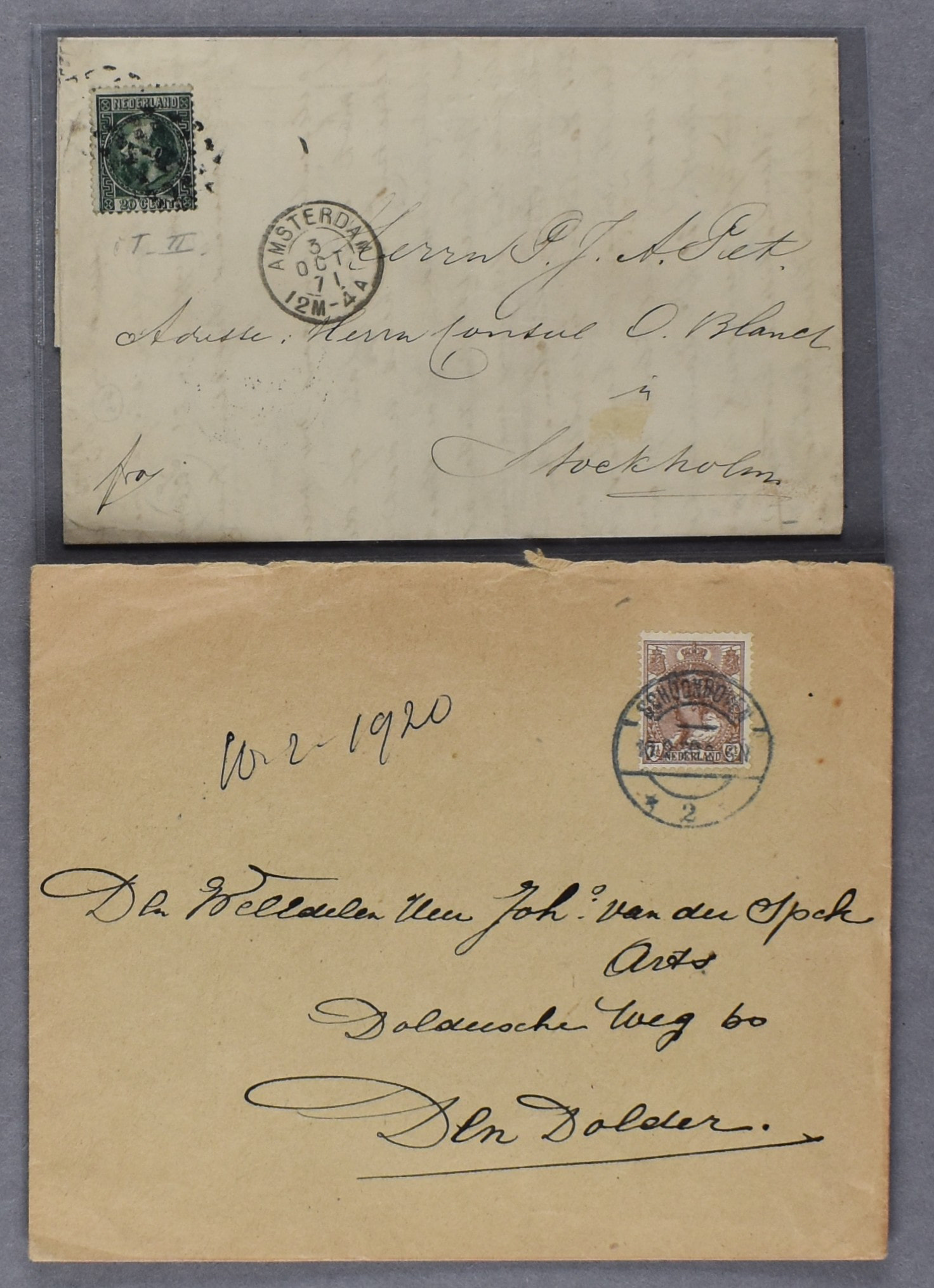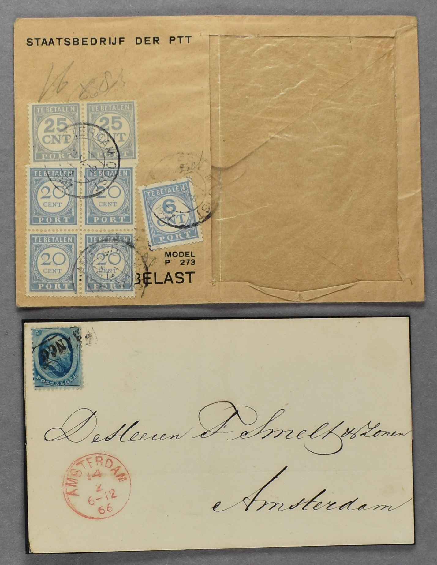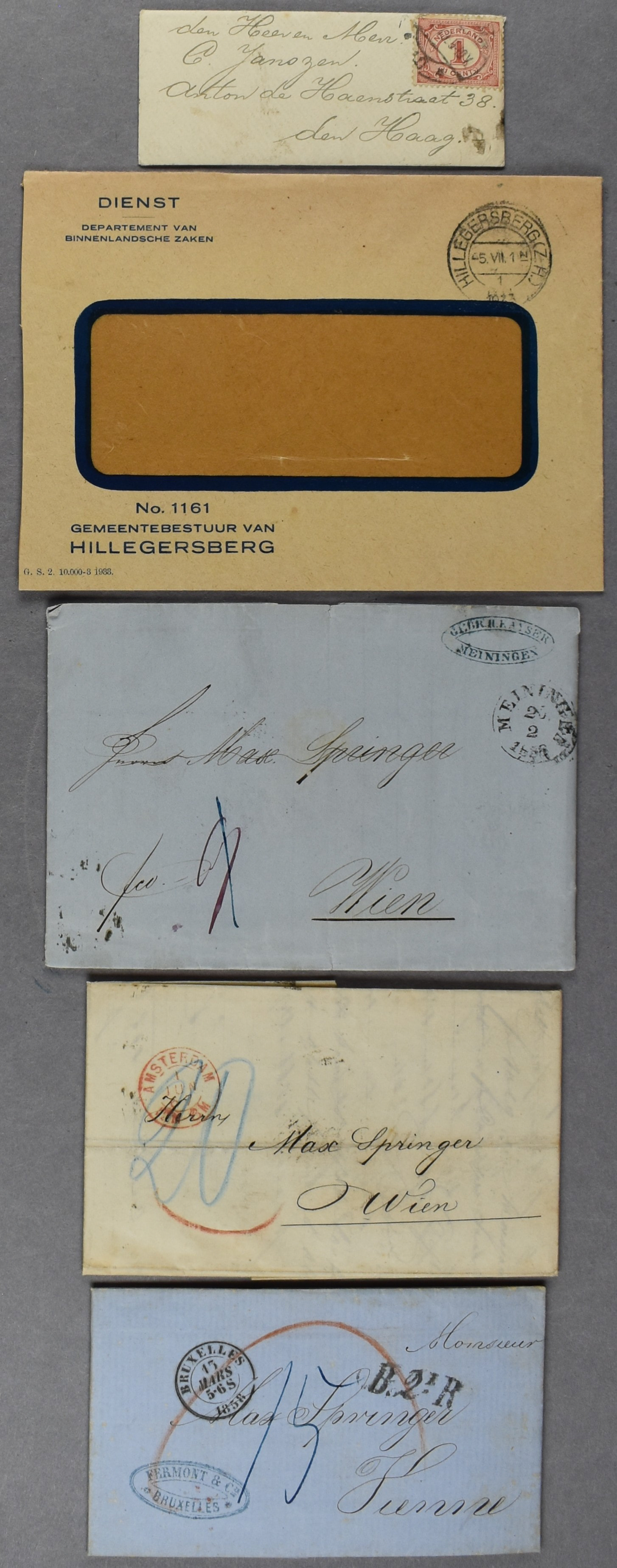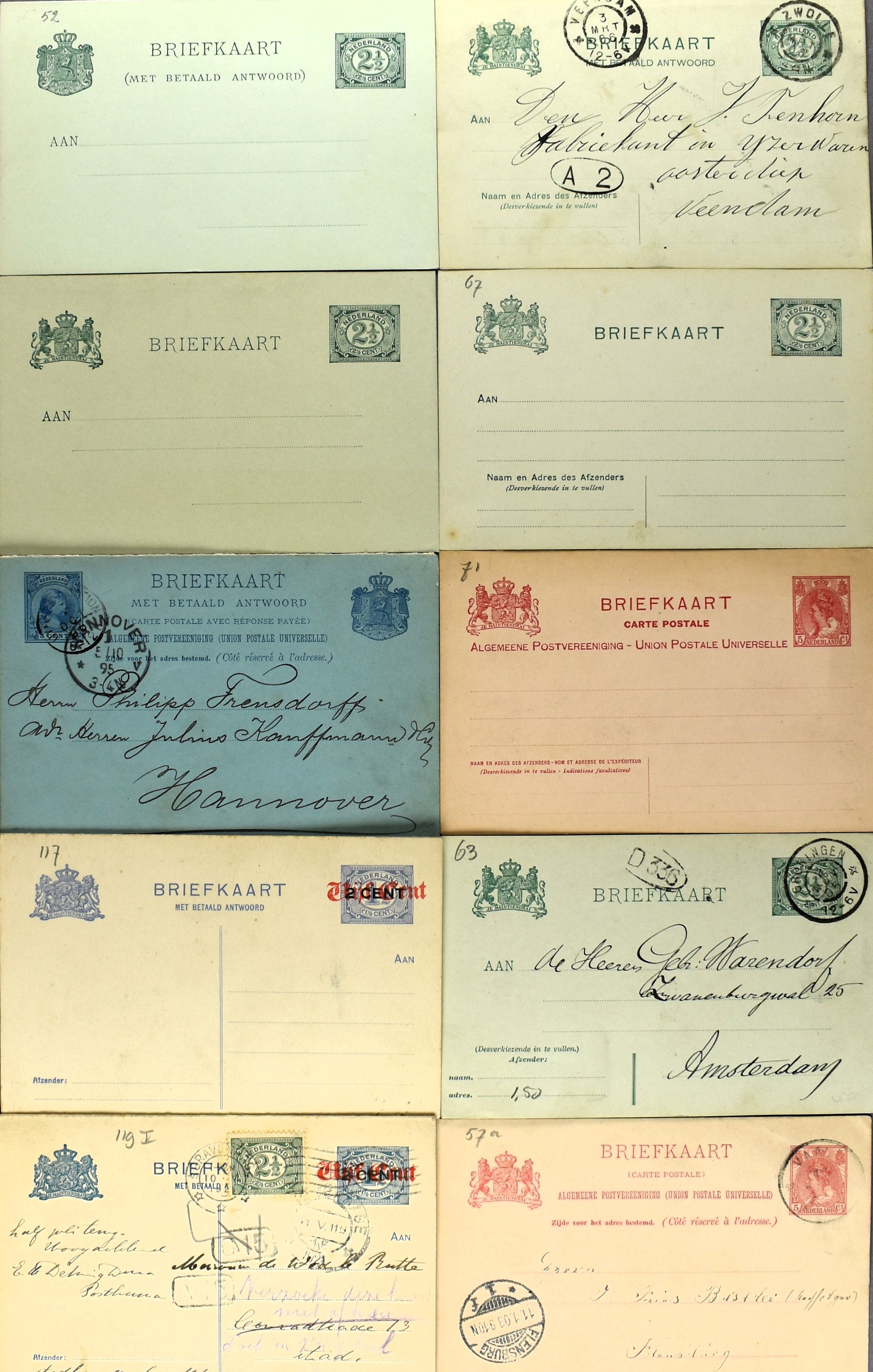 51 imageNEDERLAND POSTHISTORIE, honderden post(waarde)stukken vanaf emissie 1852, merendeels tot ca. 1950, w.o. mooie firma-enveloppen, (enkel)frankeringen, port, censuur, (gelegenheids-)stempels, luchtpost, bestemmingen etc. (Image) (Image2) (Image3) (Image4) (All Images)