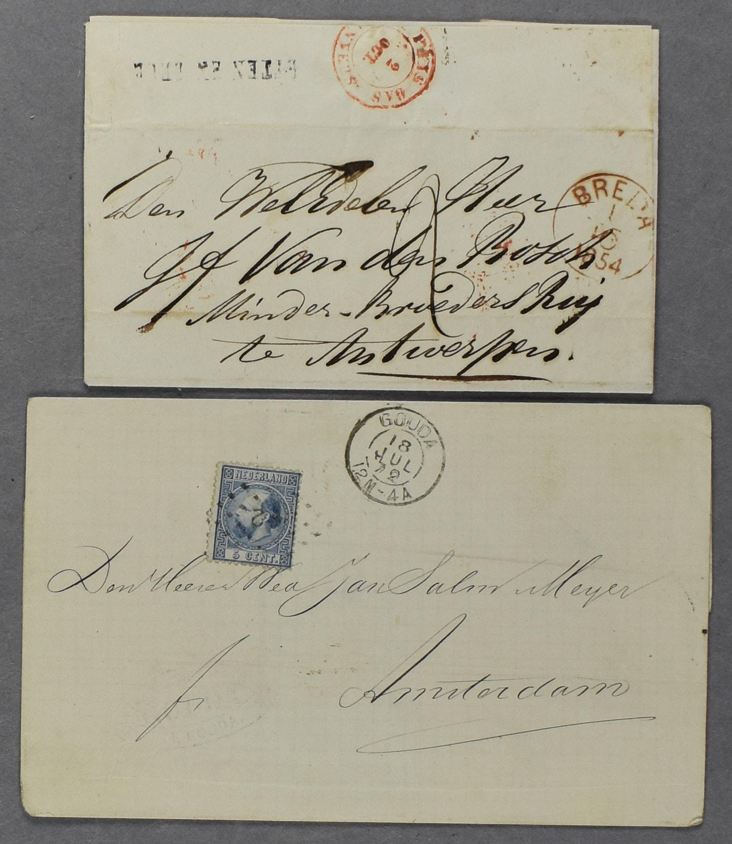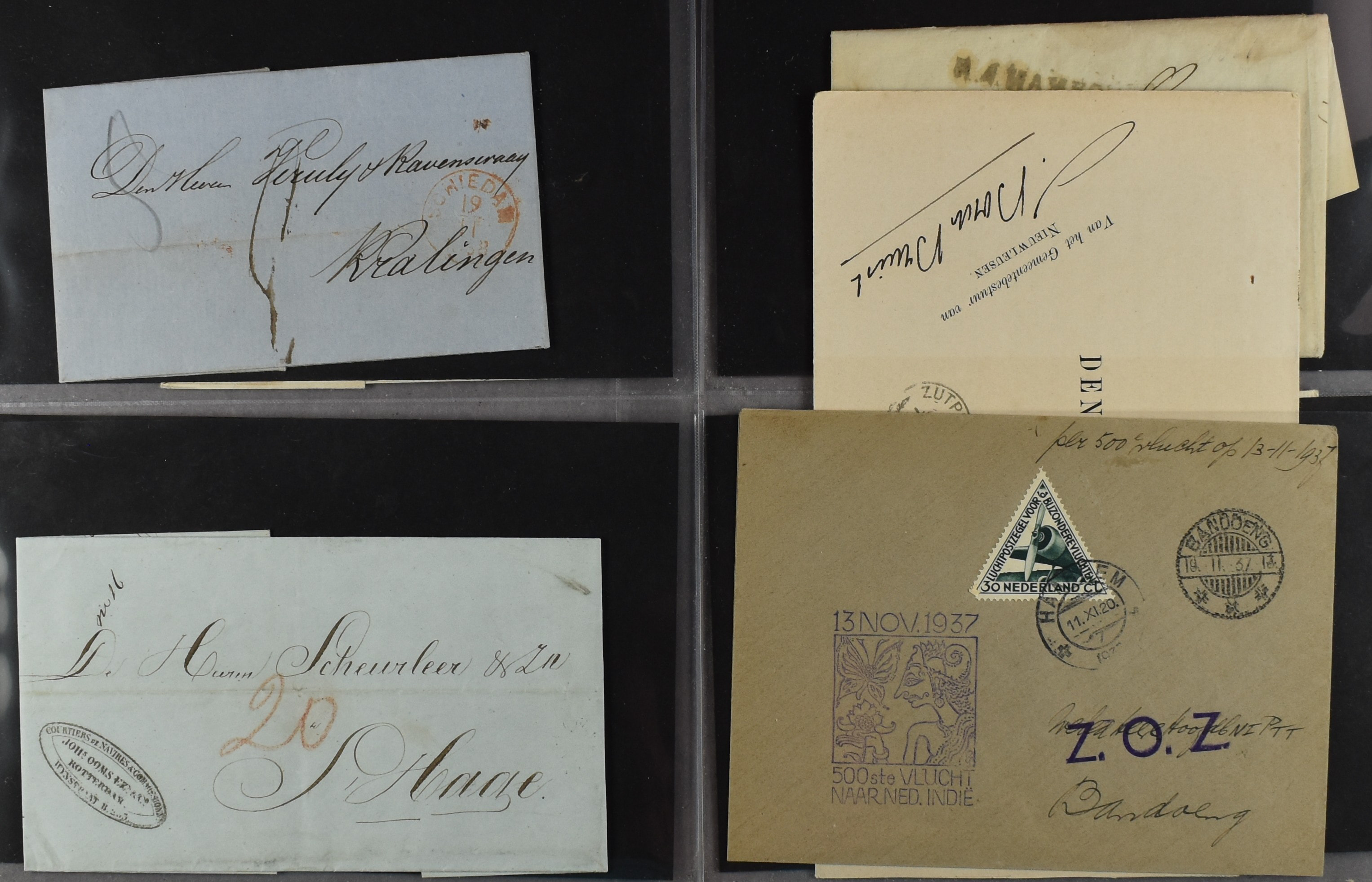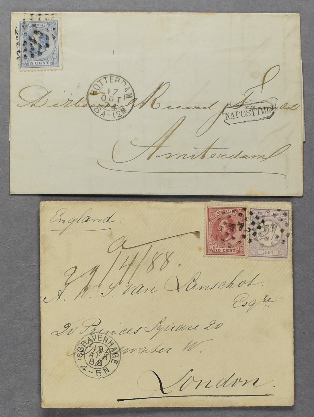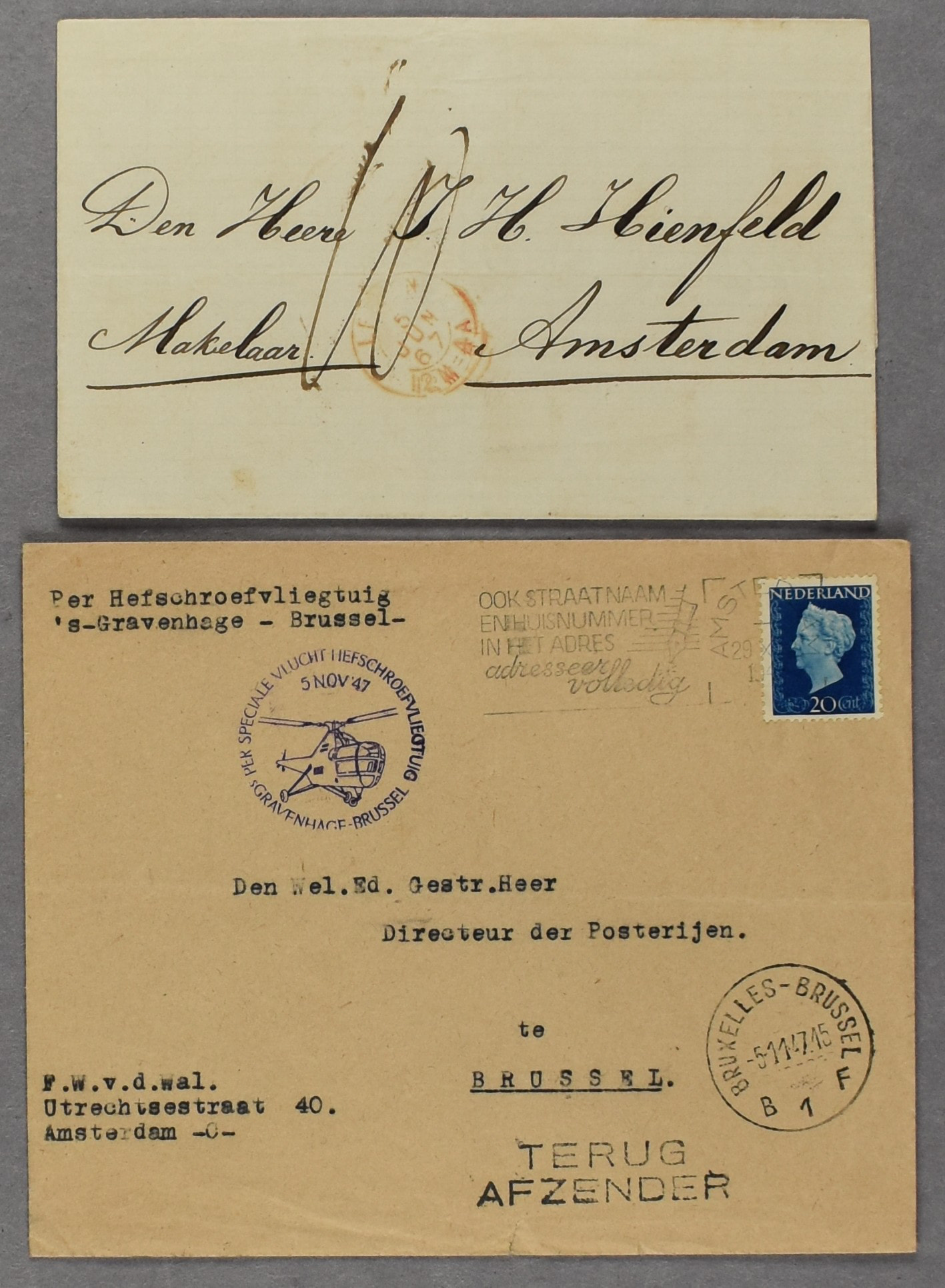51 imageNEDERLAND POSTHISTORIE, honderden post(waarde)stukken vanaf emissie 1852, merendeels tot ca. 1950, w.o. mooie firma-enveloppen, (enkel)frankeringen, port, censuur, (gelegenheids-)stempels, luchtpost, bestemmingen etc. (Image) (Image2) (Image3) (Image4) (All Images)