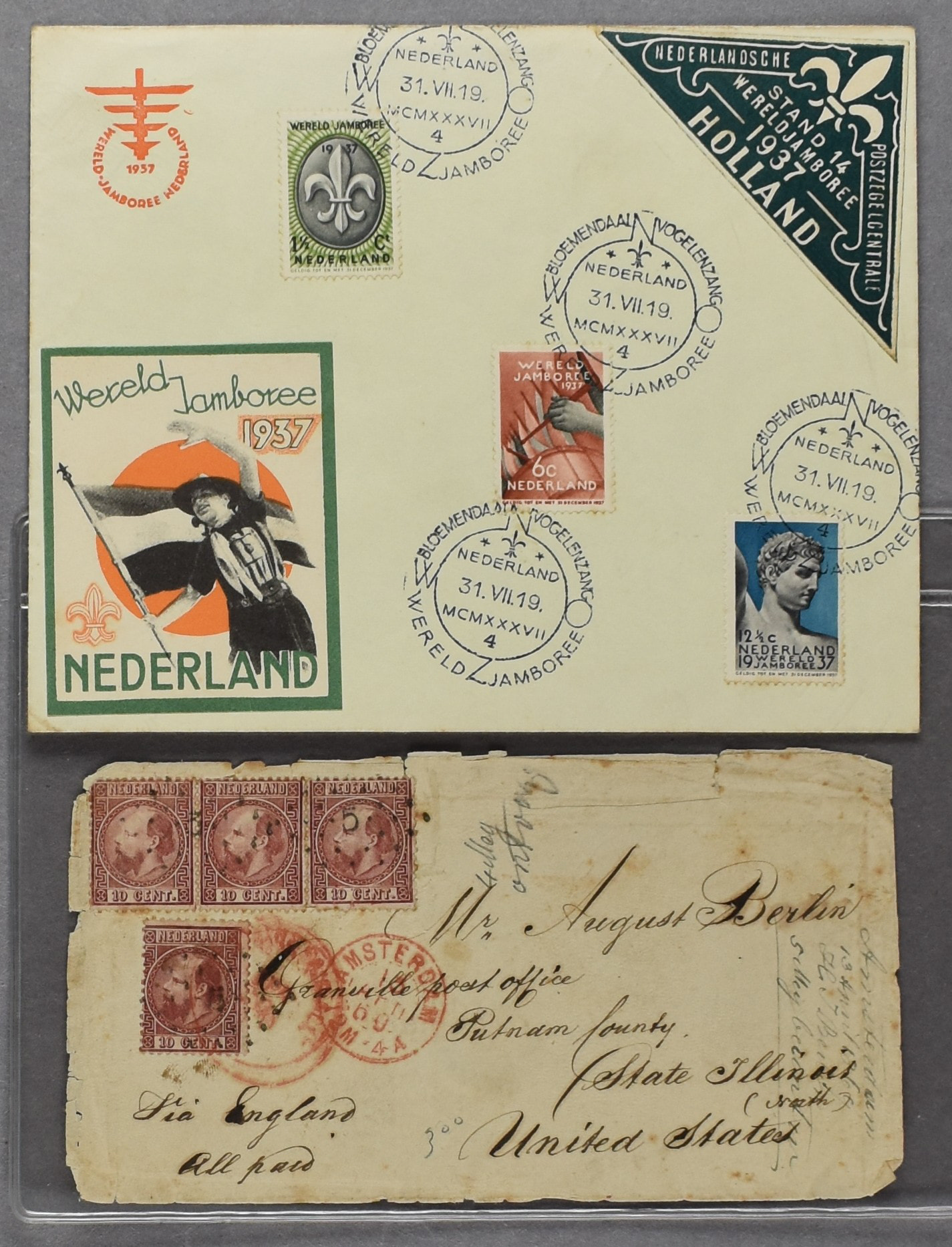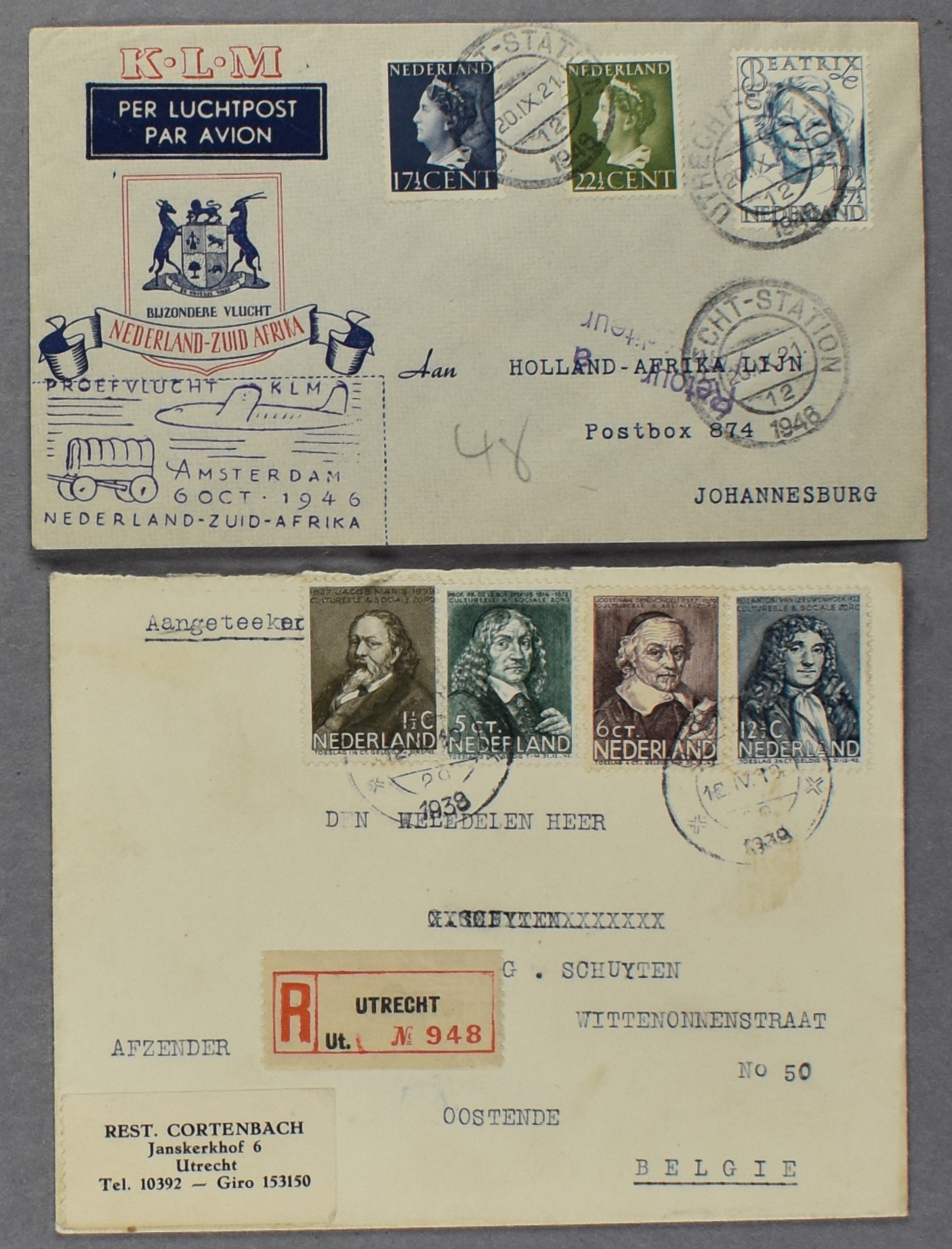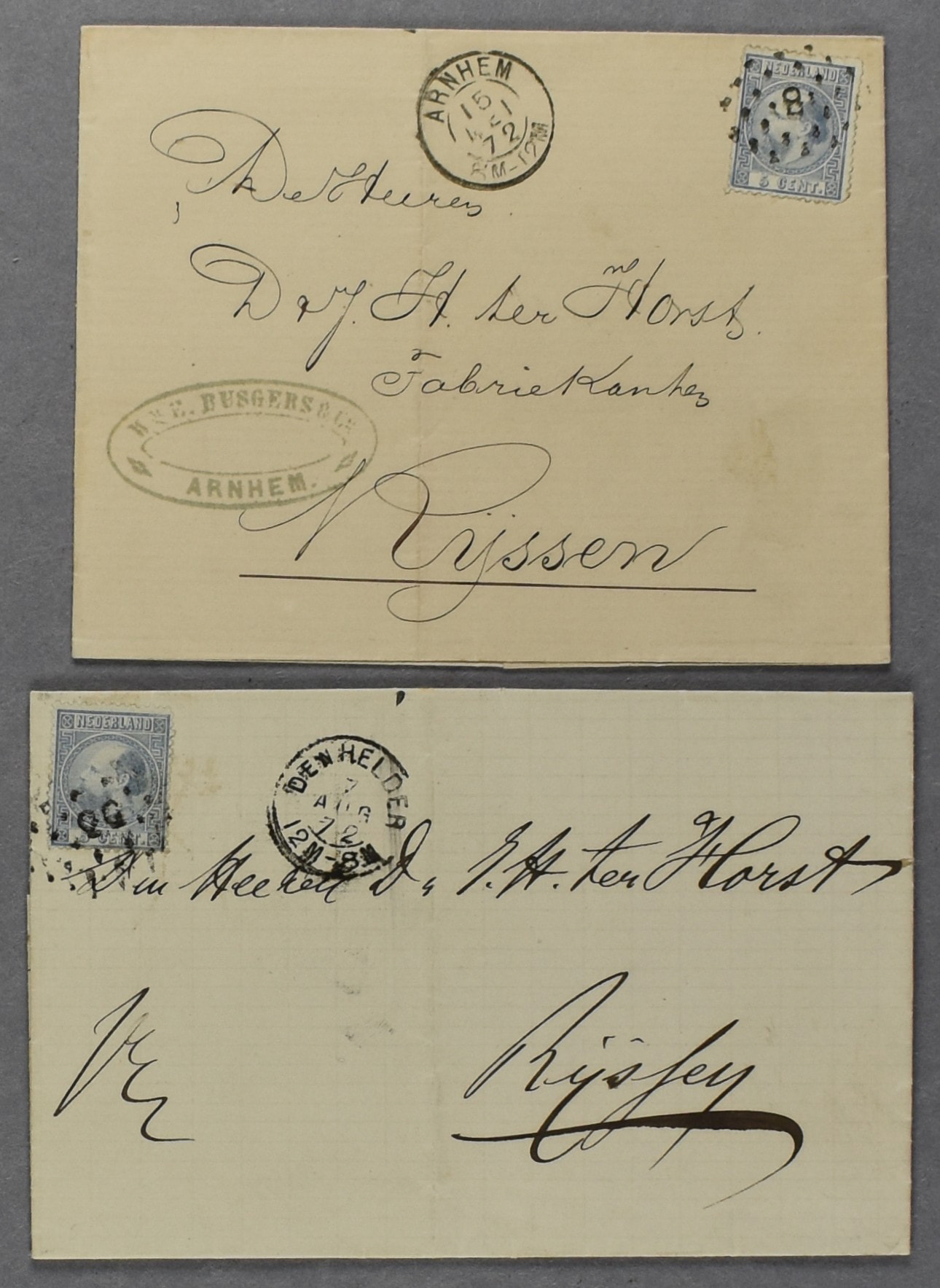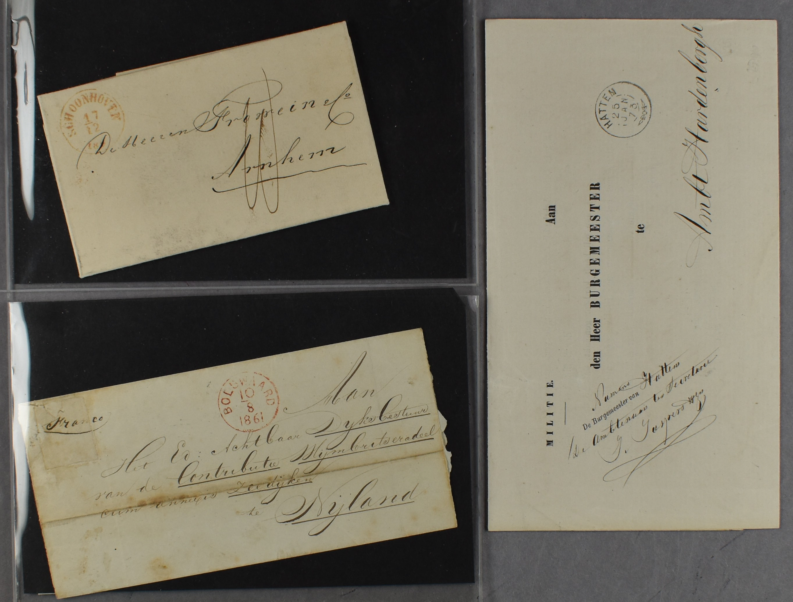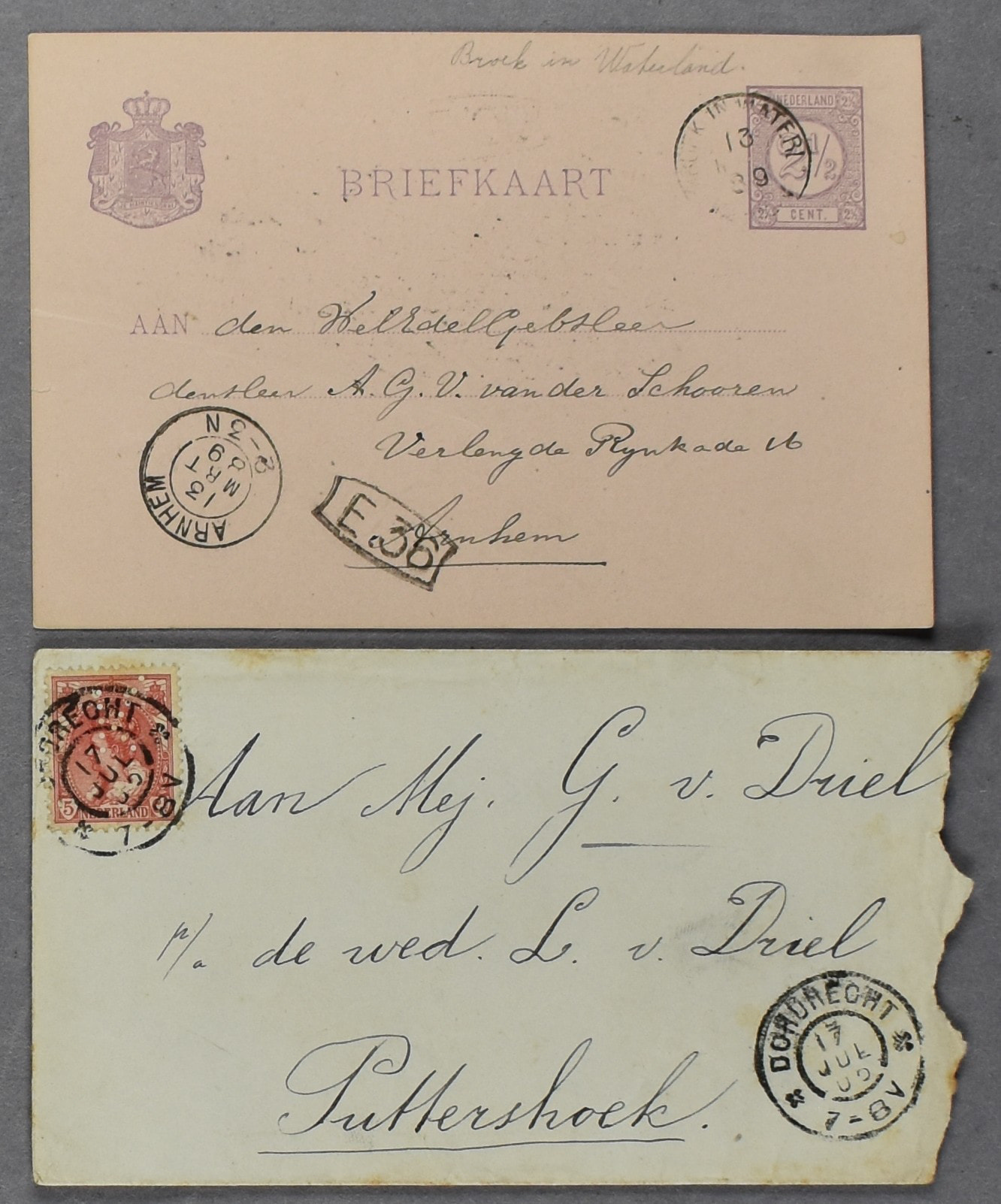 51 imageNEDERLAND POSTHISTORIE, honderden post(waarde)stukken vanaf emissie 1852, merendeels tot ca. 1950, w.o. mooie firma-enveloppen, (enkel)frankeringen, port, censuur, (gelegenheids-)stempels, luchtpost, bestemmingen etc. (Image) (Image2) (Image3) (Image4) (All Images)