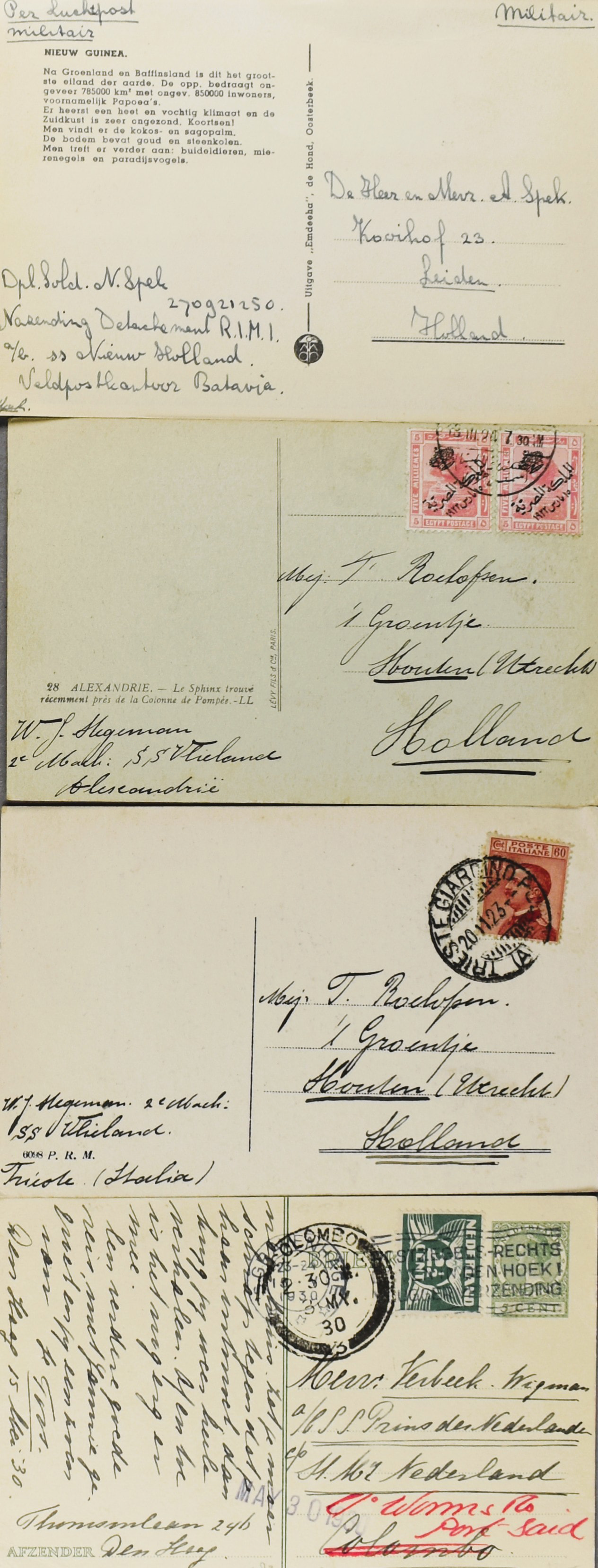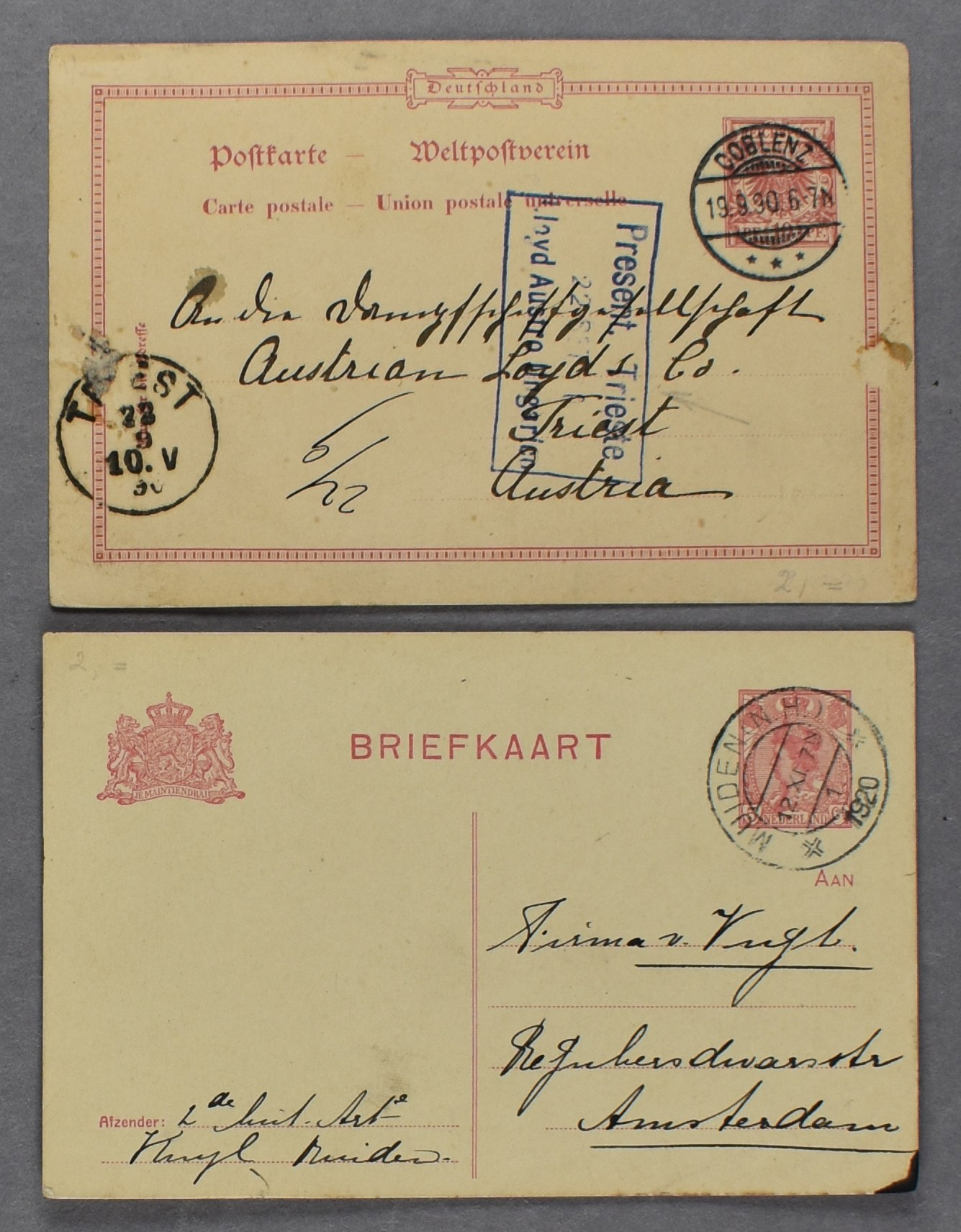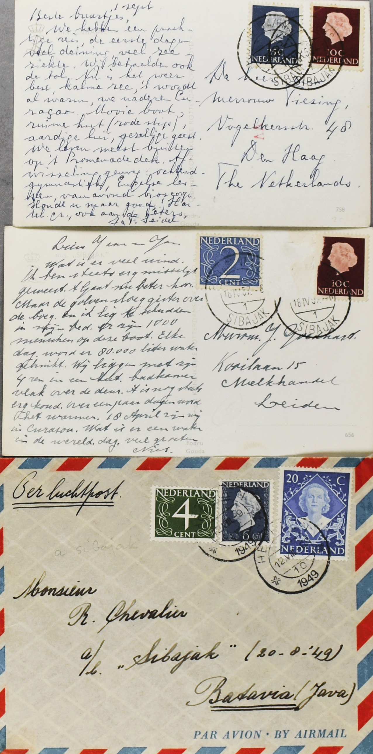 52 imageSCHEEPSPOST NEDERLAND. Ca. 340 poststukken/prentbriefkaarten van hoofdzakelijk de Rotterdamsche Lloyd met een grote verscheidenheid aan stempels van postagenten aan boord, in de portiersloge, post van militairen, tevens stempels postagent a/b van o.a. Sibajak, Waterman, Willem Ruys, ook ongebruikte (foto)prentbriefkaarten van schepen, RL-enveloppen, postbladen, (prent)briefkaarten, etc. gesorteerd in doos. Spannend voor de liefhebber van scheepspost! (Image) (Image2) (Image3) (Image4) (Image5) (Image6) (Image7) (Image8) (Image9) (Image10) (Image11) (Image12) (Image13) (Image14) (Image15) (All Images)
