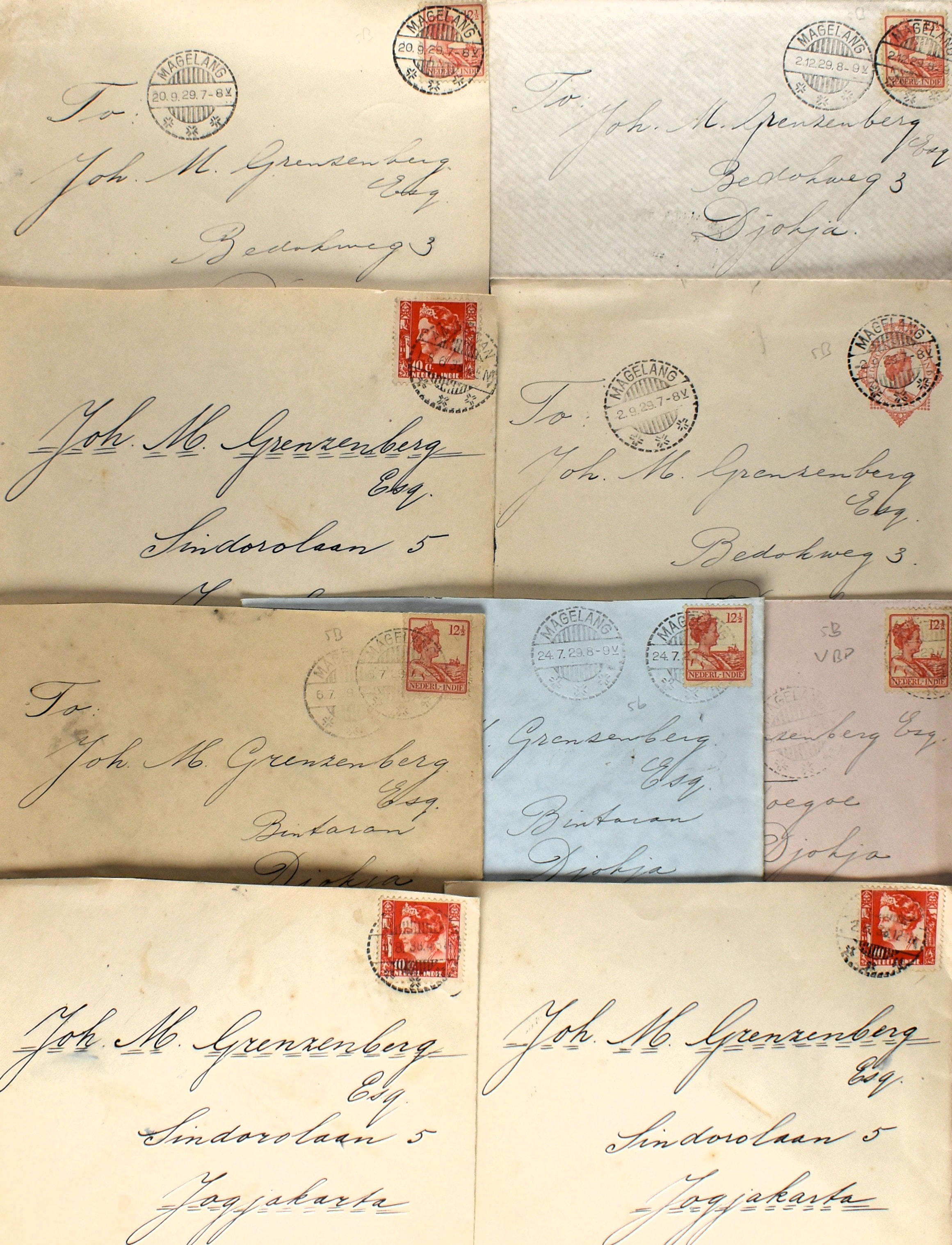 54 imageNED.- INDIË ARCHIEF, ca. 350 poststukken uit eenzelfde archief, merendeels jaren '20-'30 en veelal afkomstig uit Ampenan en Magelang, gestuurd naar Joh. M. Grenzenberg te Djokjakarta, directeur van de Drukkerij "Bob". Het archief heeft een historische waarde, maar nauwelijks een filatelistische (Image) (Image2) (Image3) (Image4) (Image5) (Image6) (Image7) (Image8) (Image9) (Image10) (All Images)