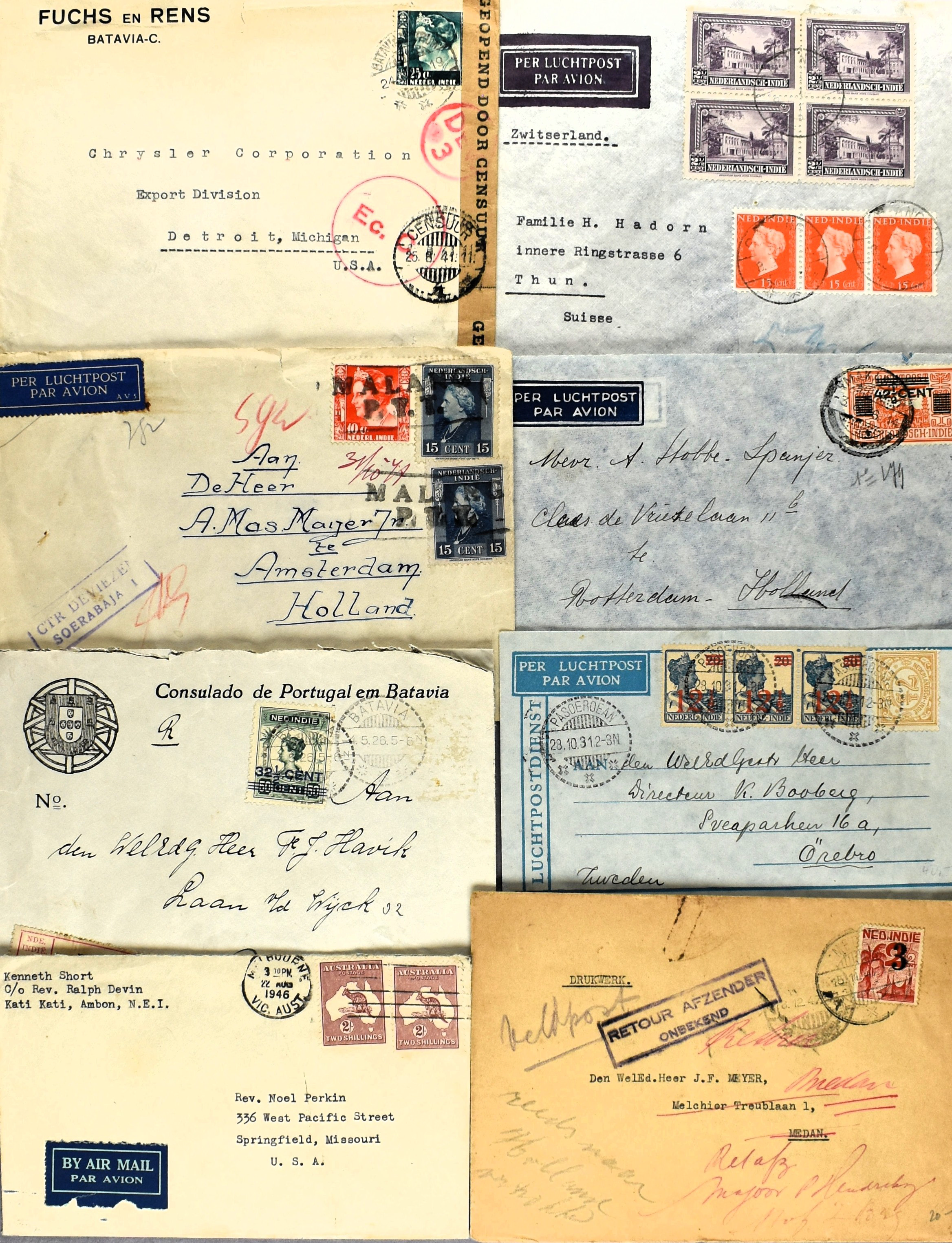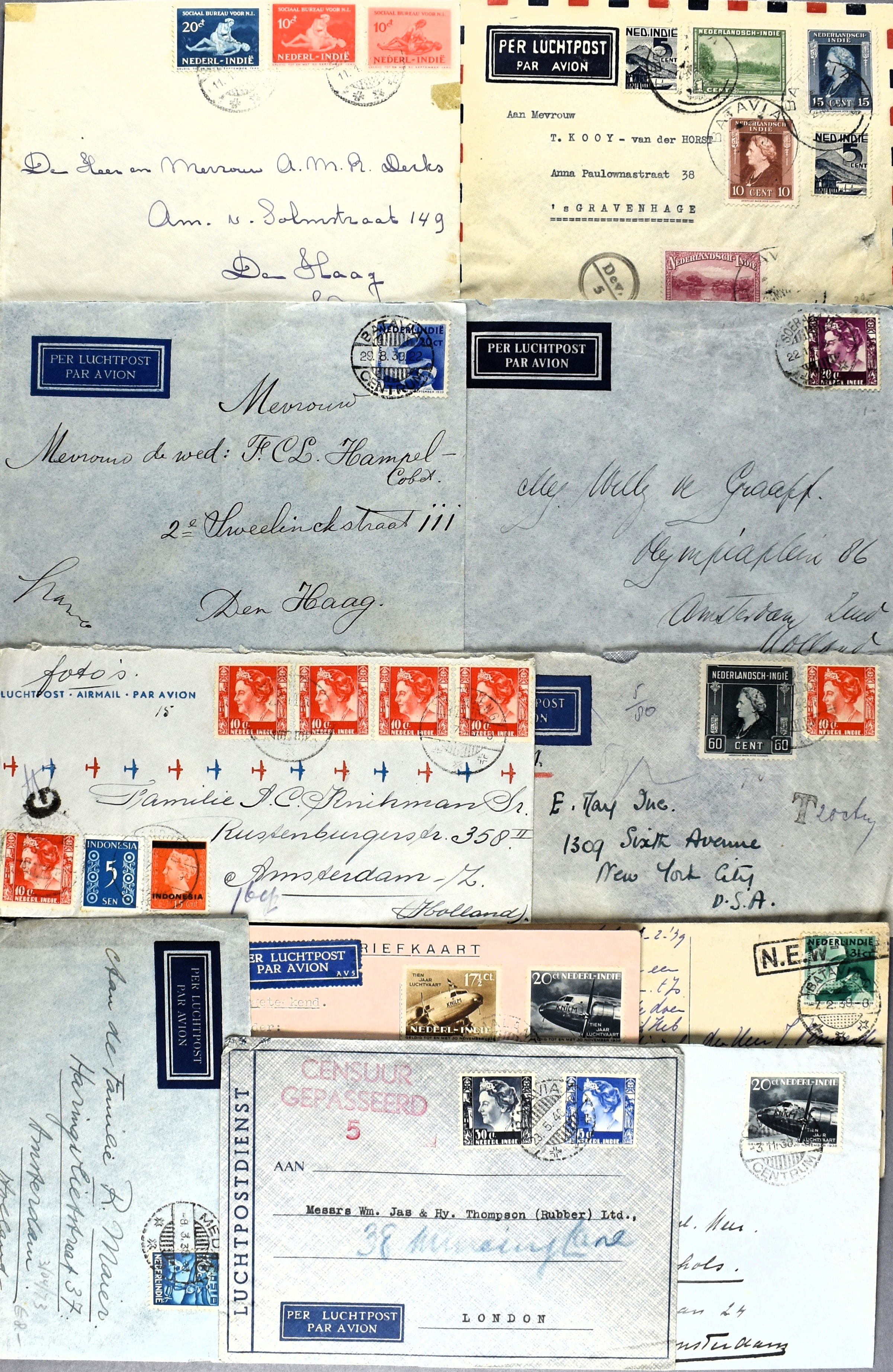 56 imageNED.- INDIË POSTHISTORIE, partij poststukken merendeels ca. 1890-1942 en 1945-1950 w.o. (enkel)frankeringen, aardige variëteit aan poststempels w.o. nood-, propaganda- en gelegenheidsstempels, luchtpost, aangetekend, censuur, bestemmingen, etc. (Image) (Image2) (Image3) (Image4) (Image5) (Image6) (All Images)